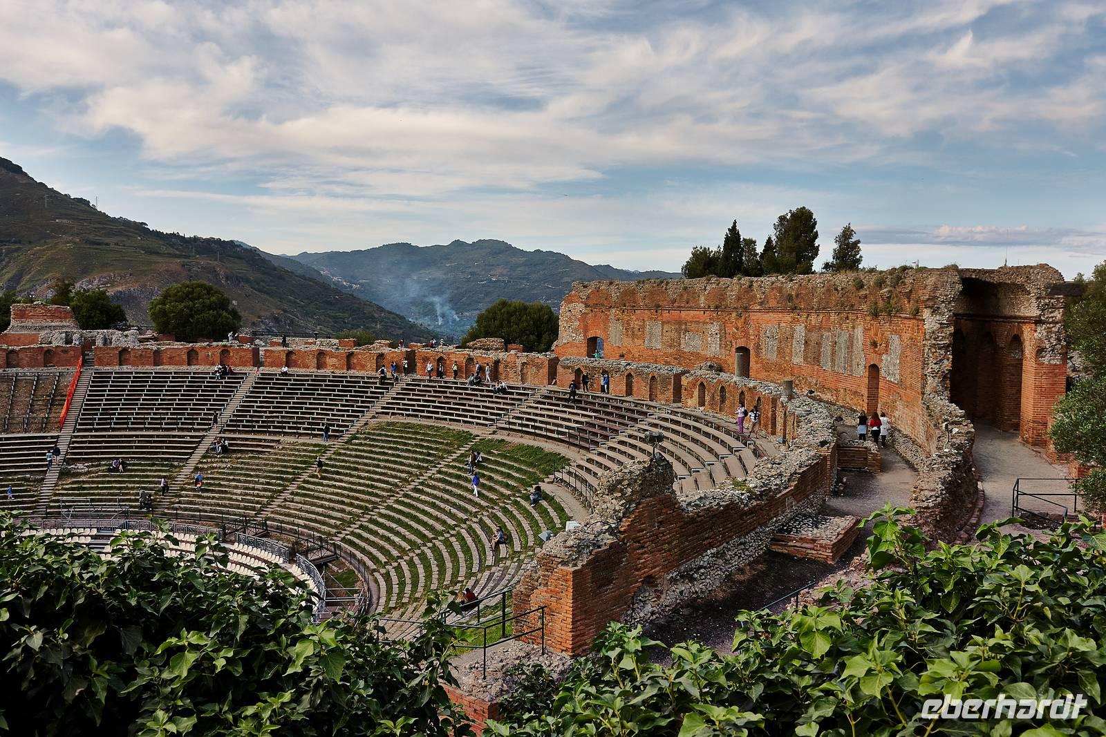 Heute mussten wir uns schon wieder von Stromboli verabschieden und wir fuhren mit einem Tragflügelboot zurück nach Melazzo, wo der Bus bereits auf uns wartete, um uns nach Taormina zu fahren. Die Stadt war heute überfüllt von Menschen, da grade heut auch noch Feiertag war. Jochen brachte uns über die Hauptflanierstraße zum alten Theater, das wir fakultativ besuchen konnten. Da die Stadt und das Theater sehr hoch liegt hatten wir von hier aus eine super Aussicht über die sizilianische Küste. Wir nutzten unsere Zeit um durch die Stadt zu flanieren und den letzten Tag in Italien zu genießen. Anschließend fuhren wir mit dem Bus nach San Leonardello di Giarre auf ein kleines Bauerngut, um unser Abschlussabendessen zu genießen. Typische italienische und sizilianische Gerichte durften wir über die gesamte Woche genießen und so war dieses Abendessen noch mal etwas ganz besonderes. Die Wandergruppe genoss nicht nur diesen Abend, sondern auch alle Wanderung mit den atemberaubenden Aussichten und so kraftvoll wirkenden Vulkanen, die wir gemeinsamt bestiegen.