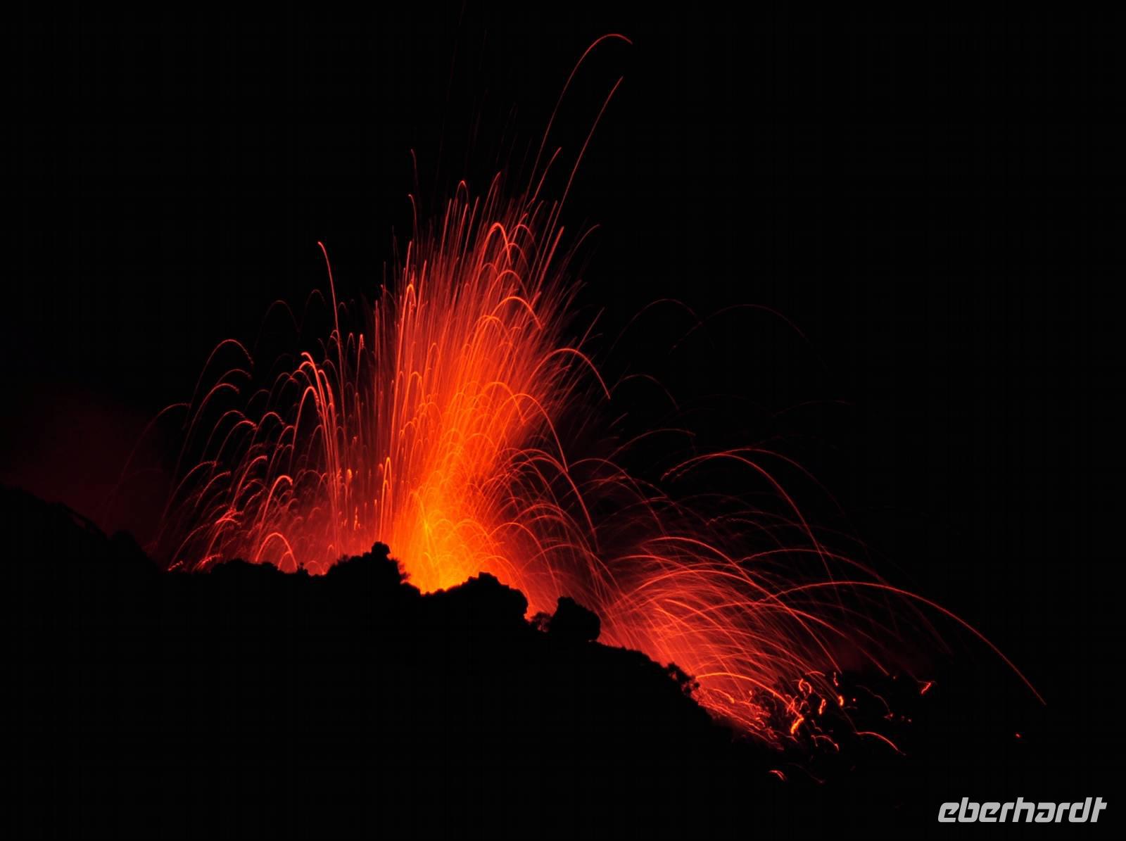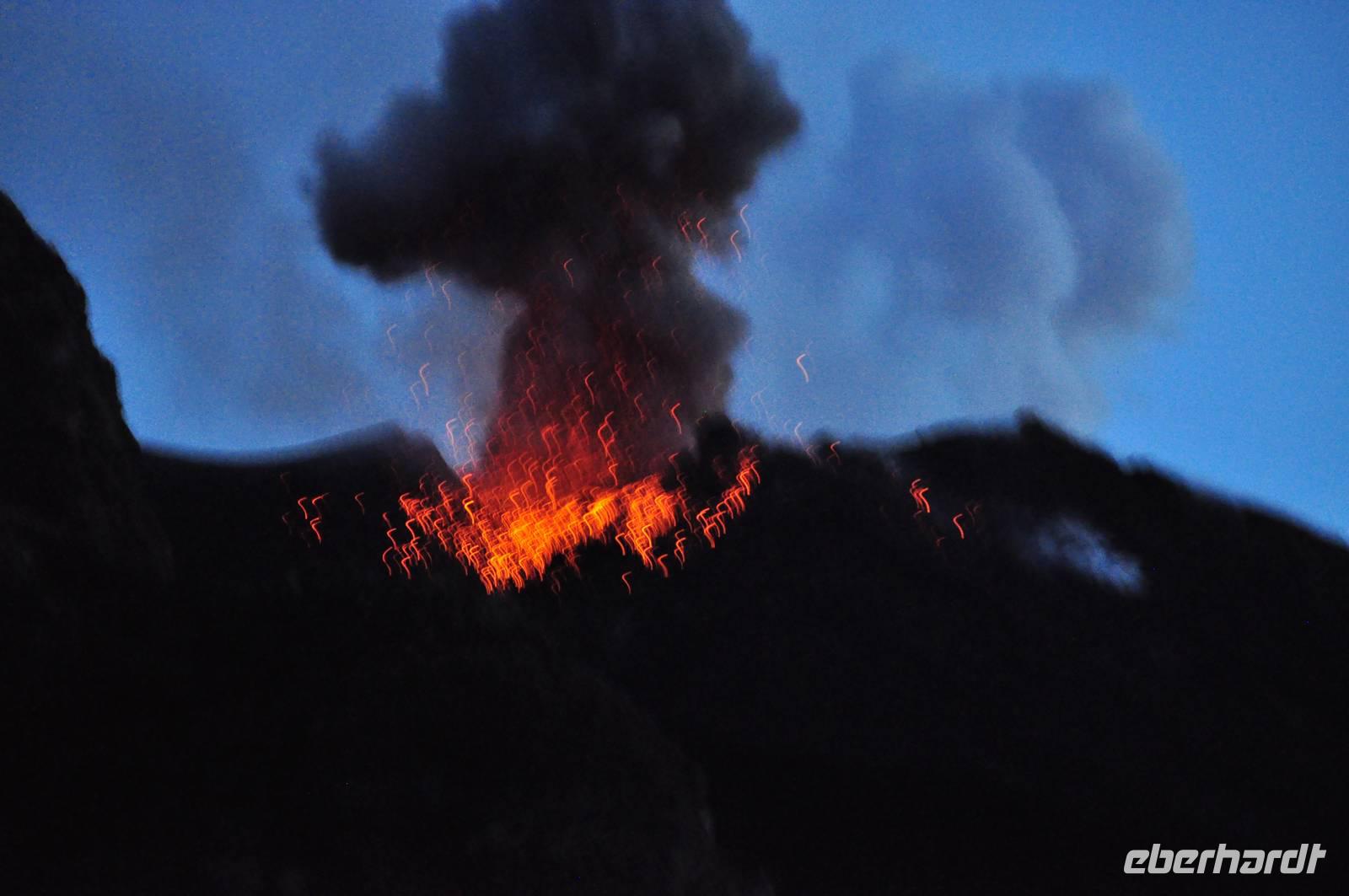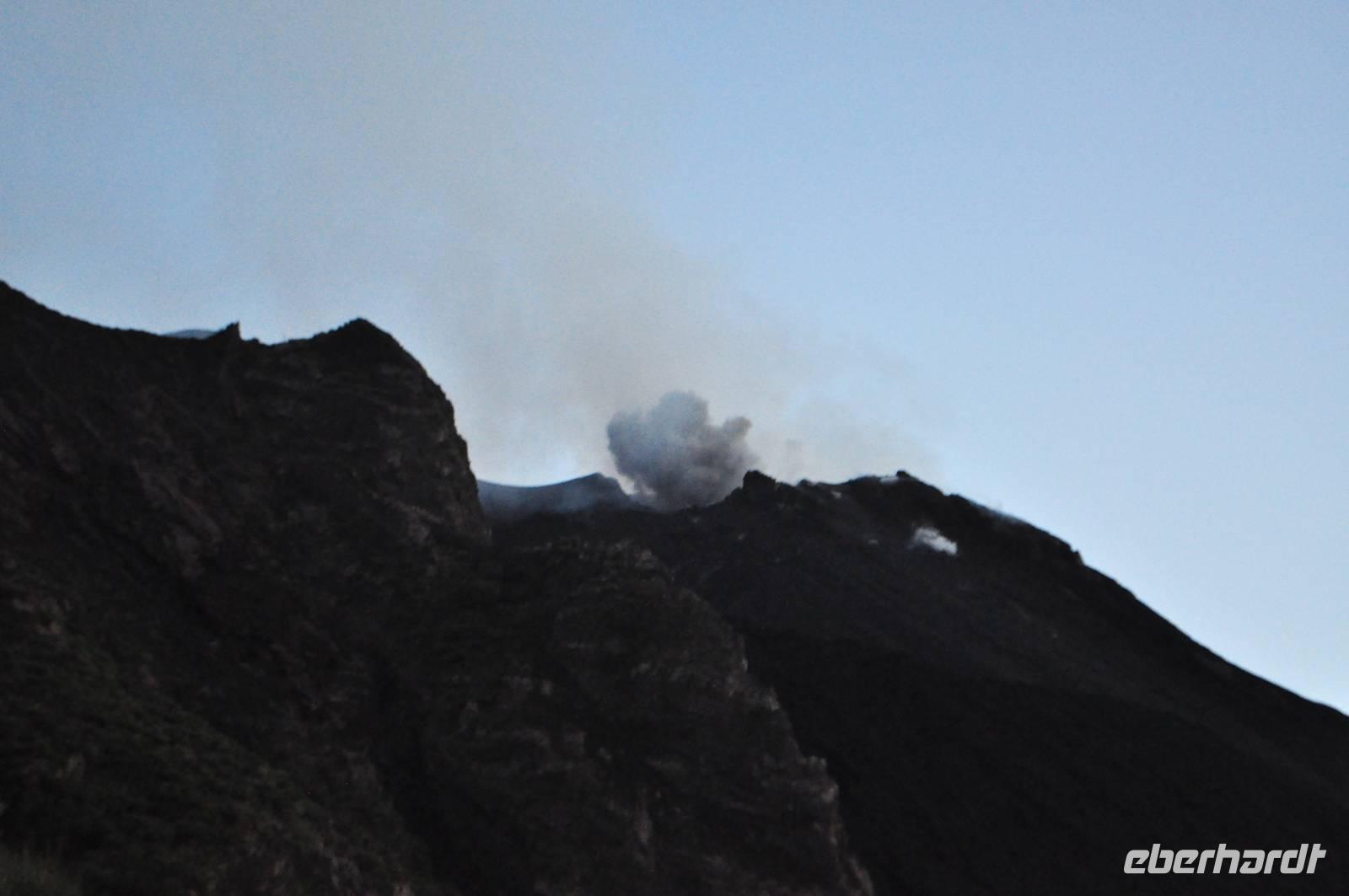 Der Stromboli belohnt uns heute mit Eruptionen etwa im 20-Minuten-Rhythmus.