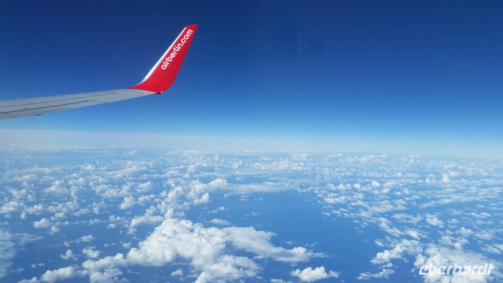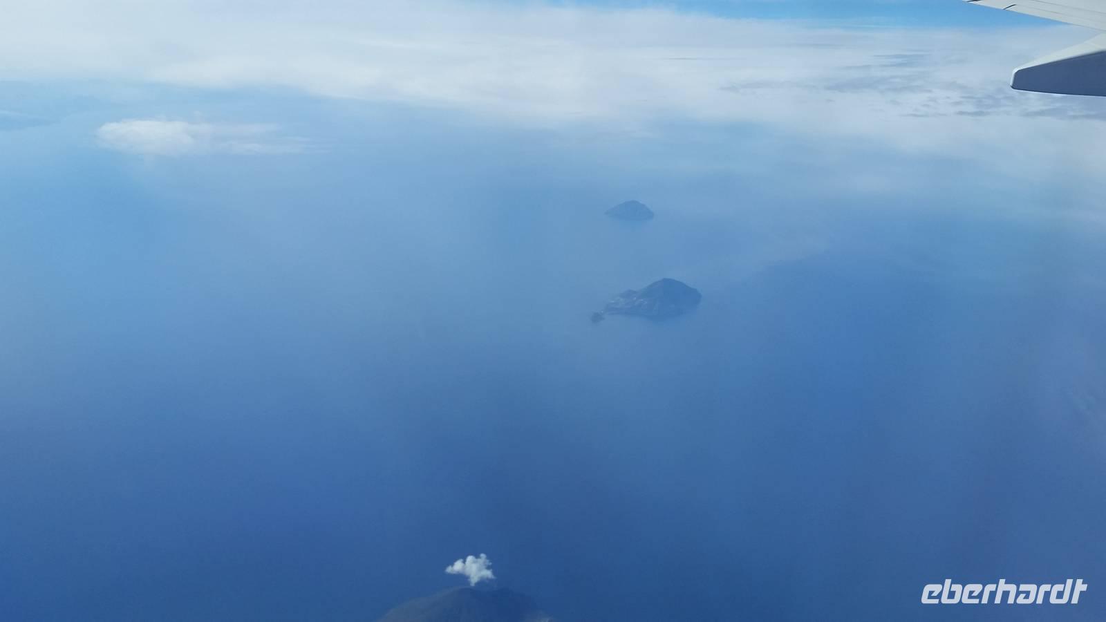 Mit Air Berlin reisen wir von den Flughäfen Berlin-Tegel, Frankfurt, Stuttgart und Zürich nach Catania. Wir haben gute Wetterbedingungen und das Glück mit einer interessanten Flugroute. Von Berlin kommend geht es über Prag, Split in Kroatien der Neapel Region in Italien über die Äolischen Inseln und der Straße von Messina nach Catania.