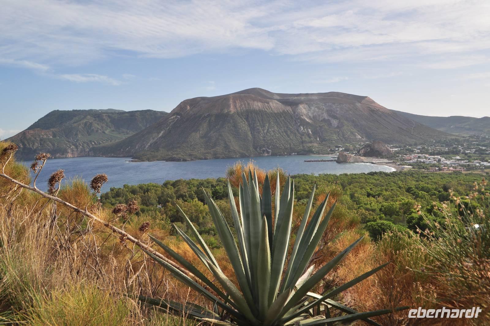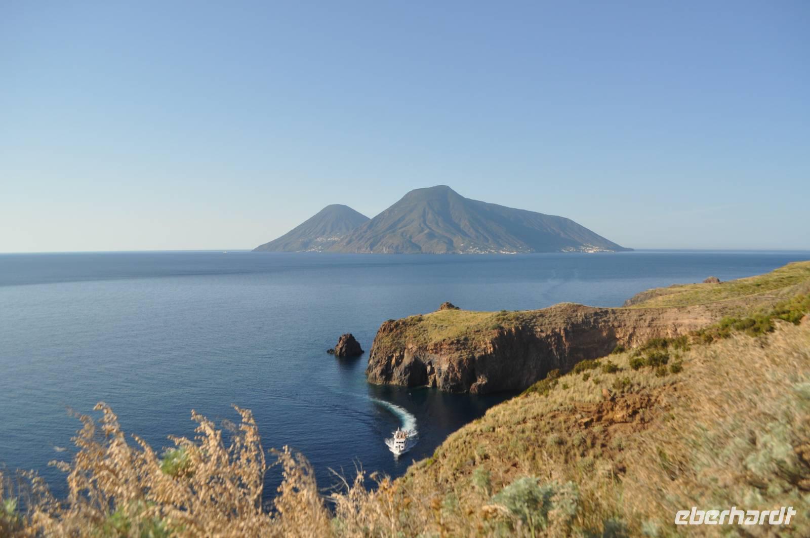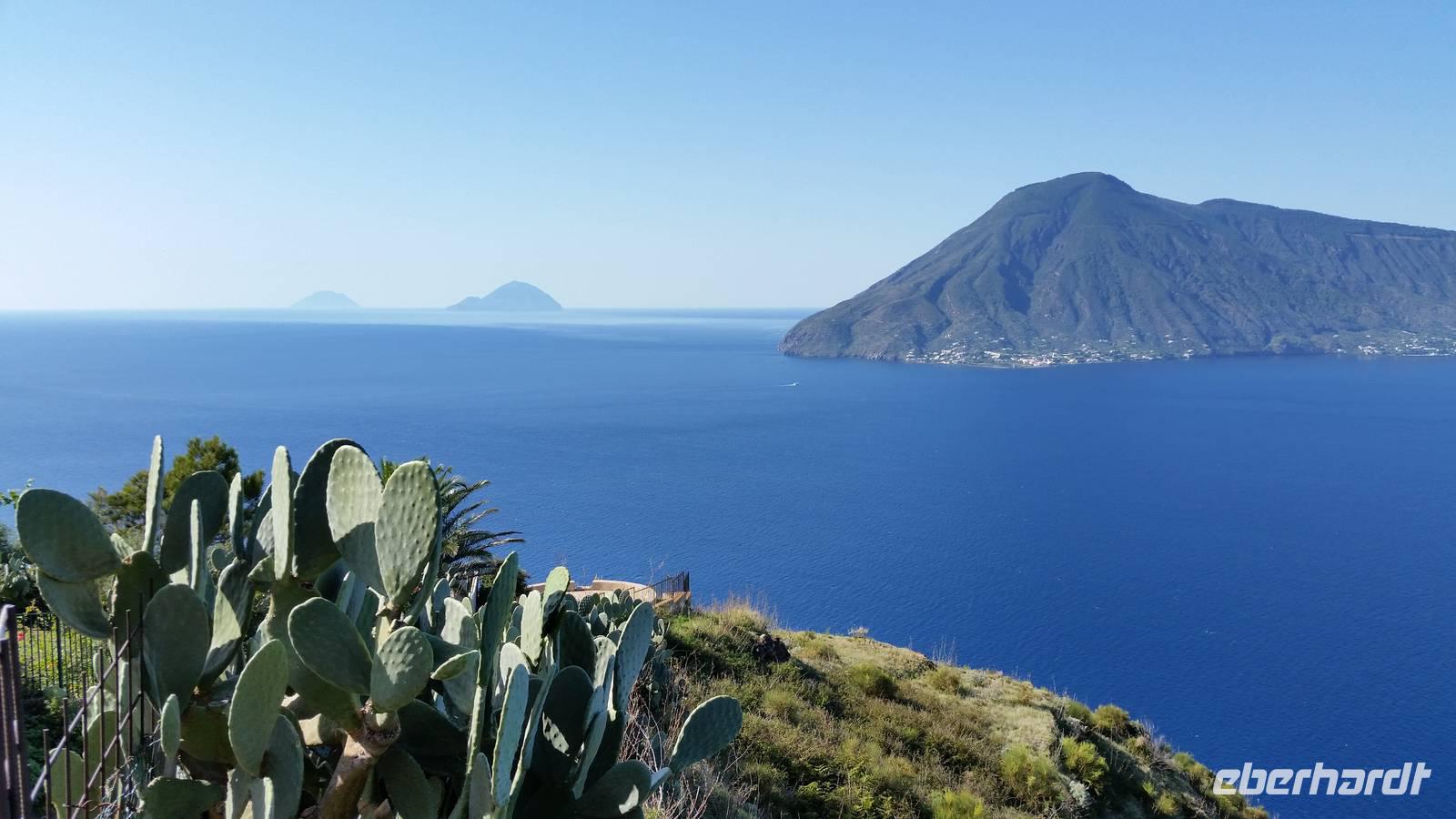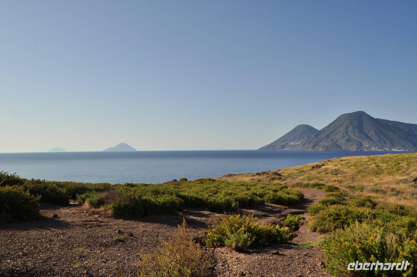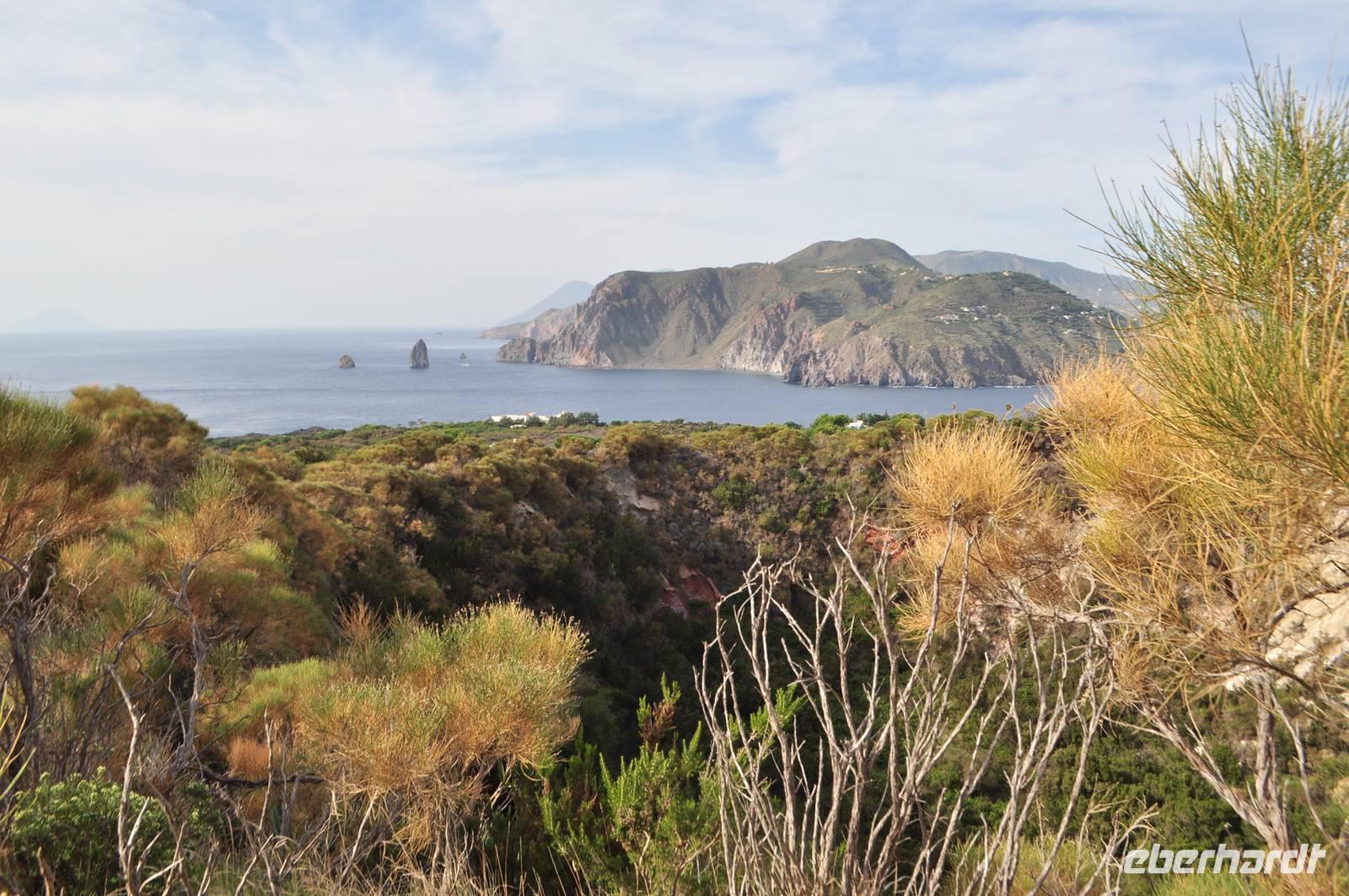 An der Nordspitze kommen wir an einen der beiden schönsten Aussichtspunkte der Insel. In der Nähe der Ortschaft Quattropani bietet sich ein phantastischer Blick auf die nordwestlichen Äolischen Inseln. Unmittelbar gegenüber liegt Salina, die höchste aller Inseln. Weiter westlich erheben sich Filicudi und Alicudi. Mit dem Bus geht es noch ein Stück weiter, bevor unsere Wanderung beginnt.