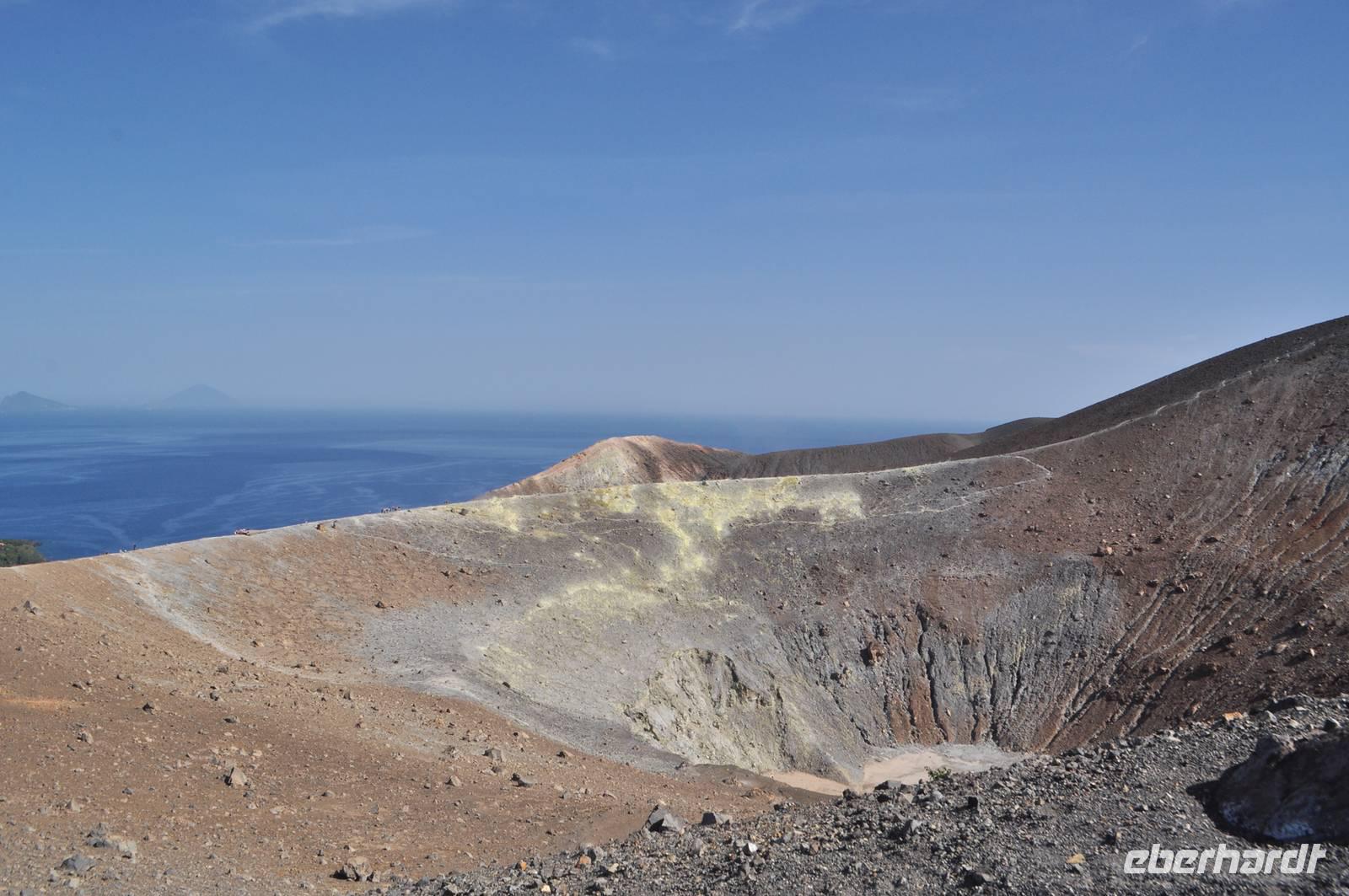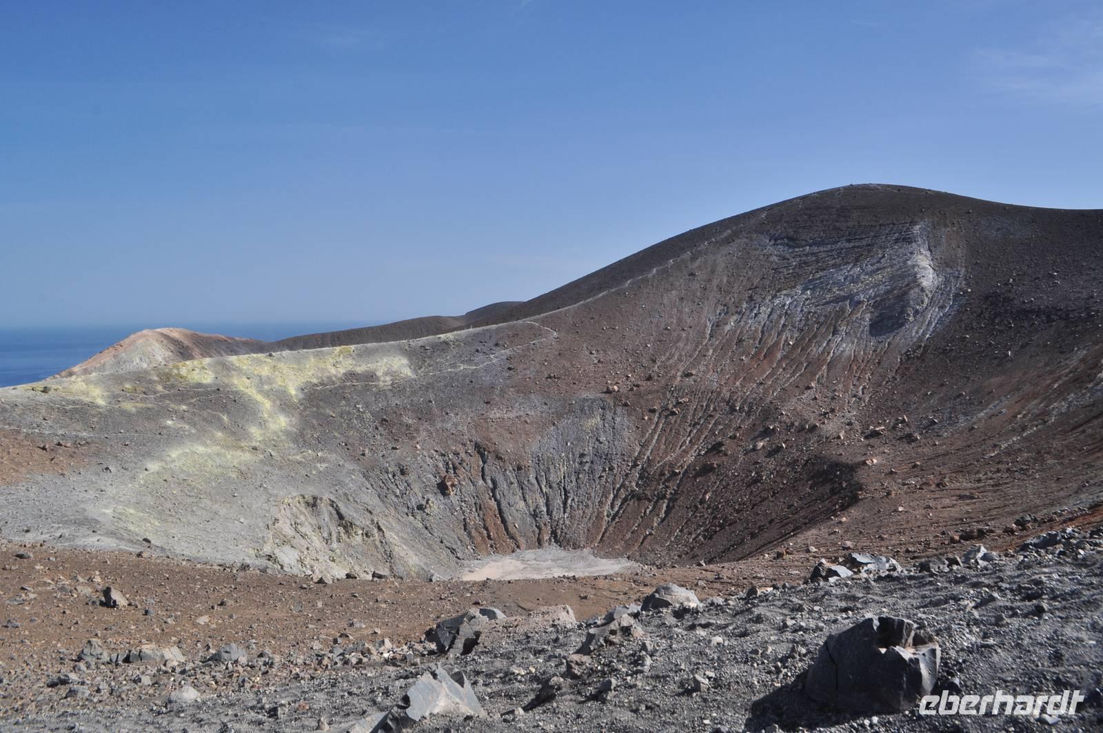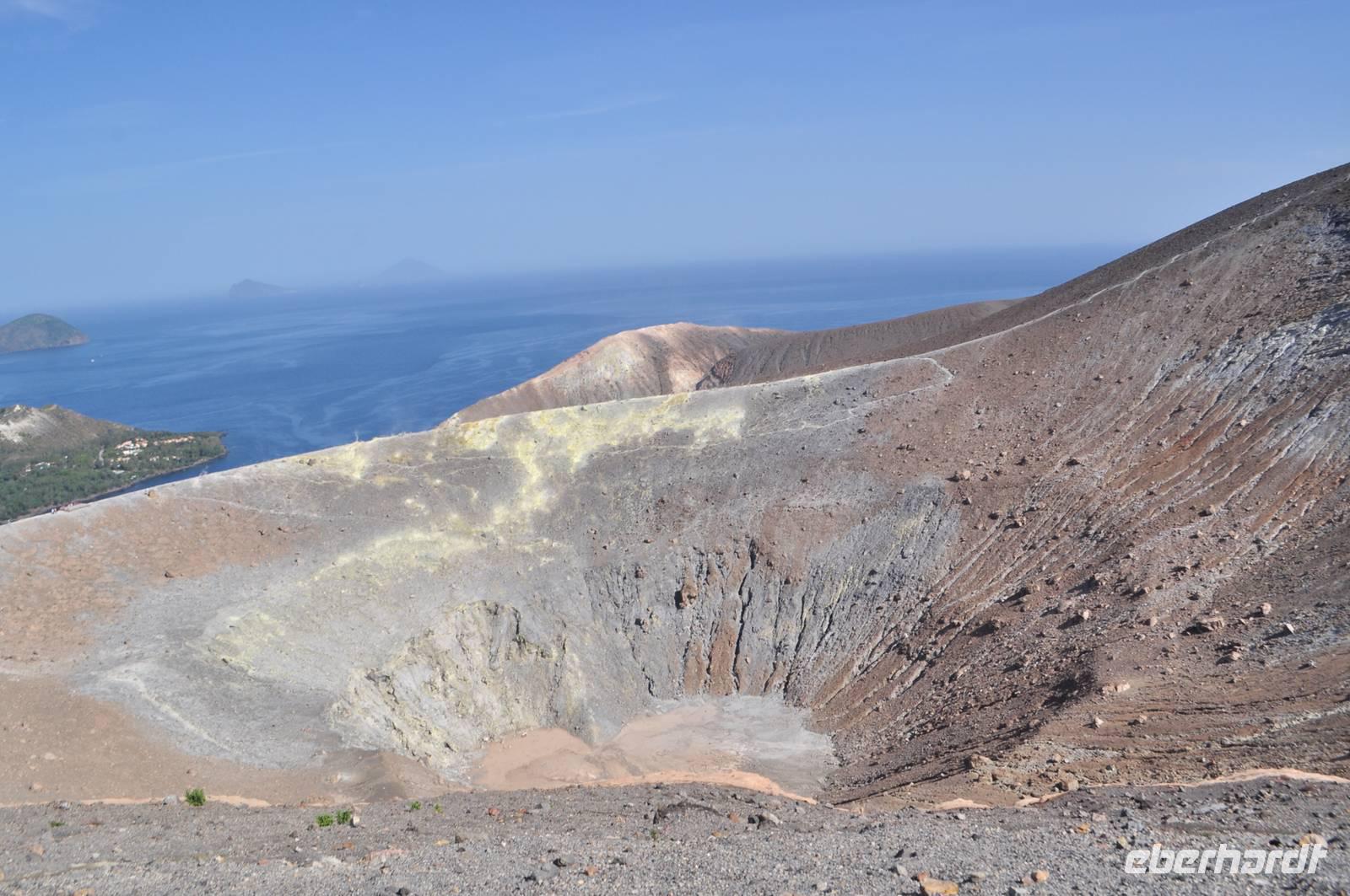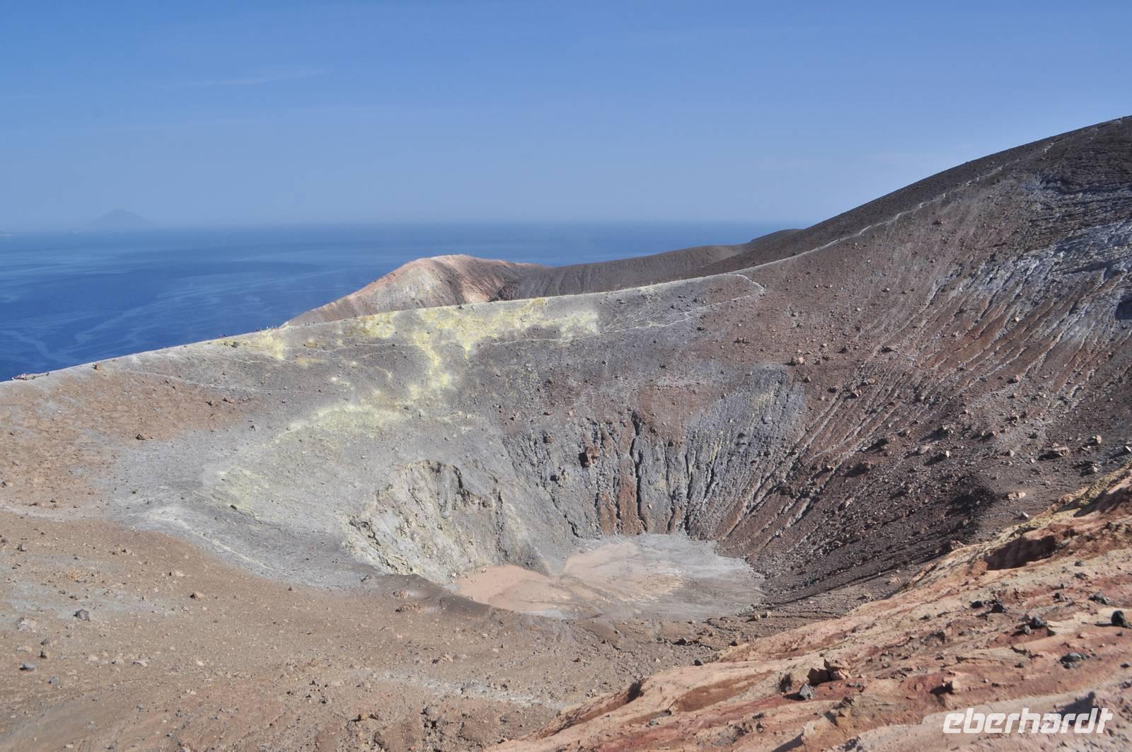 In gut einer Stunde (ab Haupthafen) steigt man hinauf zum Kraterrand. Der letzte Ausbruch auf Vulcano fand 1890 statt. Die Fumarolentätigkeit mit ihrer starken Schwefelablagerung am Nordöstlichen Kraterrand verdeutlichen aber, dass hier nichts erloschen ist. In den Geowissenschaften spricht man allenfalls von „ruhend".