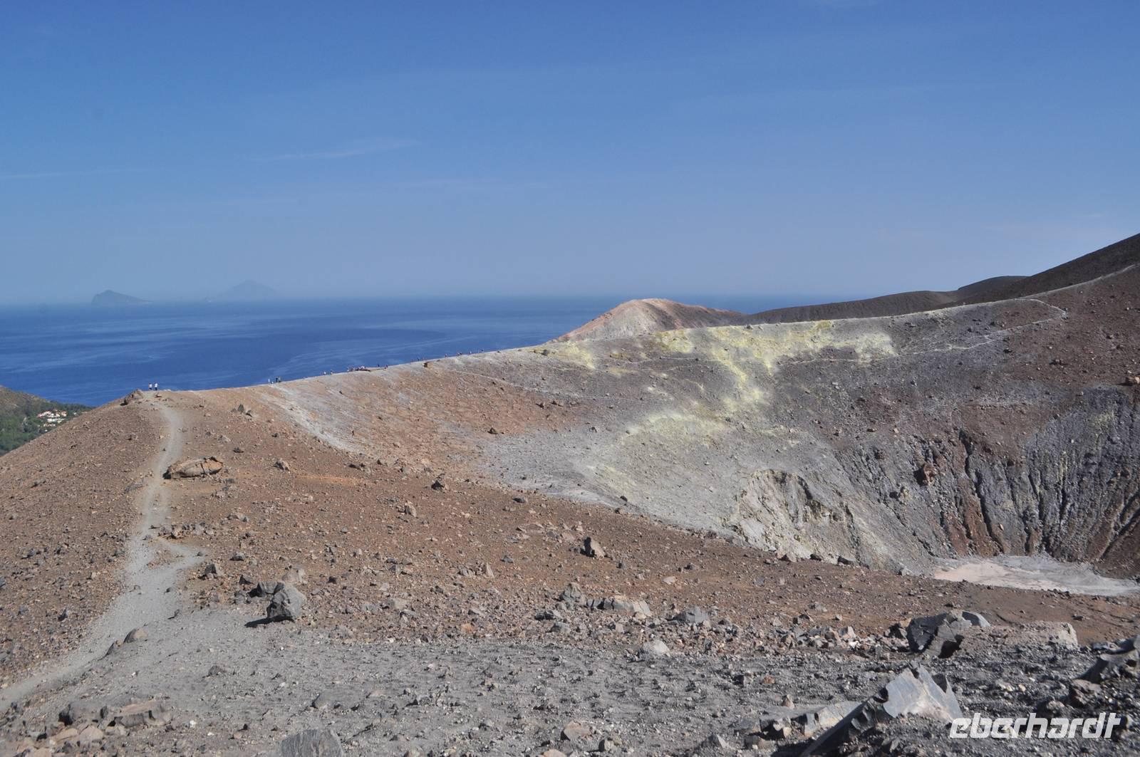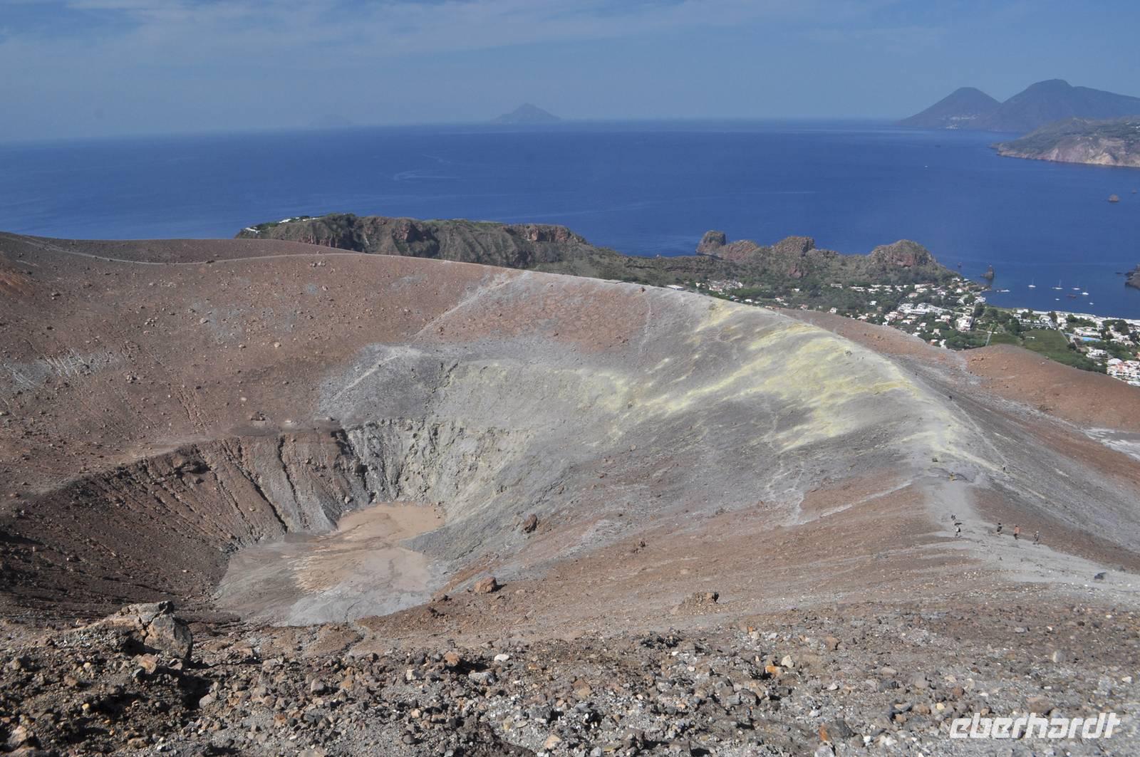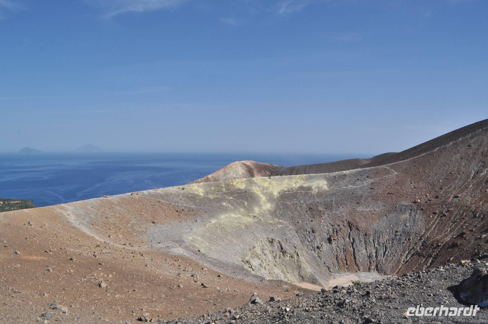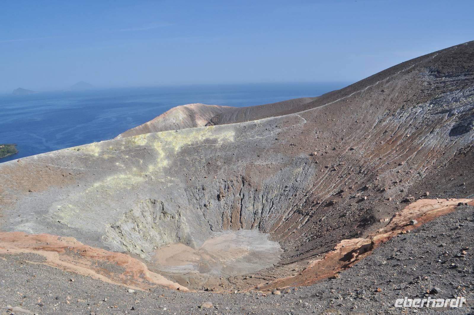 In gut einer Stunde (ab Haupthafen) steigt man hinauf zum Kraterrand. Der letzte Ausbruch auf Vulcano fand 1890 statt. Die Fumarolentätigkeit mit ihrer starken Schwefelablagerung am Nordöstlichen Kraterrand verdeutlichen aber, dass hier nichts erloschen ist. In den Geowissenschaften spricht man allenfalls von „ruhend".