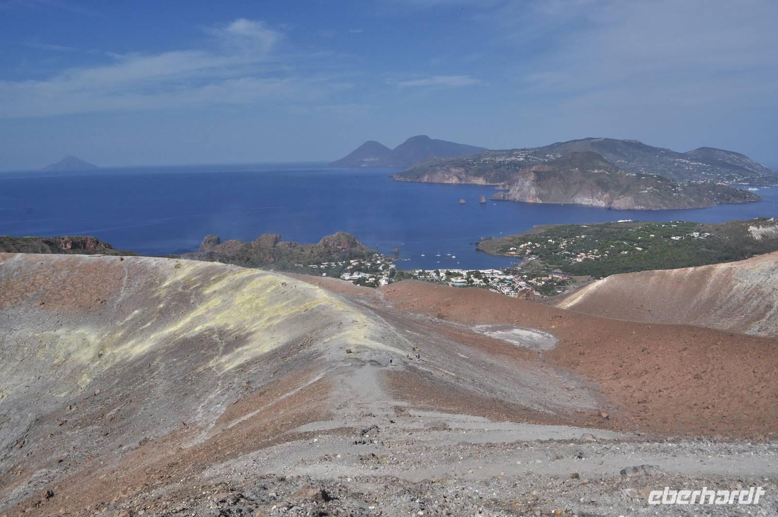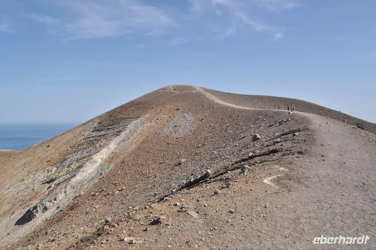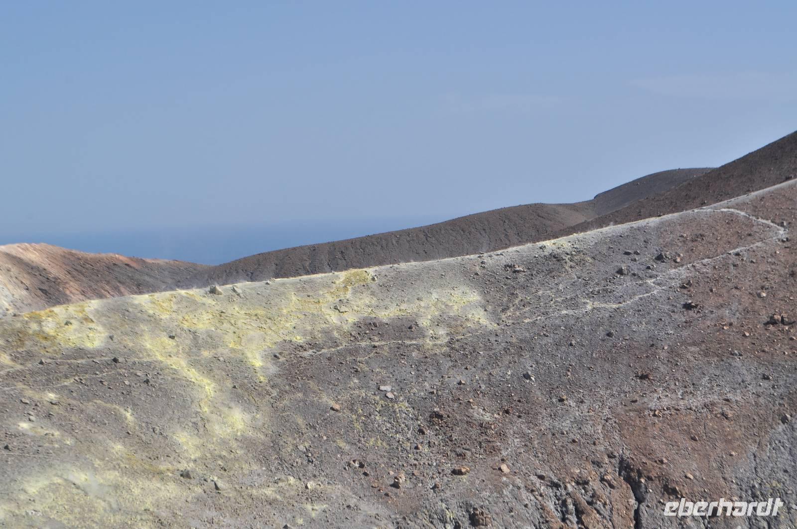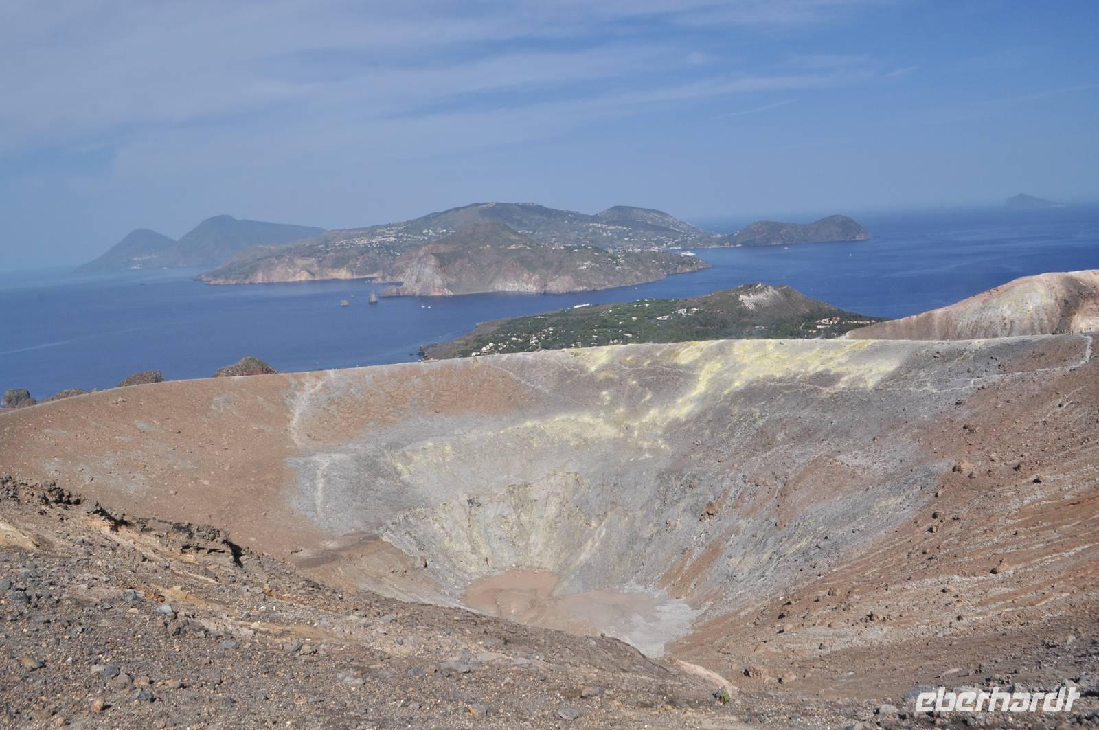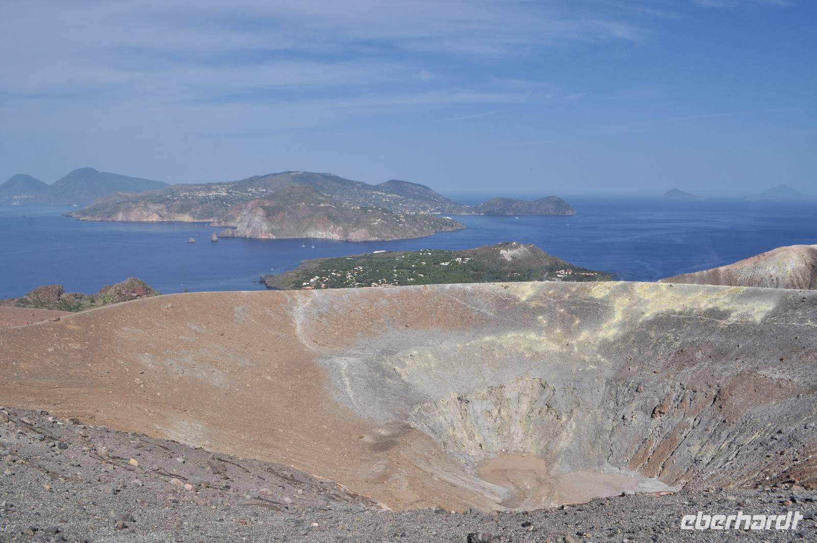 In gut einer Stunde (ab Haupthafen) steigt man hinauf zum Kraterrand. Der letzte Ausbruch auf Vulcano fand 1890 statt. Die Fumarolentätigkeit mit ihrer starken Schwefelablagerung am Nordöstlichen Kraterrand verdeutlichen aber, dass hier nichts erloschen ist. In den Geowissenschaften spricht man allenfalls von „ruhend".