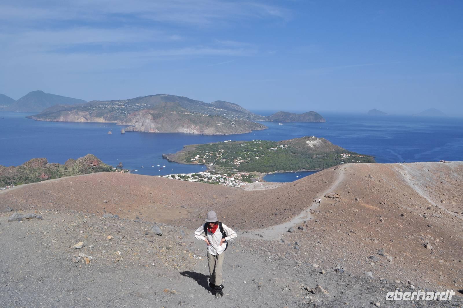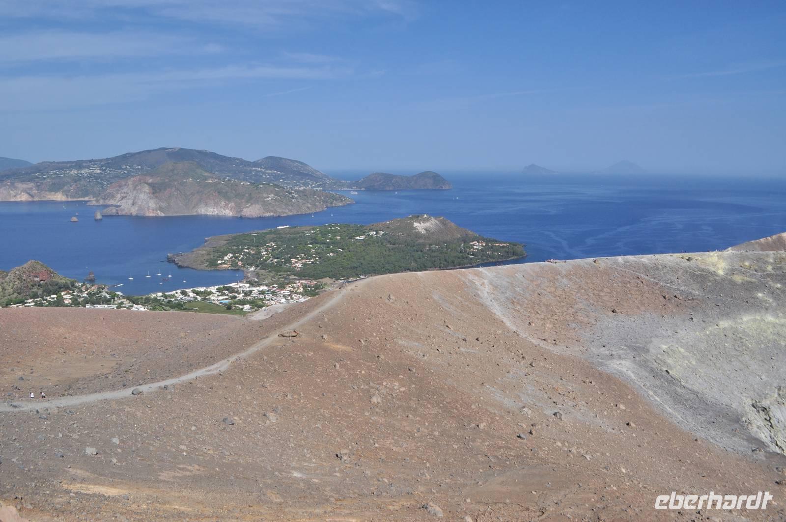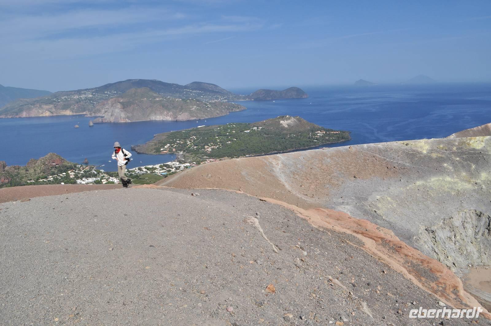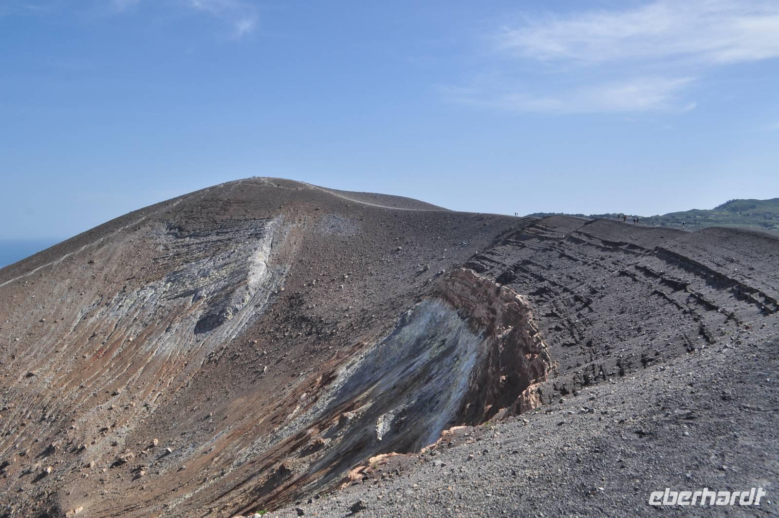 In gut einer Stunde (ab Haupthafen) steigt man hinauf zum Kraterrand. Der letzte Ausbruch auf Vulcano fand 1890 statt. Die Fumarolentätigkeit mit ihrer starken Schwefelablagerung am Nordöstlichen Kraterrand verdeutlichen aber, dass hier nichts erloschen ist. In den Geowissenschaften spricht man allenfalls von „ruhend".