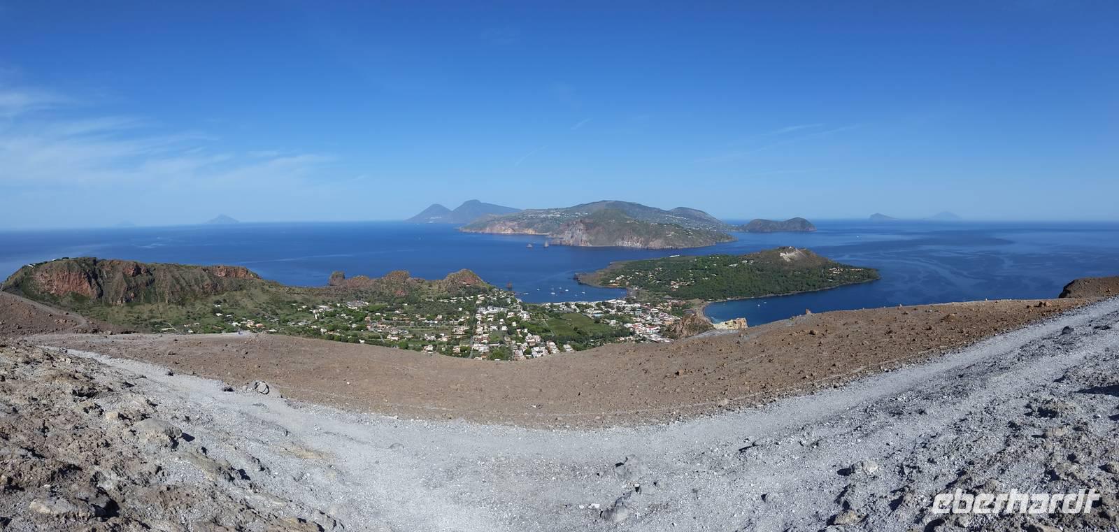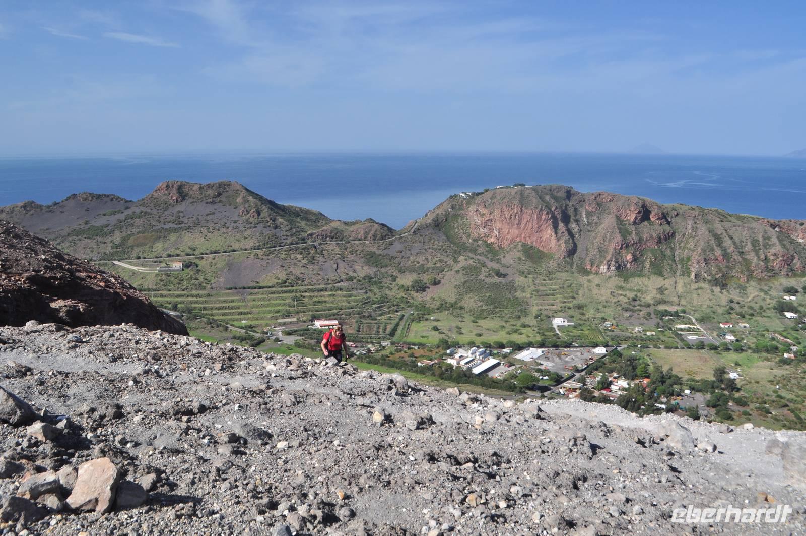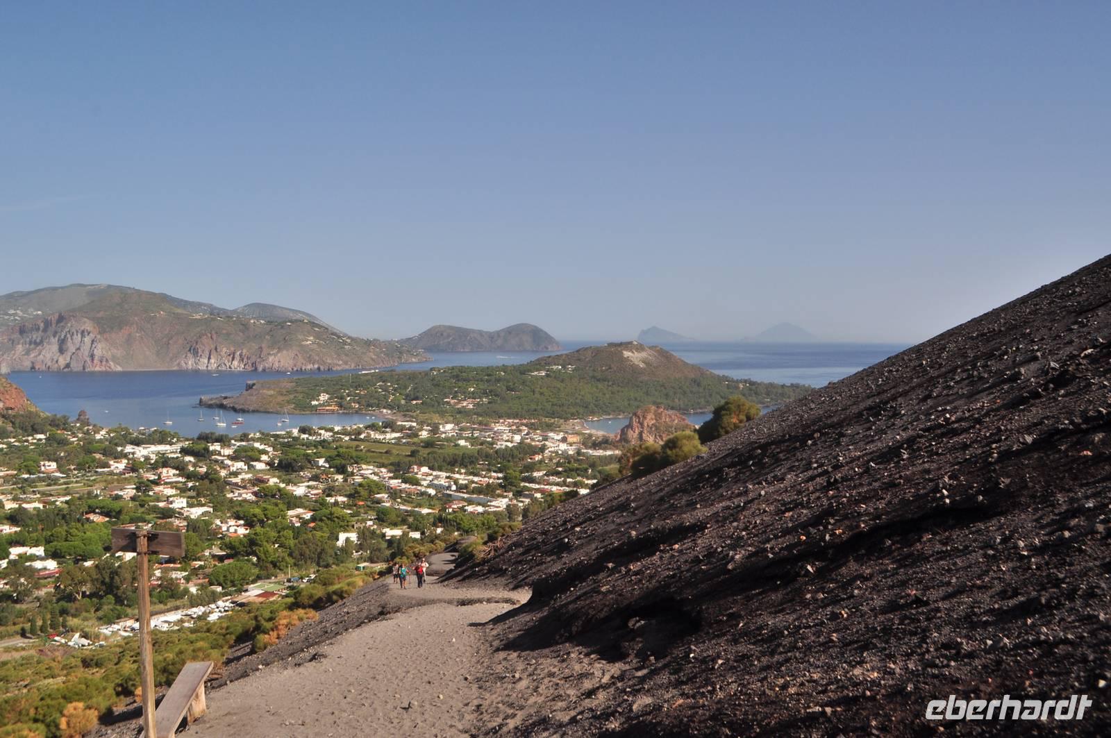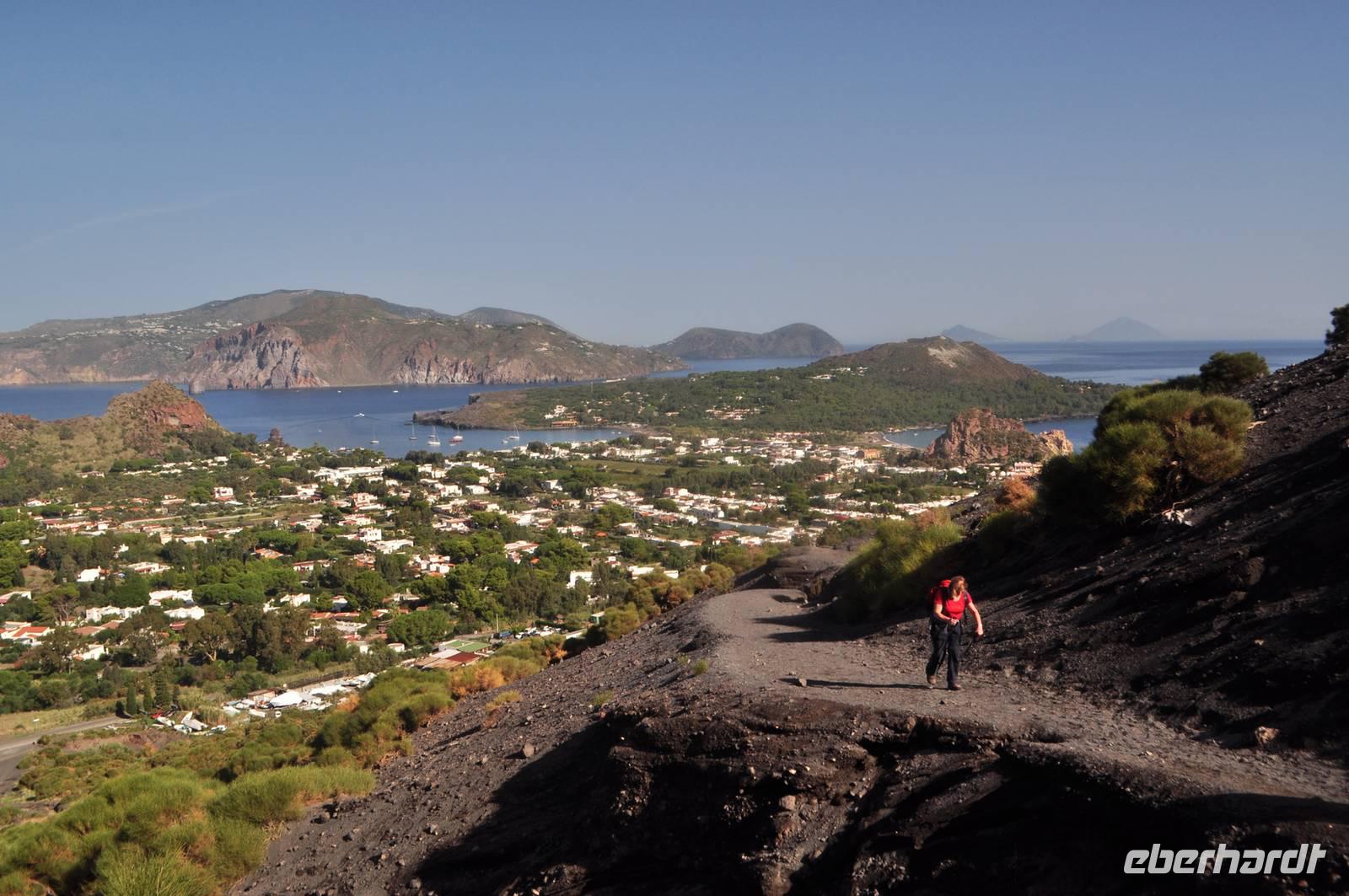 In gut einer Stunde (ab Haupthafen) steigt man hinauf zum Kraterrand. Der letzte Ausbruch auf Vulcano fand 1890 statt. Die Fumarolentätigkeit mit ihrer starken Schwefelablagerung am Nordöstlichen Kraterrand verdeutlichen aber, dass hier nichts erloschen ist. In den Geowissenschaften spricht man allenfalls von „ruhend".