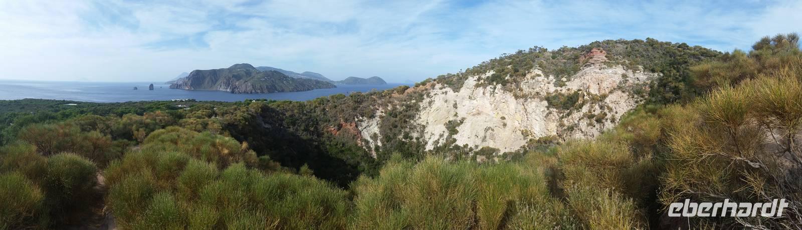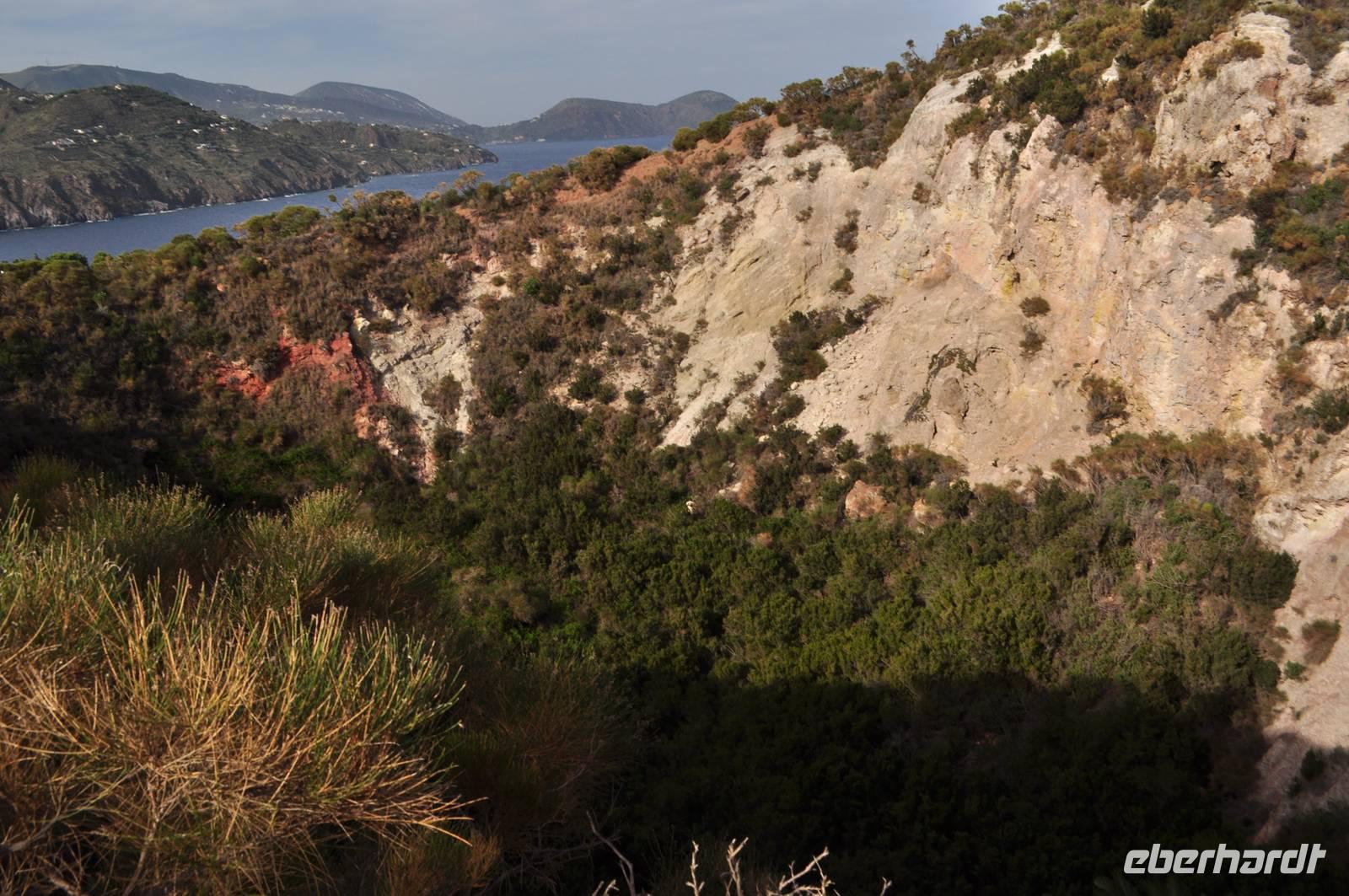 Ich selbst erkunde derweil den jüngsten Krater der Insel, genannt Vulcanello. Auch von hier hat man eine wunderschöne Sicht. Leider sind die Wege völlig zugewachsen und daher derzeit nicht zu empfehlen.