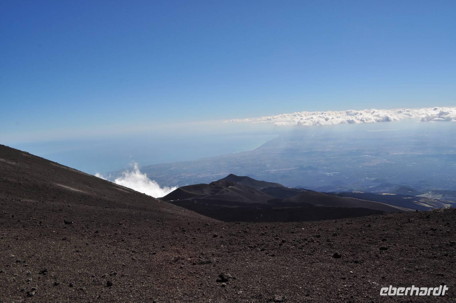 Auch hier beschert uns das Wetter eine Fernsicht, die man nur selten erleben kann. Heute kann man bis zum ausgasenden Ätna blicken, diese Sicht erlebe ich selbst zum ersten Mal.