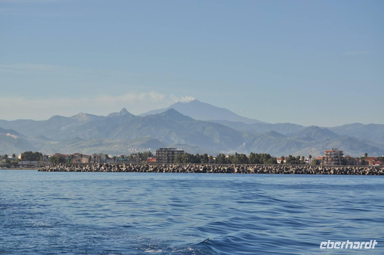 Sehr früh starten wir in den Tag. Es liegt ein langer Weg vor uns. Gegen 7 Uhr starten wir in Richtung Milazzo. Entlang der Straße von Messina geht es hinüber zur Nordküste zum Fährhafen von Milazzo. Das Wetter ist wieder perfekt.