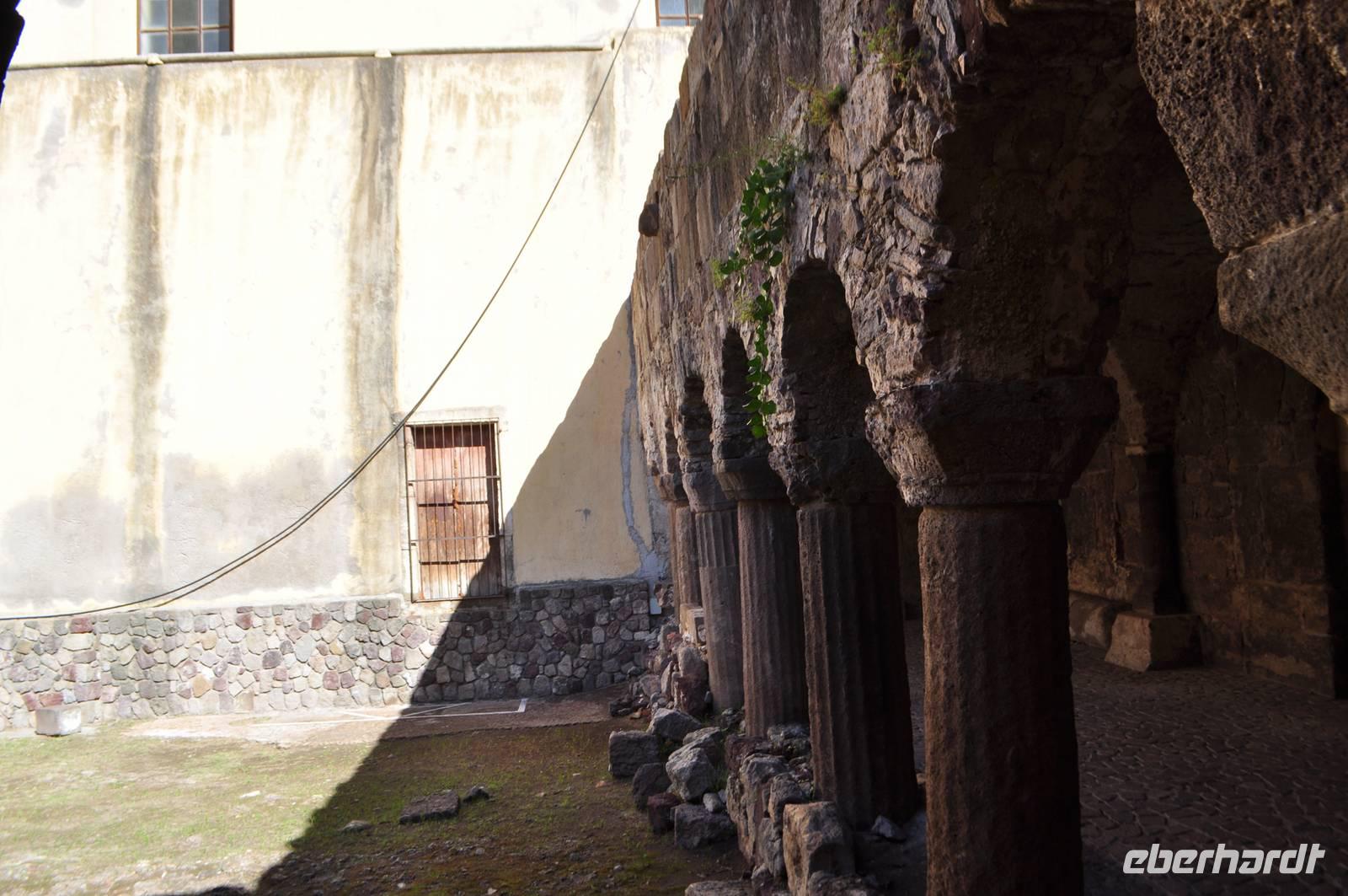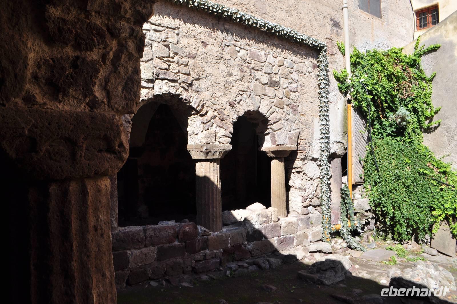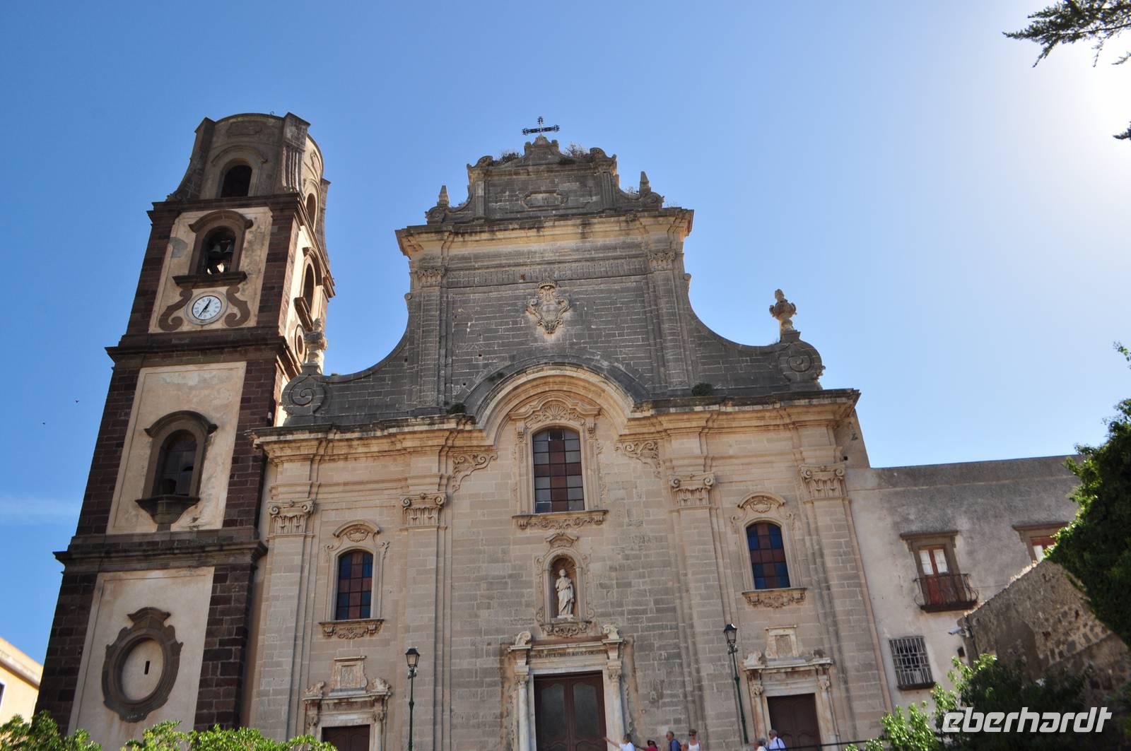 Hier auf Lipari fand man viele griechische Theatermasken aus Ton in Gestalt der Gottheiten, in Kopie heute in jedem guten Souvenirgeschäft erhältlich. Nach der Besichtigung der Kirche San Bartholo, benannt nach dem Schutzheiligen der Insel und des mittelalterlichen Kreuzganges haben wir Freizeit. Zeit sich mit Getränken und Proviant für die heutige Wanderung zu versorgen und um etwas zu entspannen.