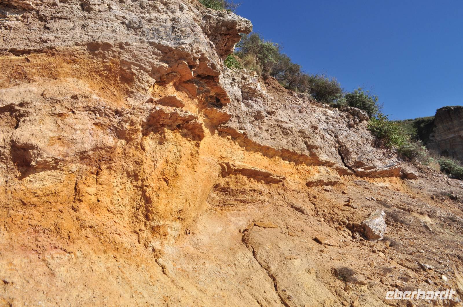 Bis vor einigen Jahren wurde das Gestein im Tagebau abgebaut, seit dem die Äolischen Inseln zum UNESCO Weltnaturerbe gehören ist der Abbau verboten. Dennoch hat der Bergbau sichtliche Spuren hinterlassen, die grau-weiße Wunde der Insel ist von weither bereits sichtbar. Neben dem Bims findet man hier auch ein weiteres wichtiges Mineral der Insel, Obsidian oder Obsidianglas. Chemisch identisch zum Bims, anschaulich komplett verschieden: Schwarz, Schwer, sehr scharfkantig. Obsidian war das erste Material, das Menschen zum Schneiden verwenden konnten. Es wurde schon in der Steinzeit von hier in Europa gehandelt.