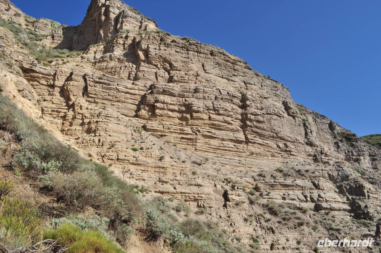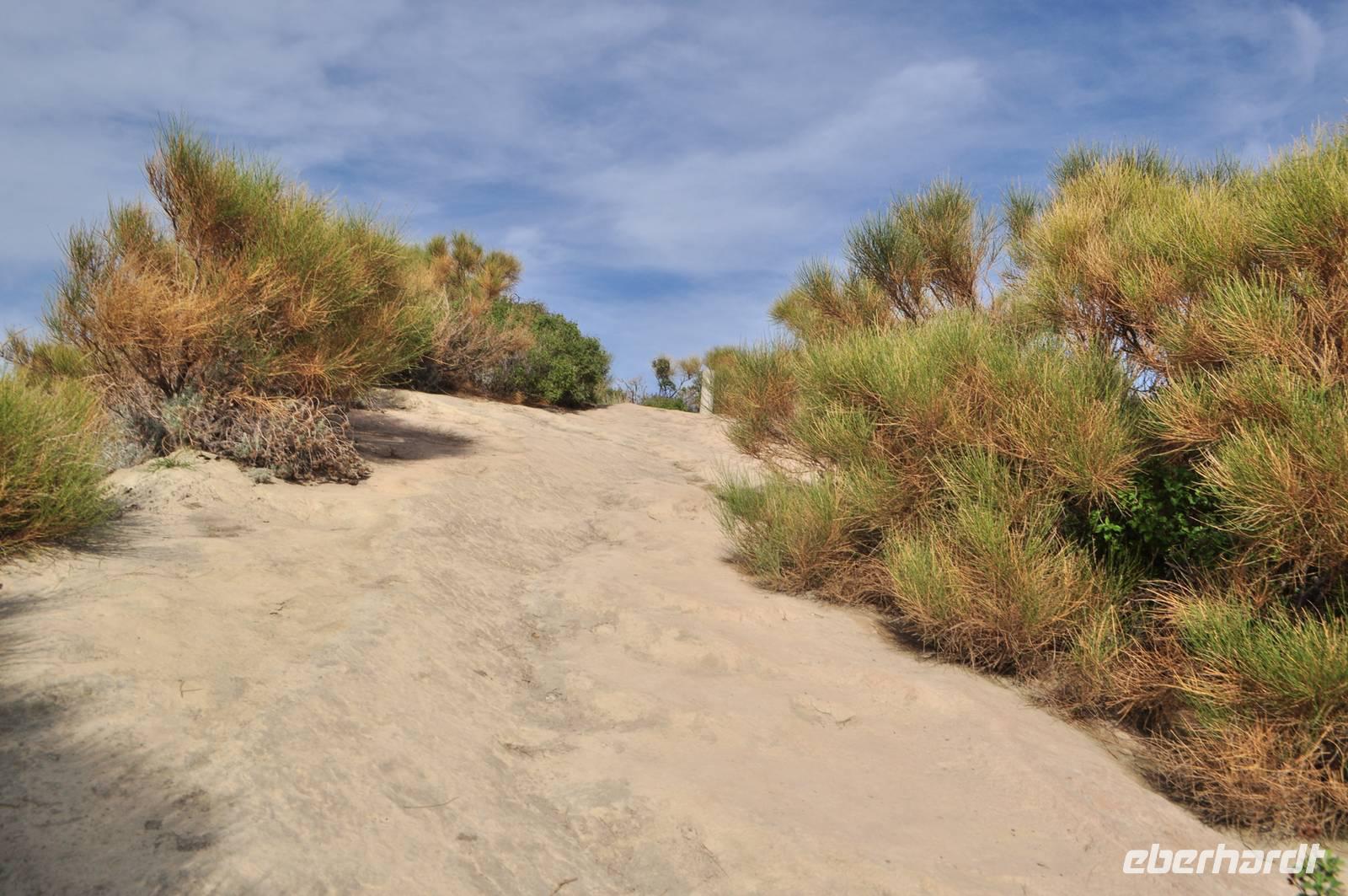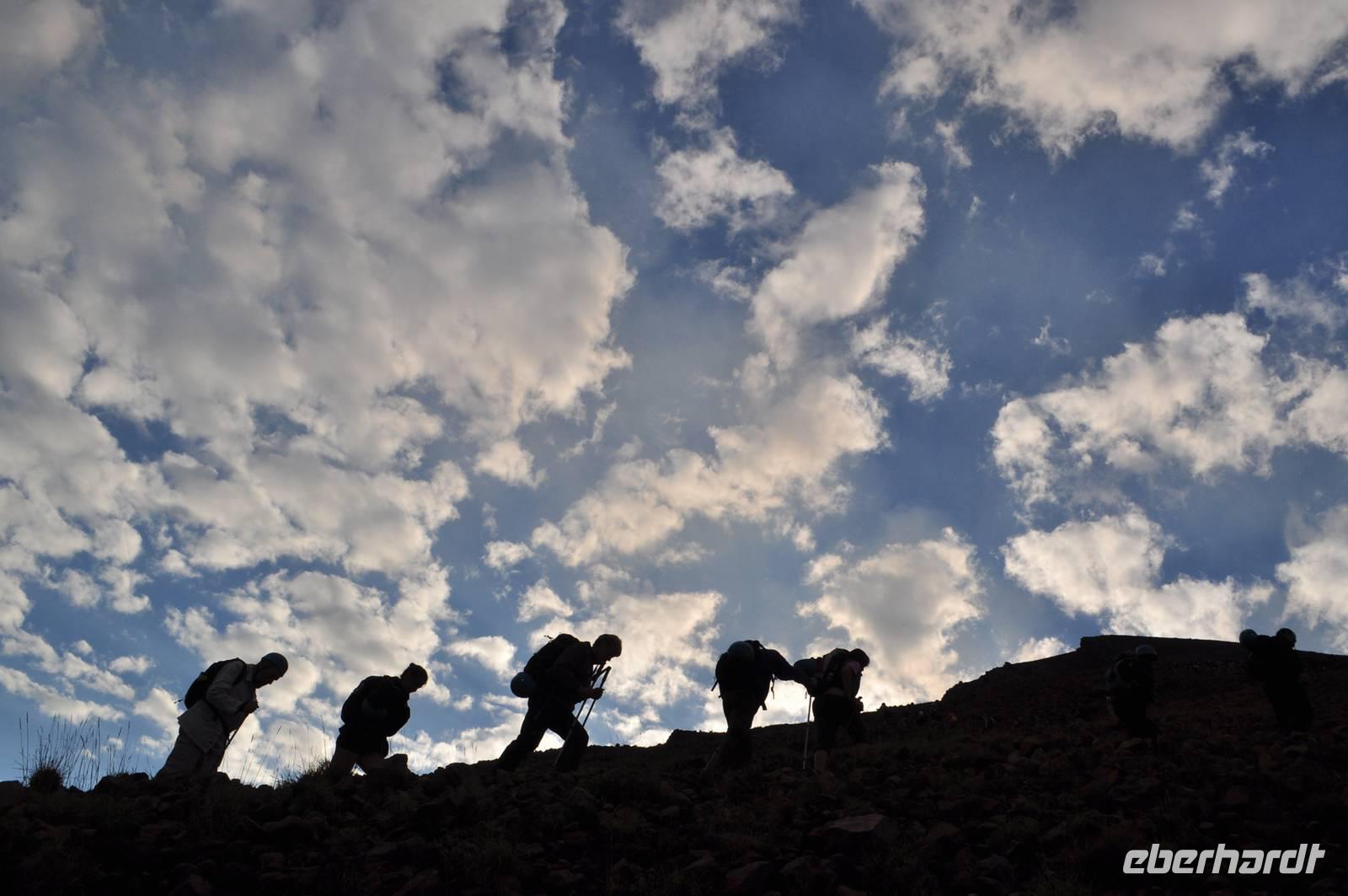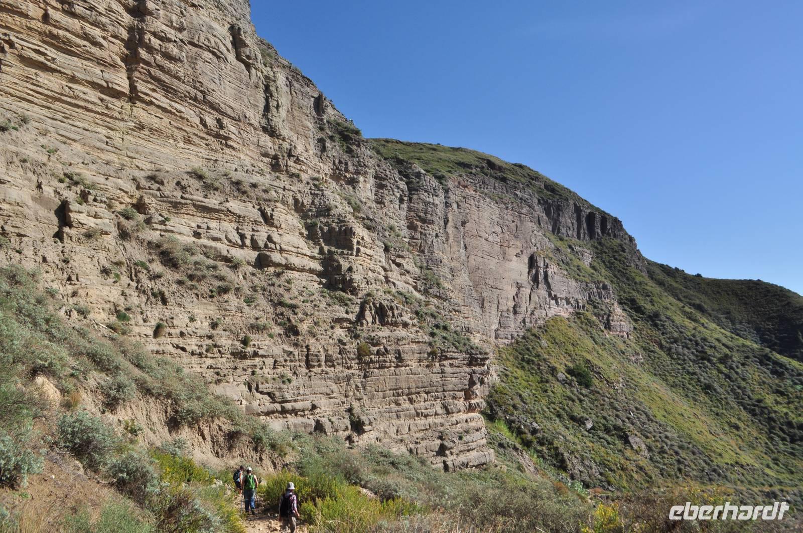 Alle Gäste entscheiden sich für den Aufstieg. Wie sich aber schnell herausstellt, die Herausforderung für eine Dame zu hoch. Unser Guide entscheidet, dass sie heute leider nicht die erforderliche Tagesform mitbringt. Sie steigt ab. Ihr Abstieg wird von ihm überwacht, die Lage des Weges ermöglicht eine weite Einsicht auch von weiter oben.