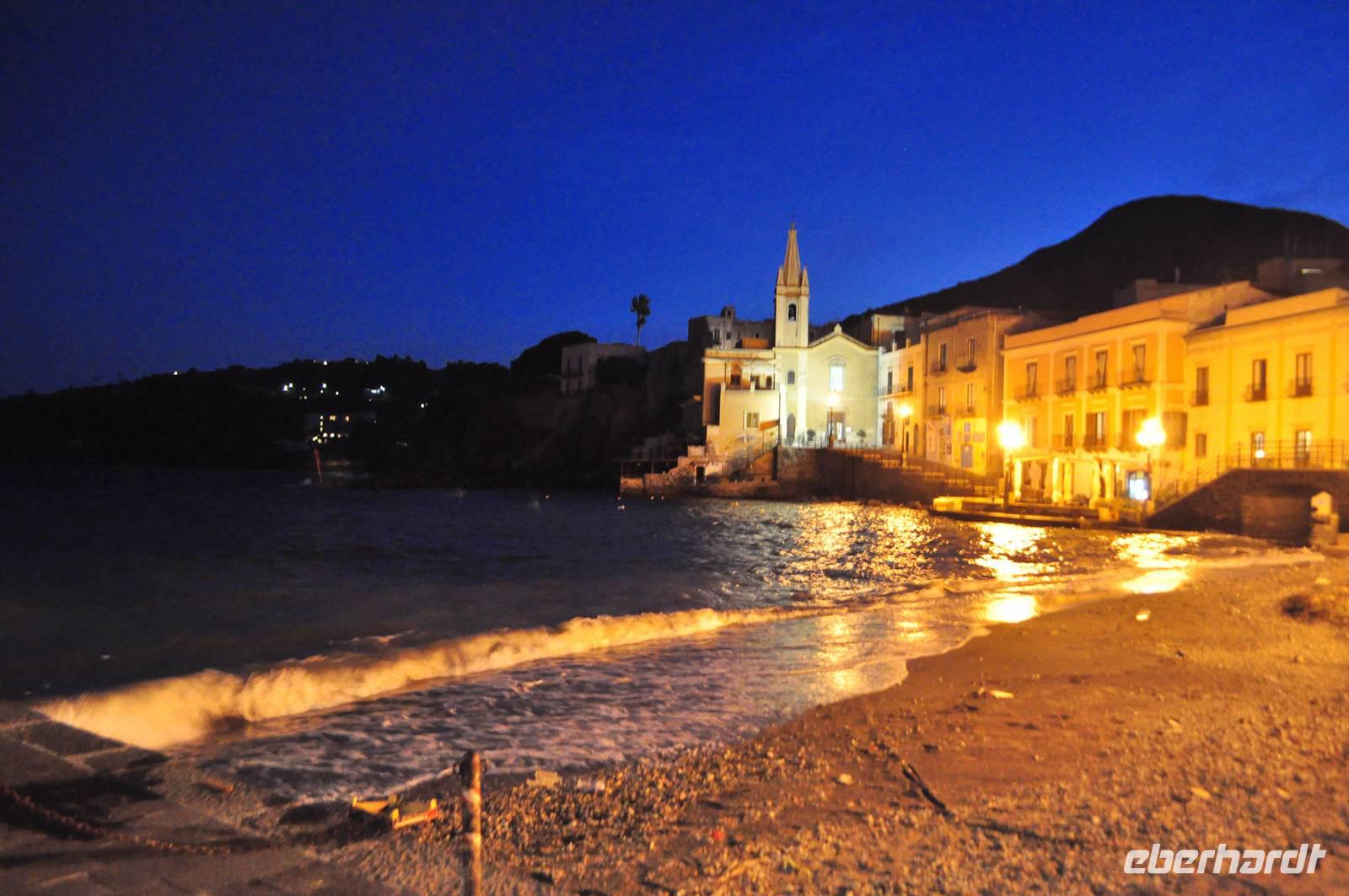 Schnell wird es dunkel. Uns wird vor Augen geführt, dass man auf den Äolischen stets eine Stirnlampe dabei haben sollte.