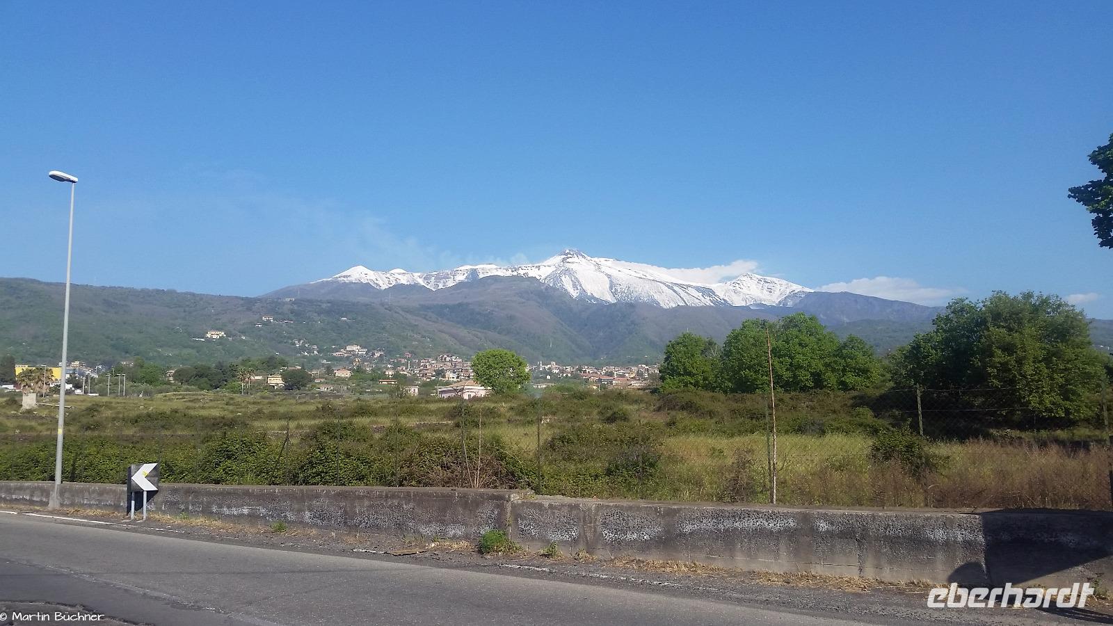 Zunächst über die Autobahn E45, dann über die Bergstraße fahren wir hinauf zum Ätna.