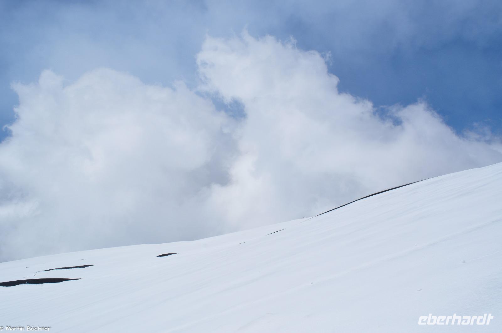 die -4°C in Gipfellagen. Am Nachmittag zieht auch noch ein Gewitter auf.