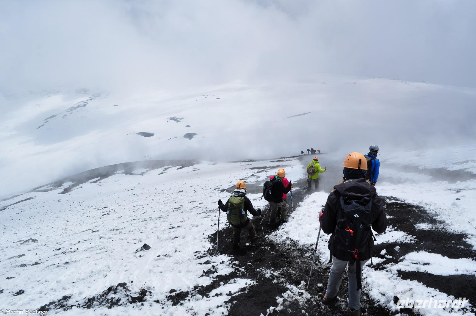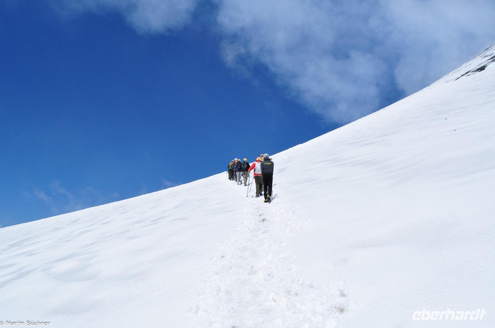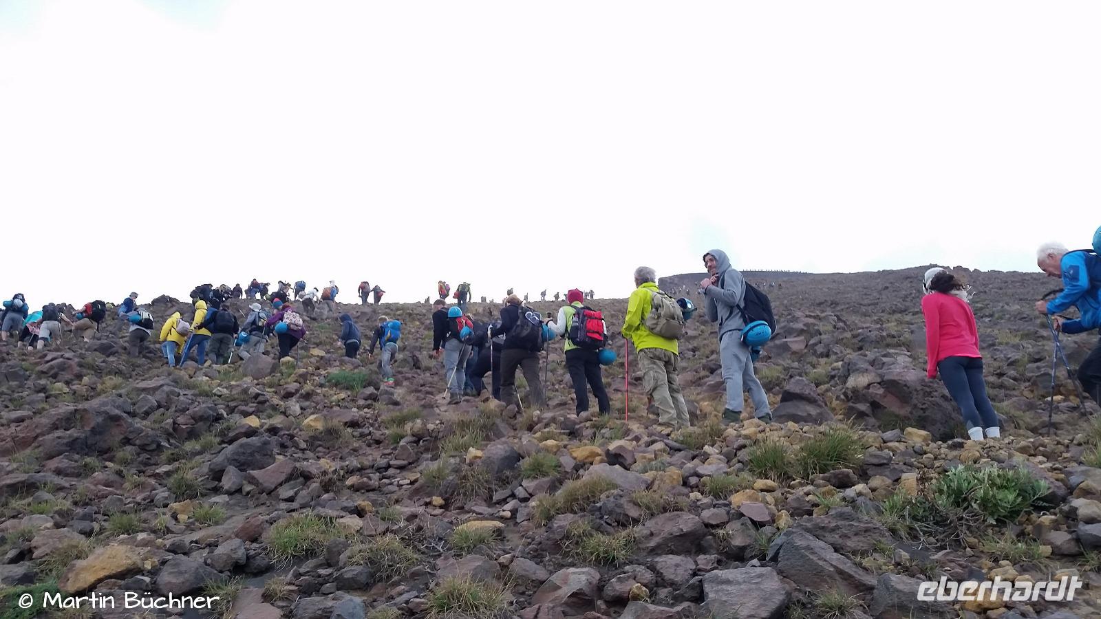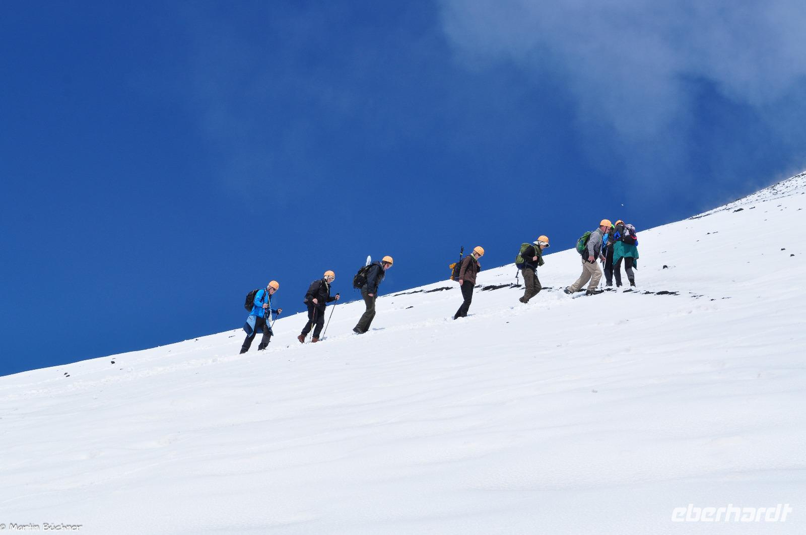 Nach dieser eindrucksvollen Demonstration war auch unser Guide sofort überzeugt, den geordneten Abstieg anzutreten. Für mich aufgrund der Situation vielleicht etwas zu langsam, aber immerhin relativ unmittelbar.