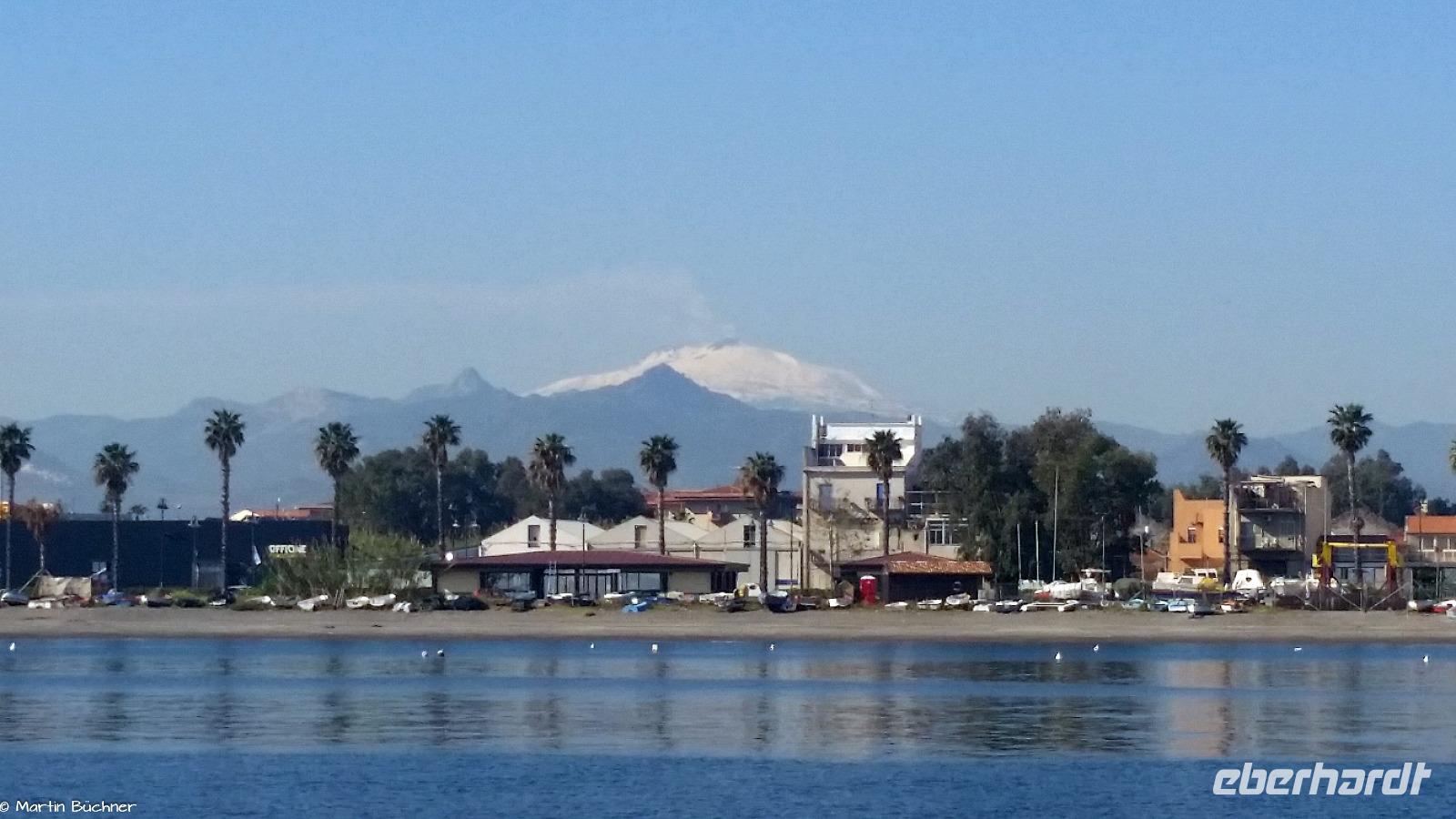 Unser Hotel Nike, liegt direkt am Strand. Das Wetter ist wie durch den Wetterbericht angekündigt mäßig, der Ätna zeigt sich nicht. Wie wir bald feststellen sind an diesem Wochenende ergiebige Schneemengen auf dem Ätna gefallen, bei Temperaturen um