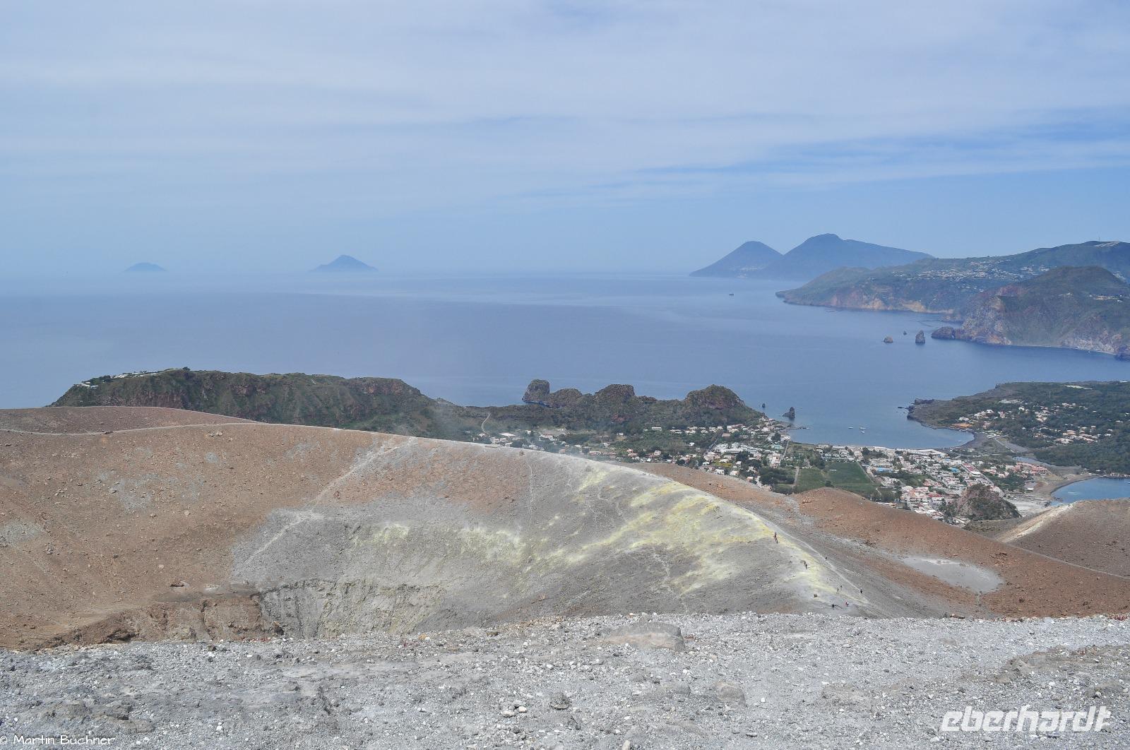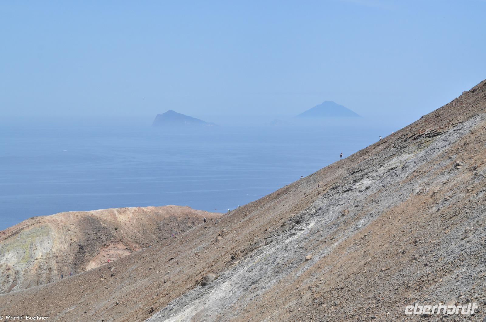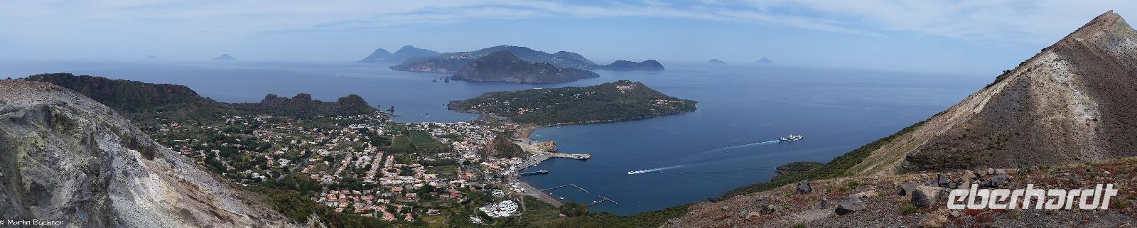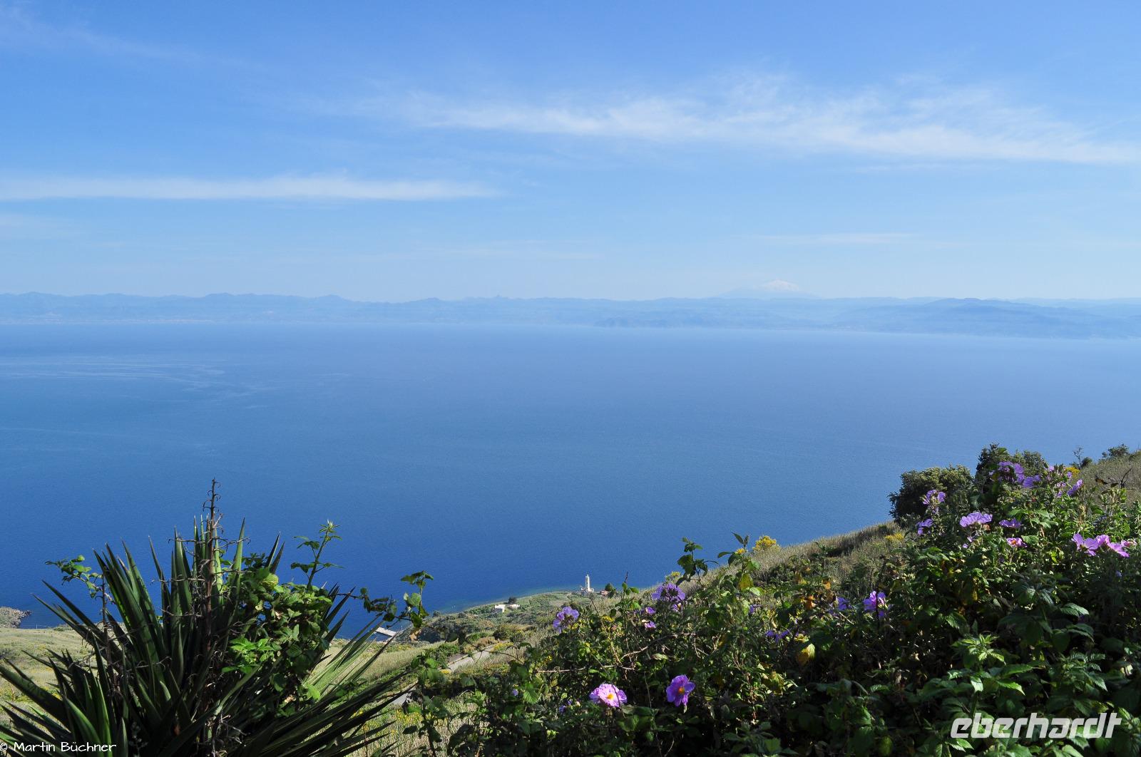 Auch heute haben wir wieder eine fantastische Sicht. Alle Äolischen Inseln sind zu sehen: Alicudi, Filicudi, Salina, Lipari, Panarea, Stromboli und natürlich Vulcano. Nach Süden hin ist auch Sizilien zu sehen und ja sogar der Ätna.