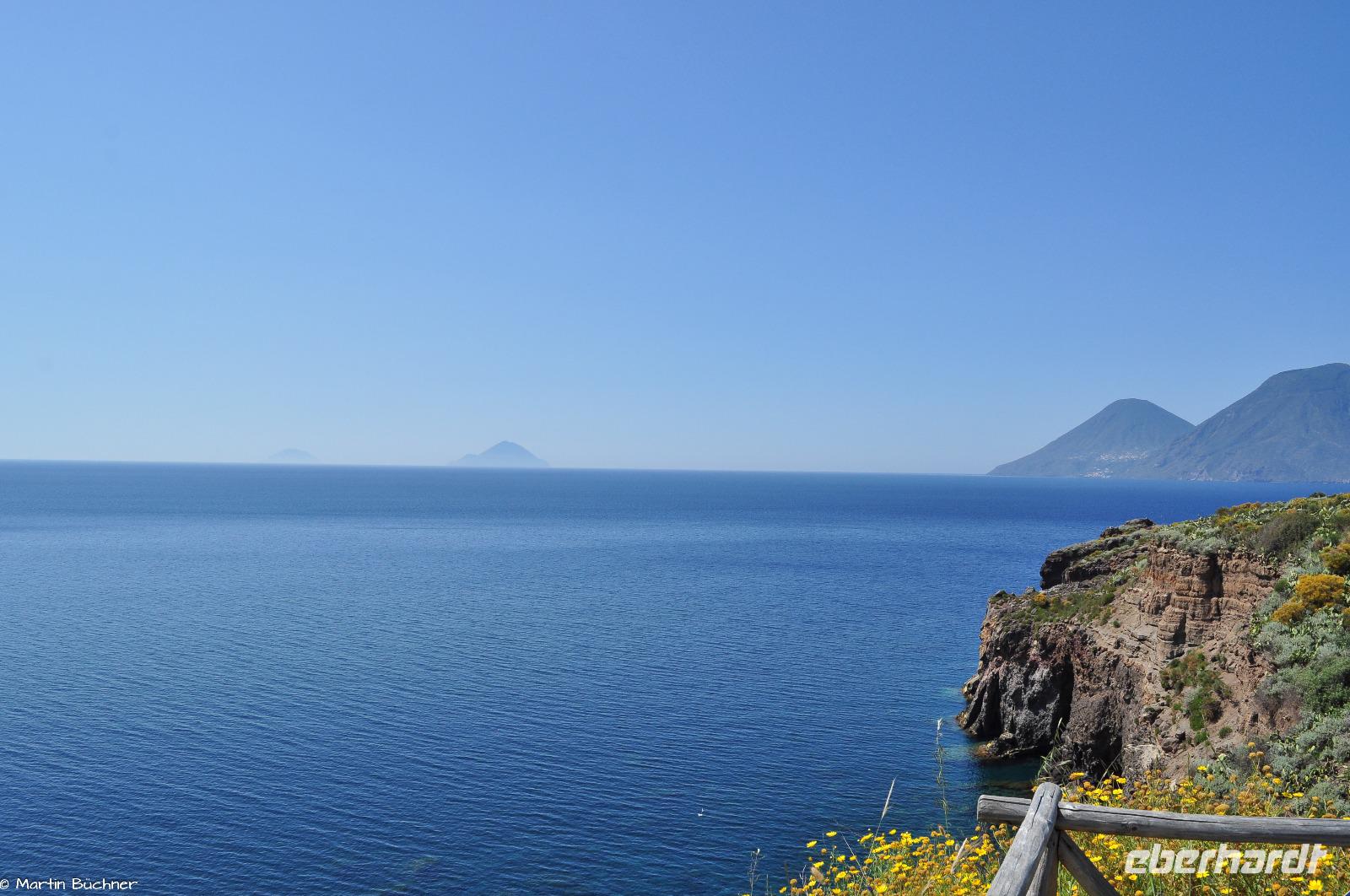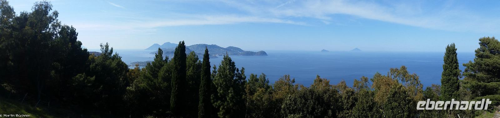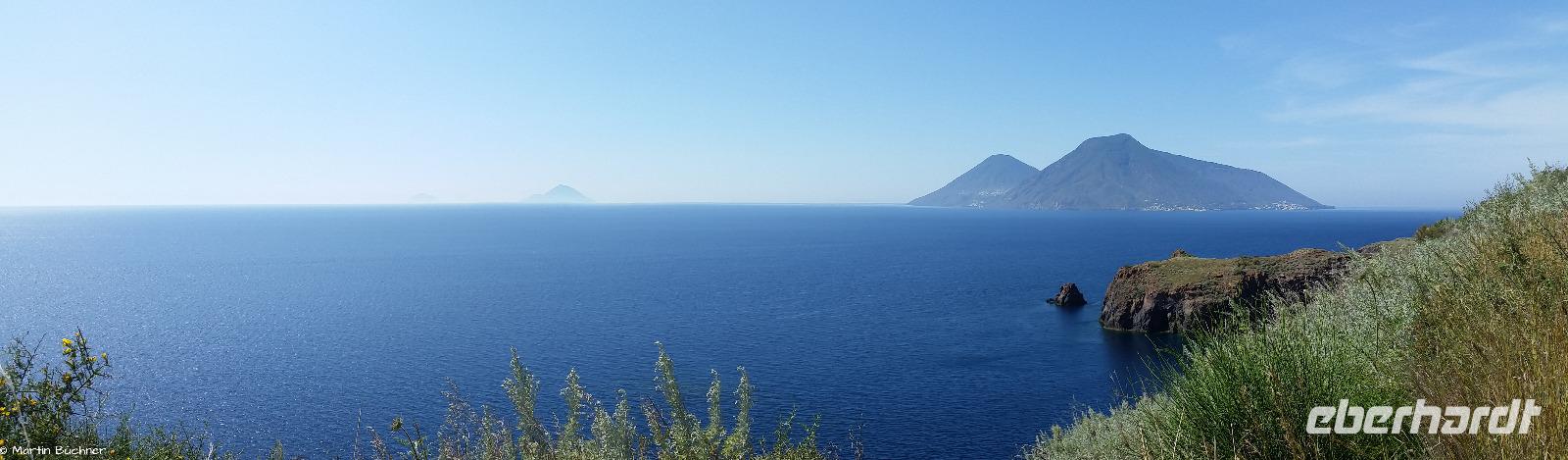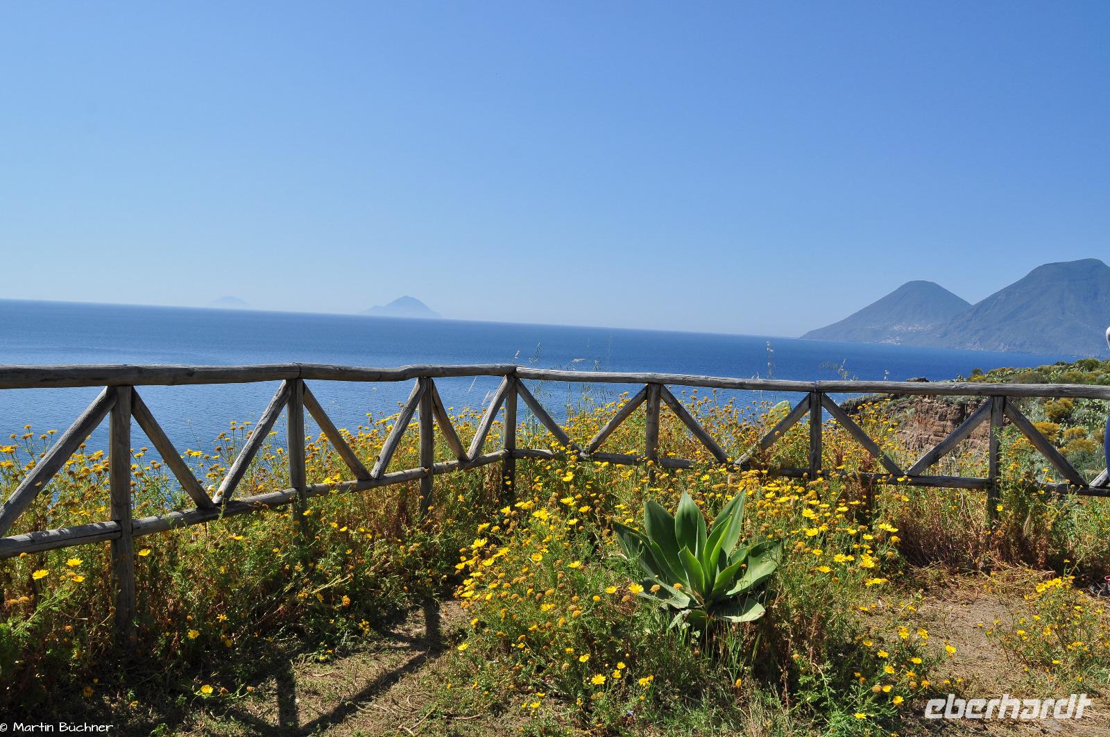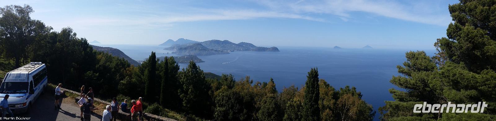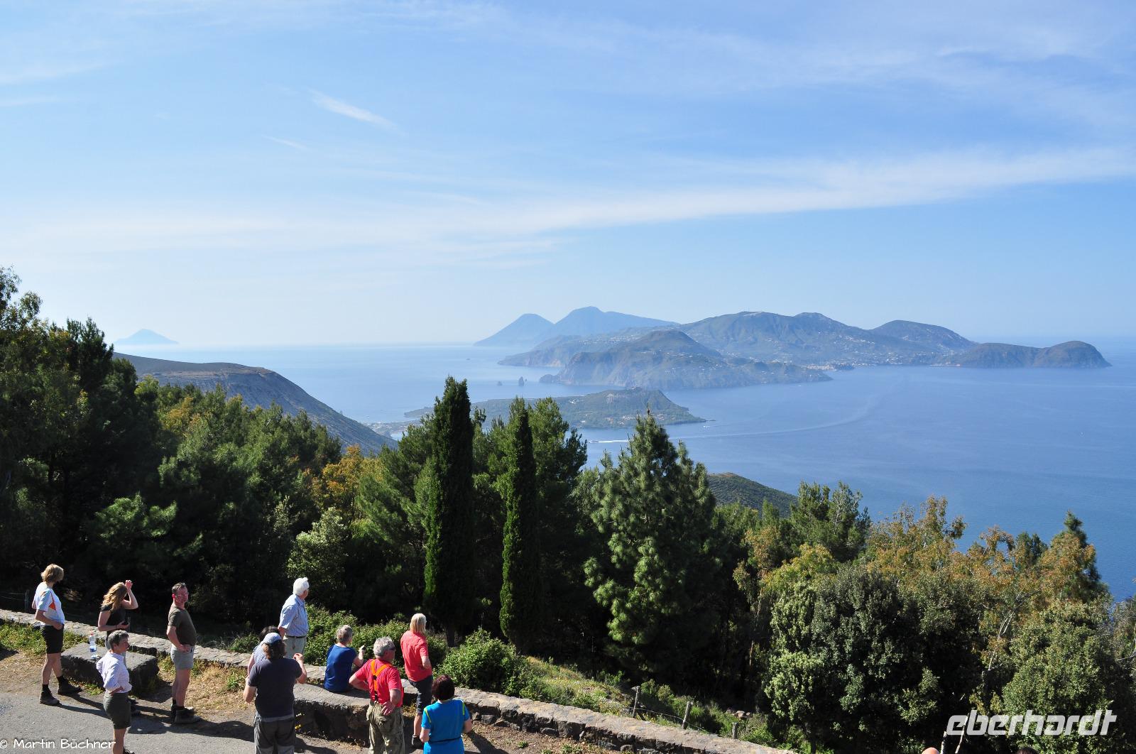 Wir besuchen den Aussichtspunkt Quattropani, von hier erkennt man die Inseln Salina, Panarea und den Stromboli.
