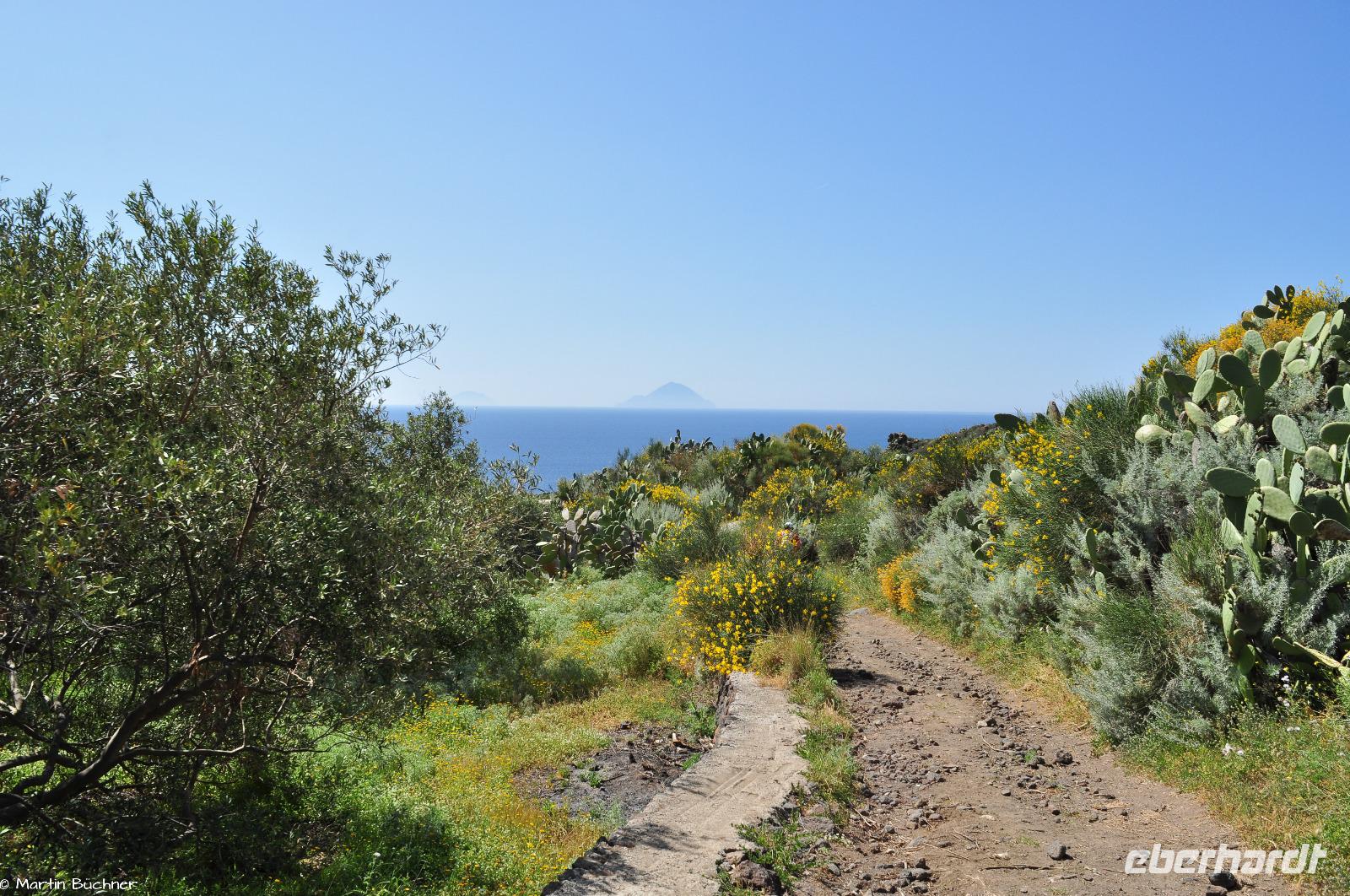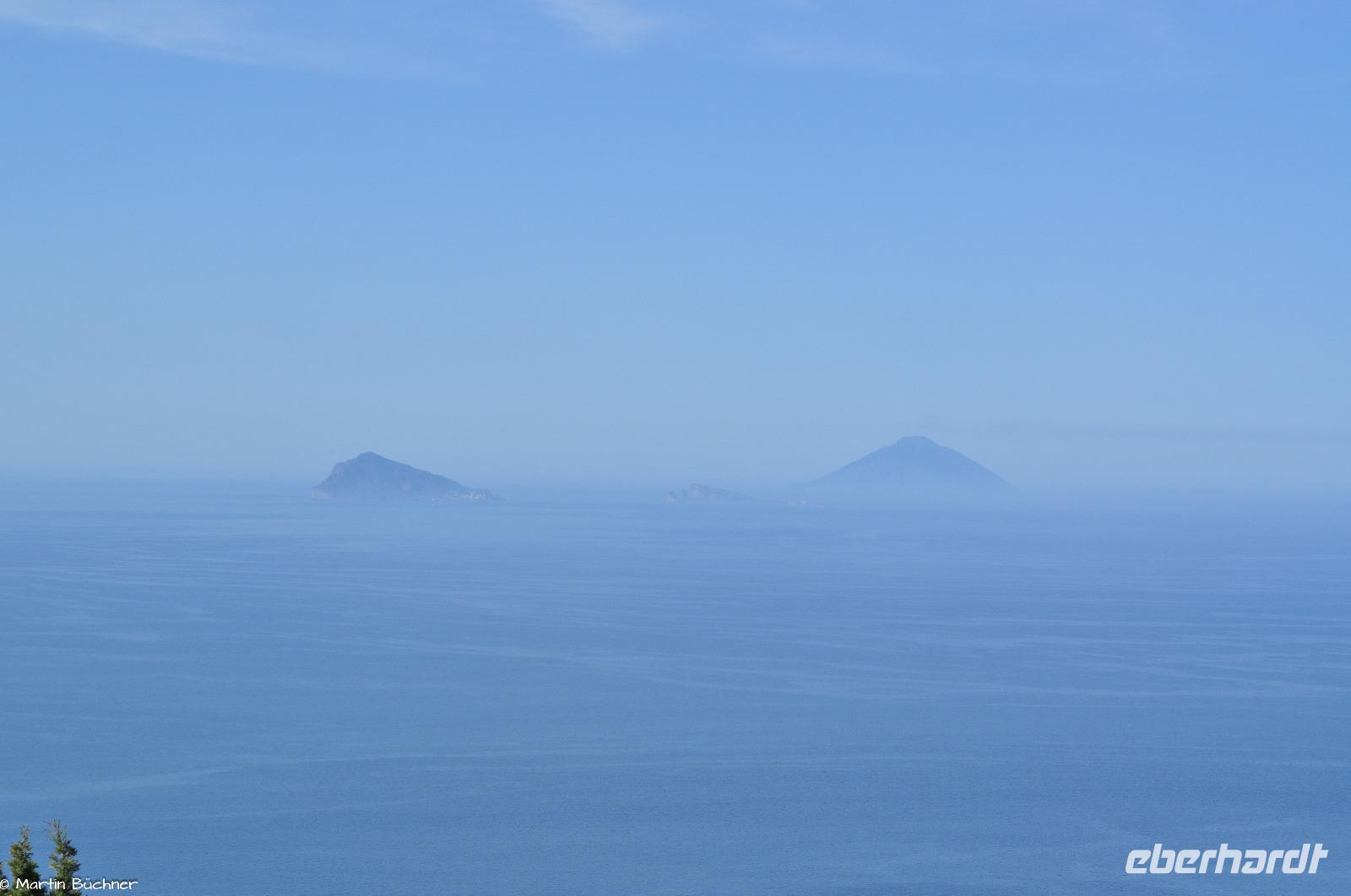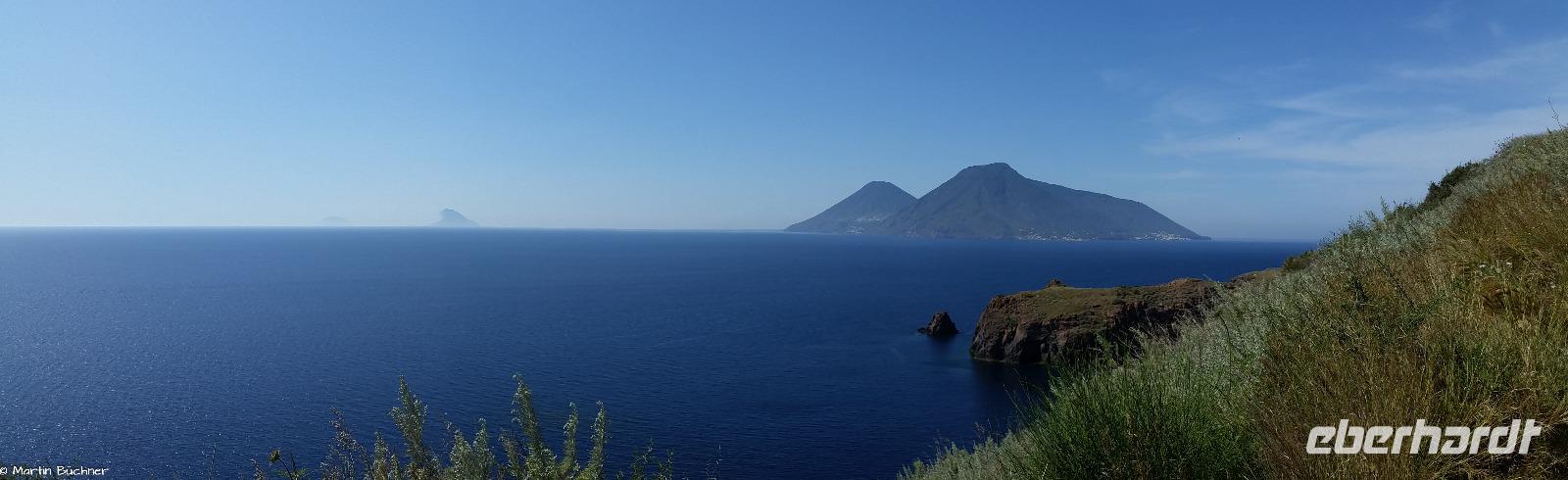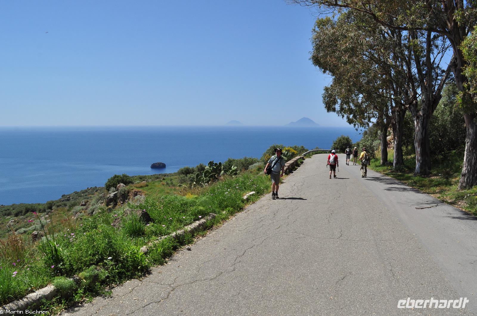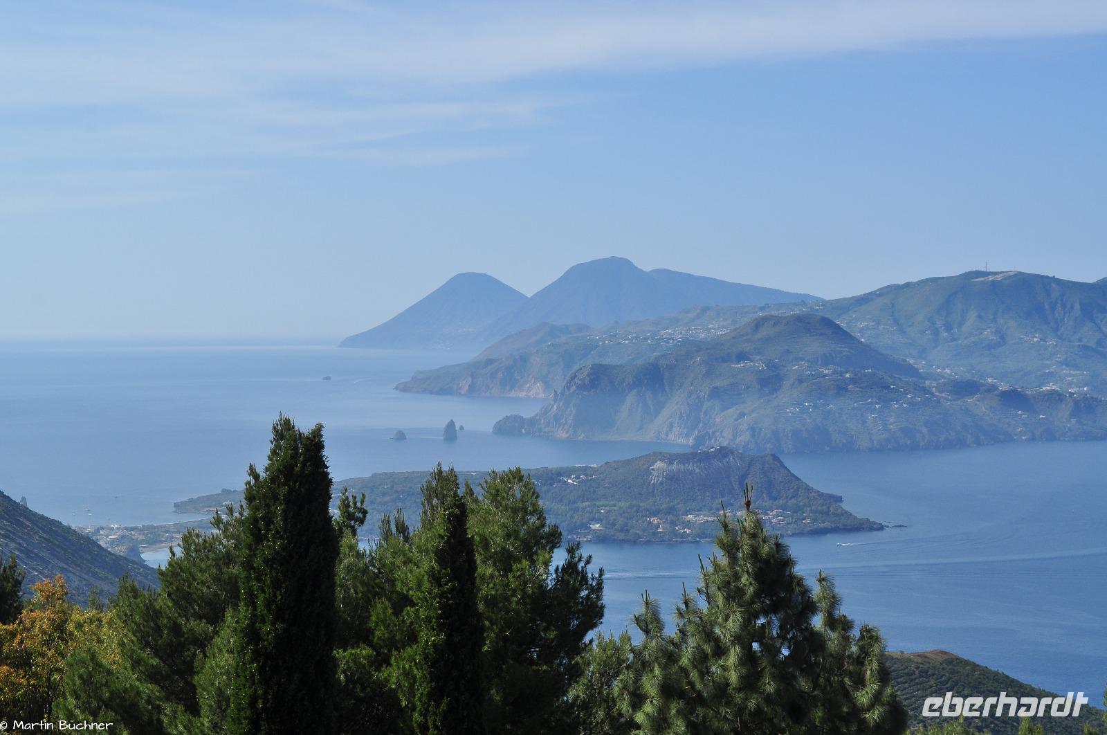 Wir besuchen den Aussichtspunkt Quattropani, von hier erkennt man die Inseln Salina, Panarea und den Stromboli.