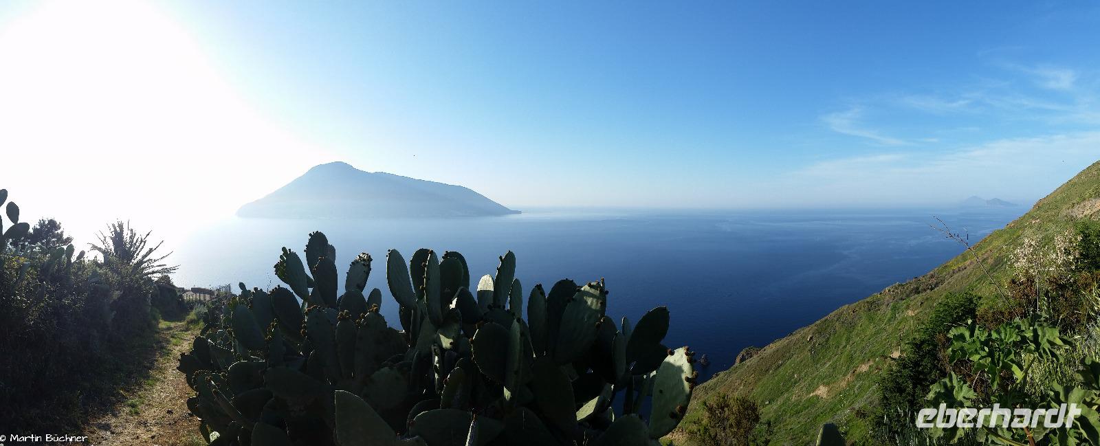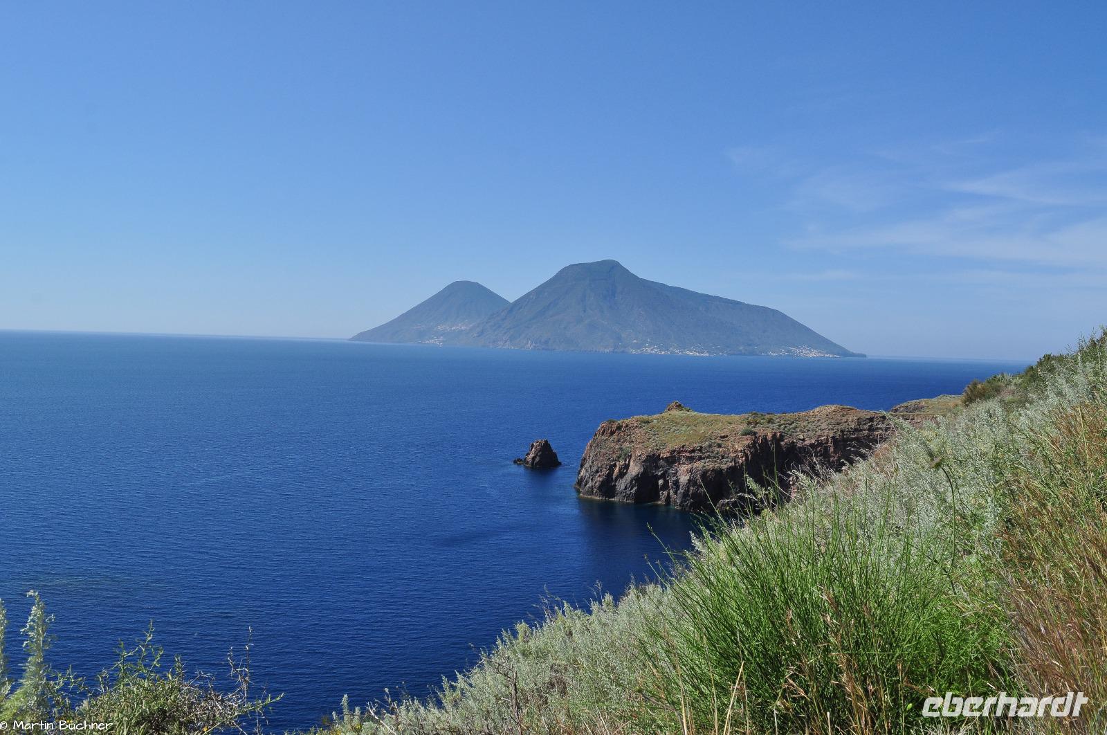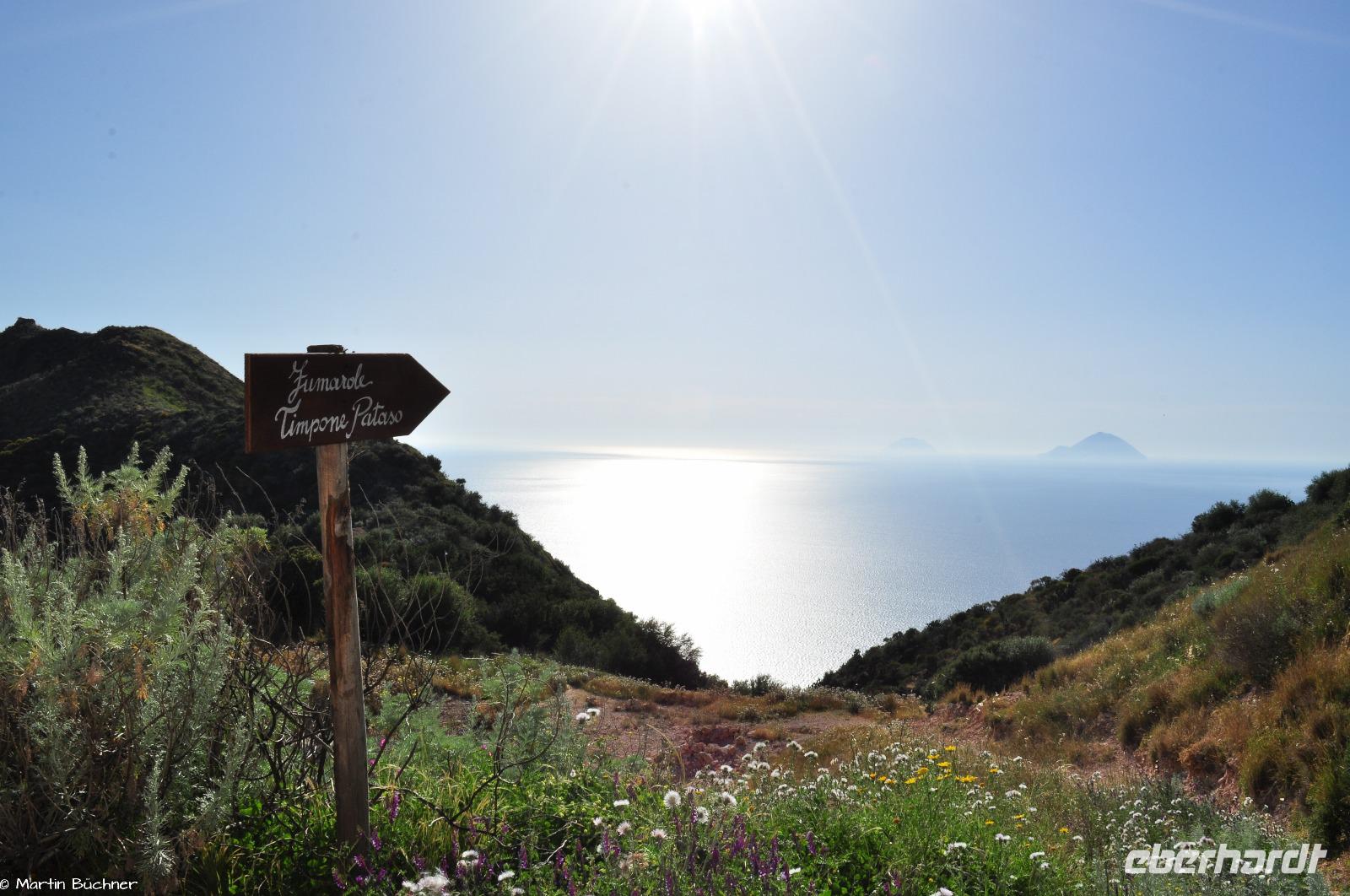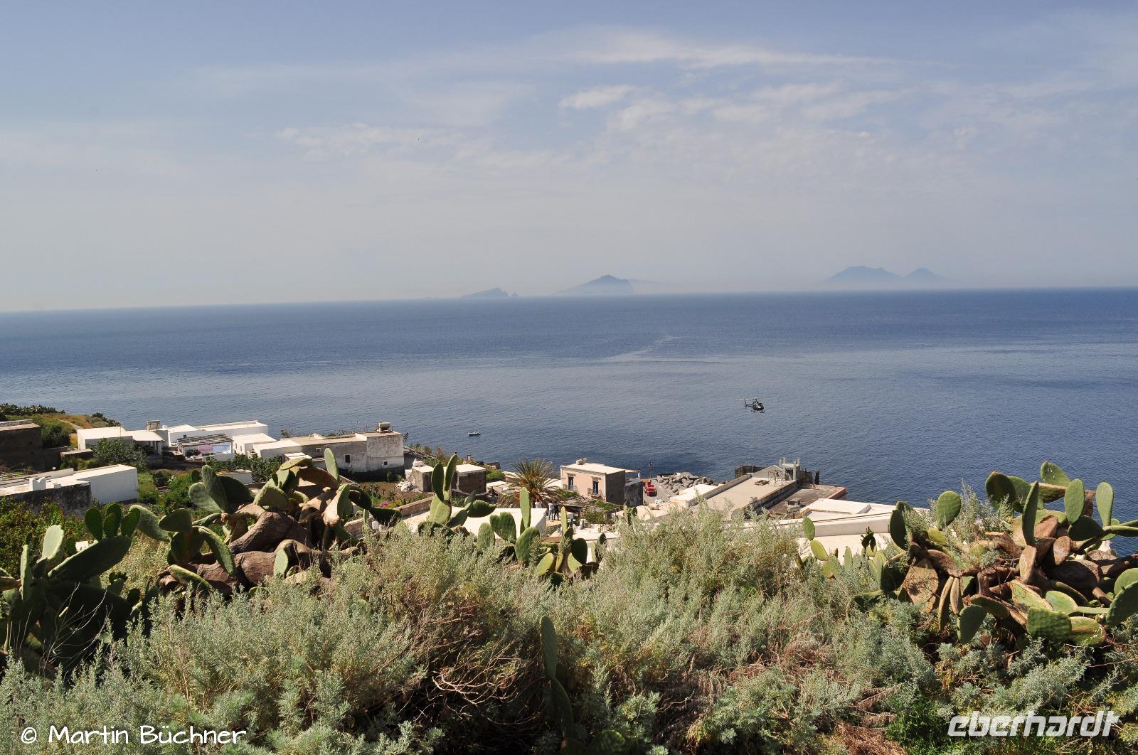 Wir besuchen den Aussichtspunkt Quattropani, von hier erkennt man die Inseln Salina, Panarea und den Stromboli.