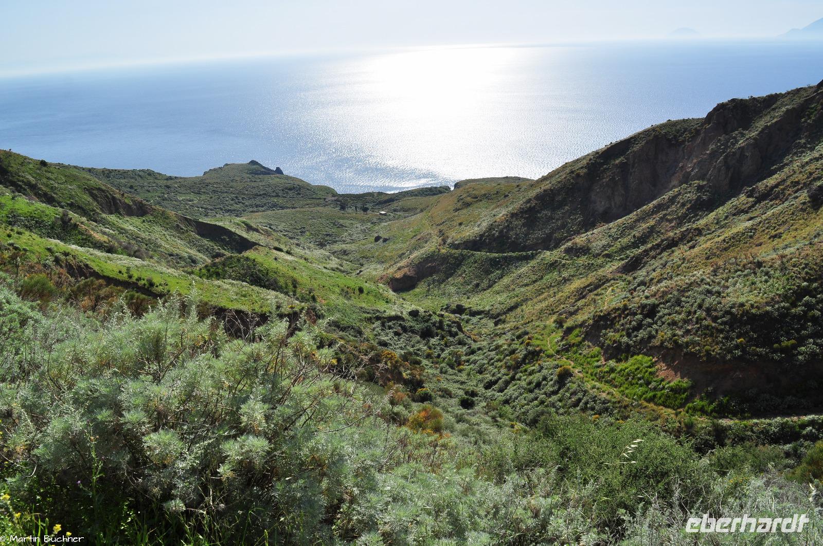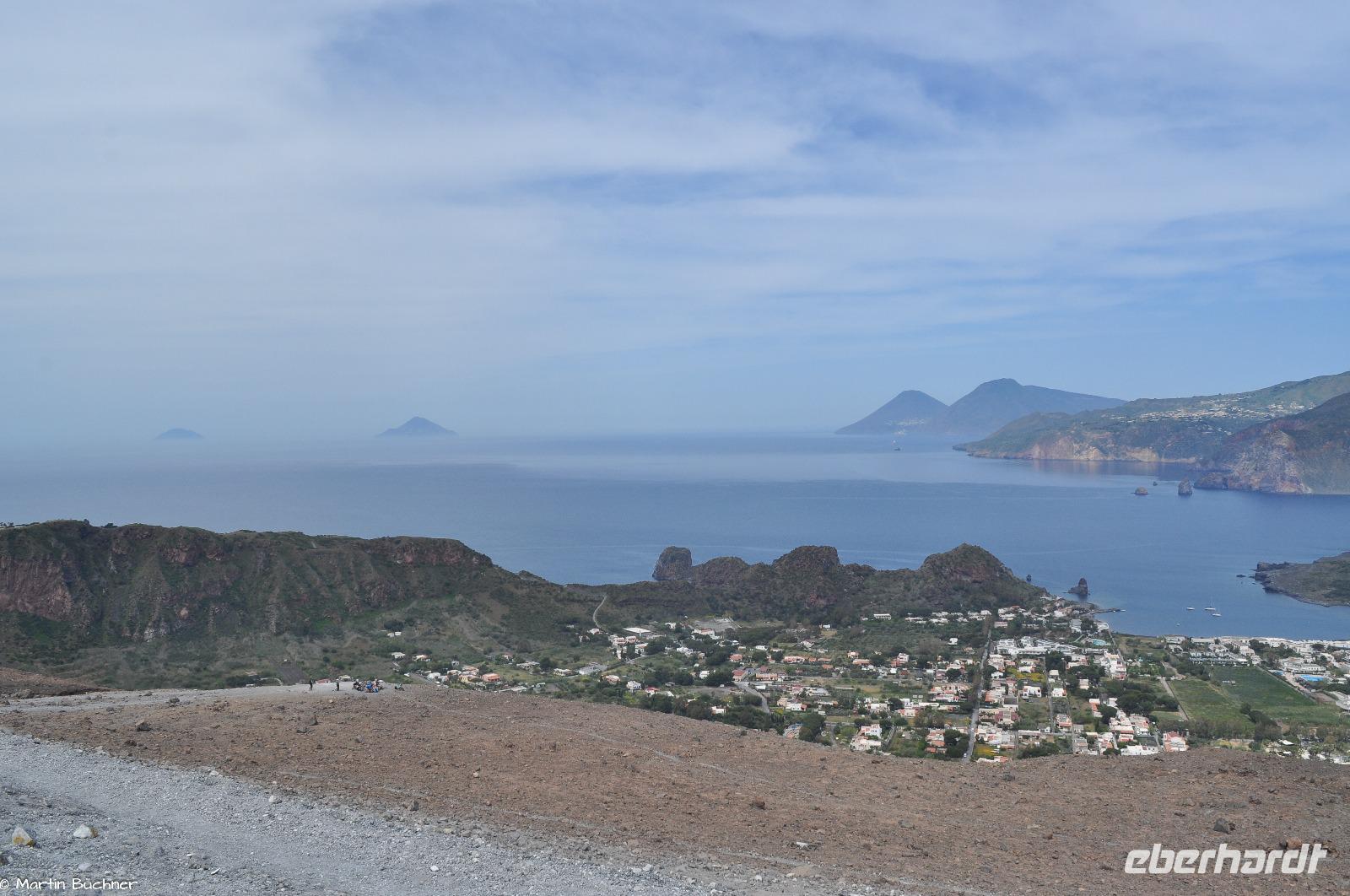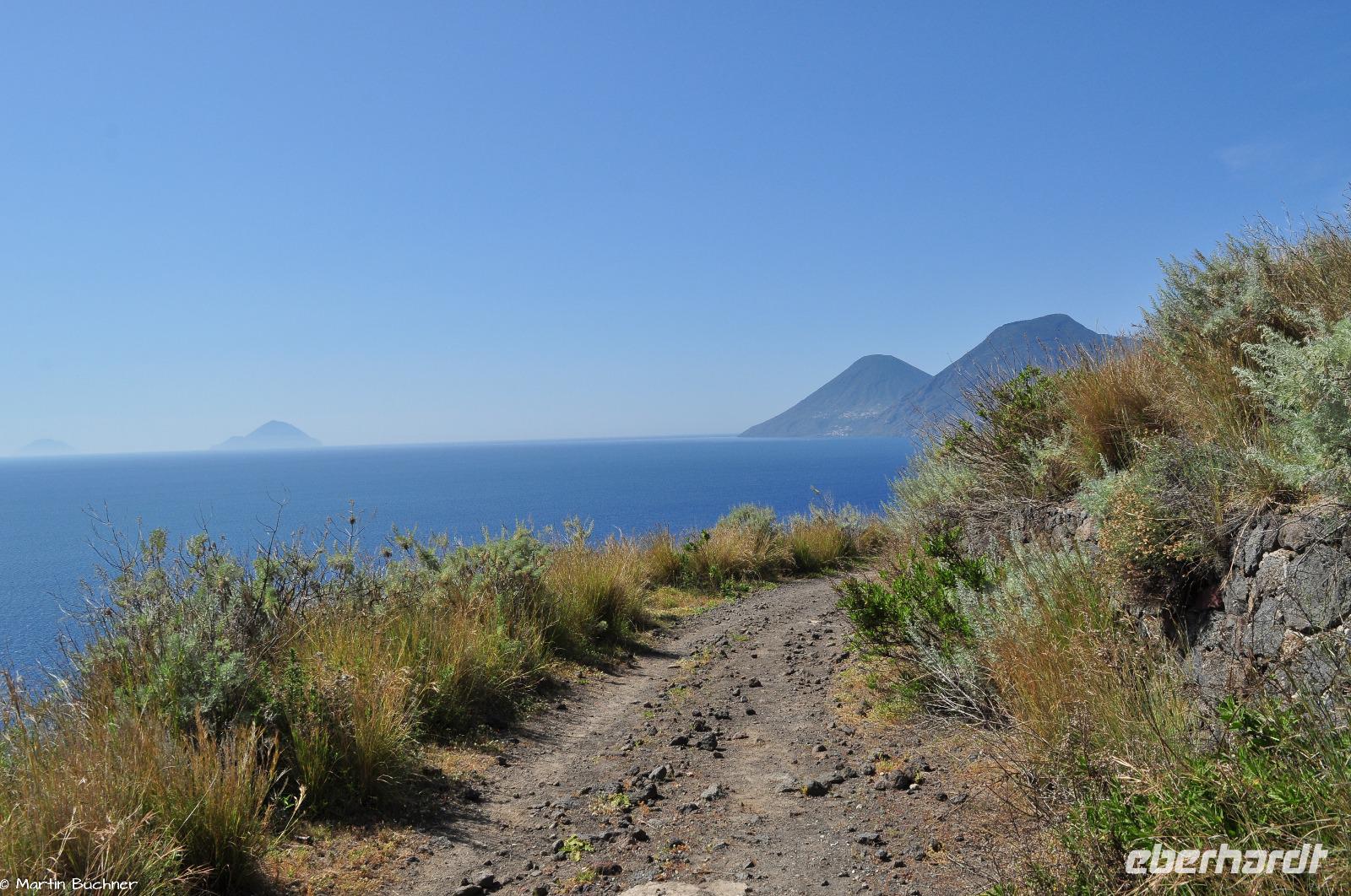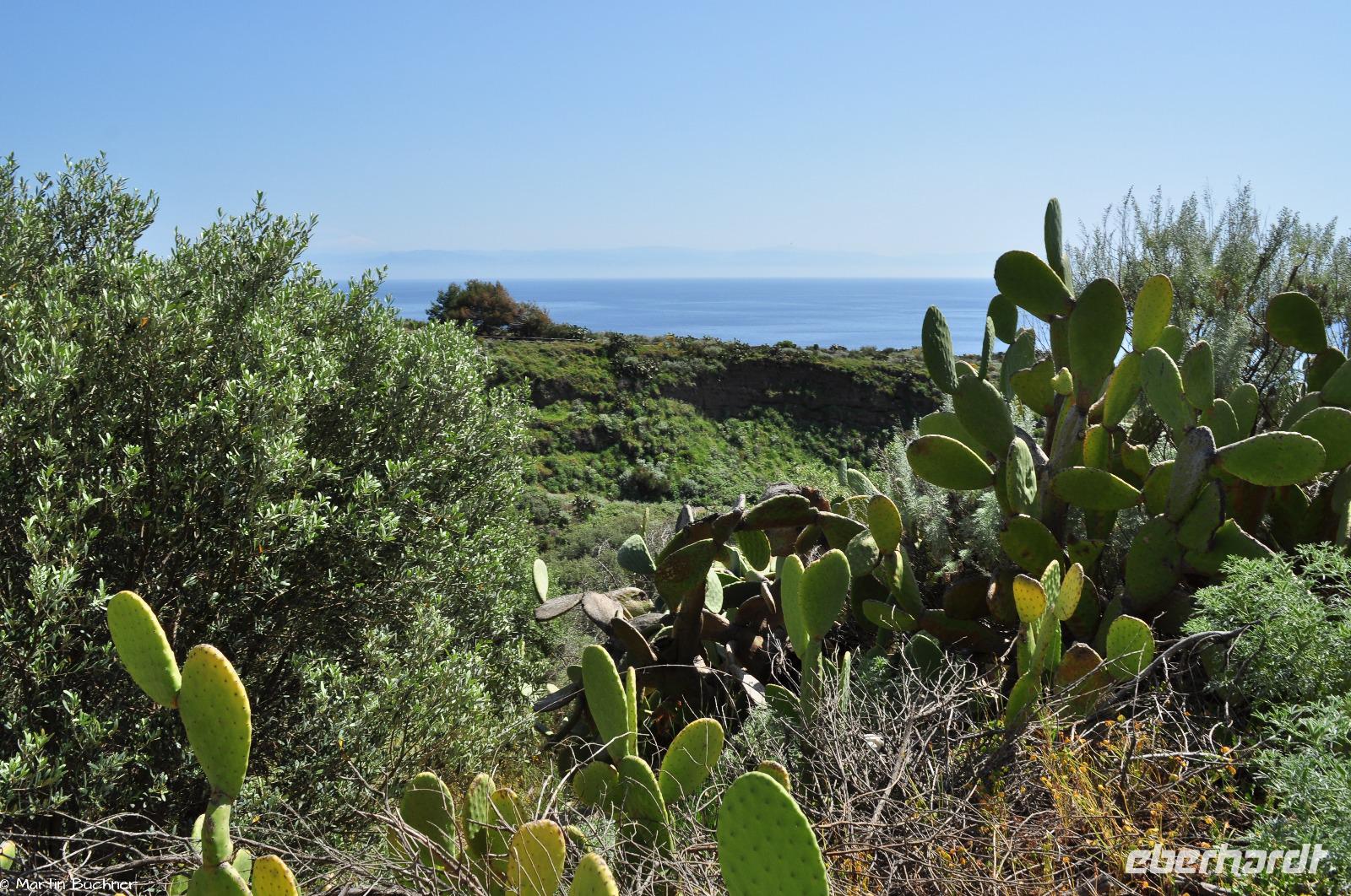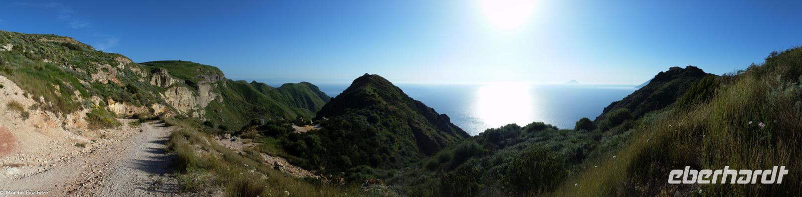 Wir besuchen den Aussichtspunkt Quattropani, von hier erkennt man die Inseln Salina, Panarea und den Stromboli.