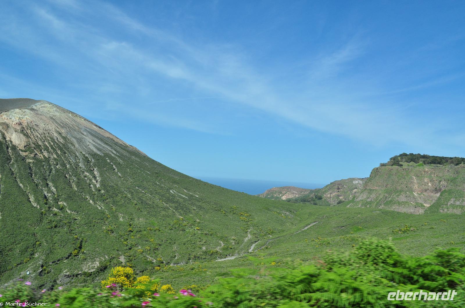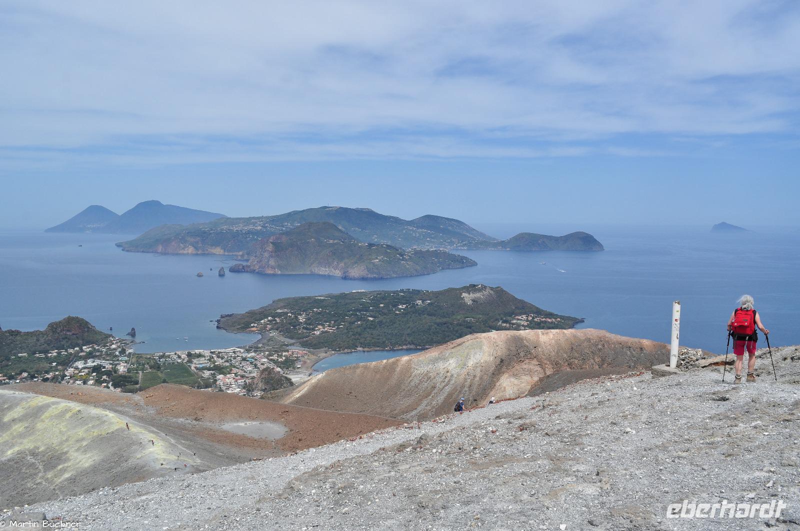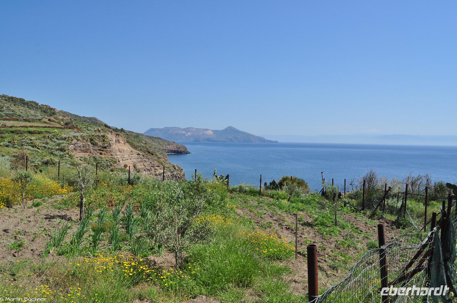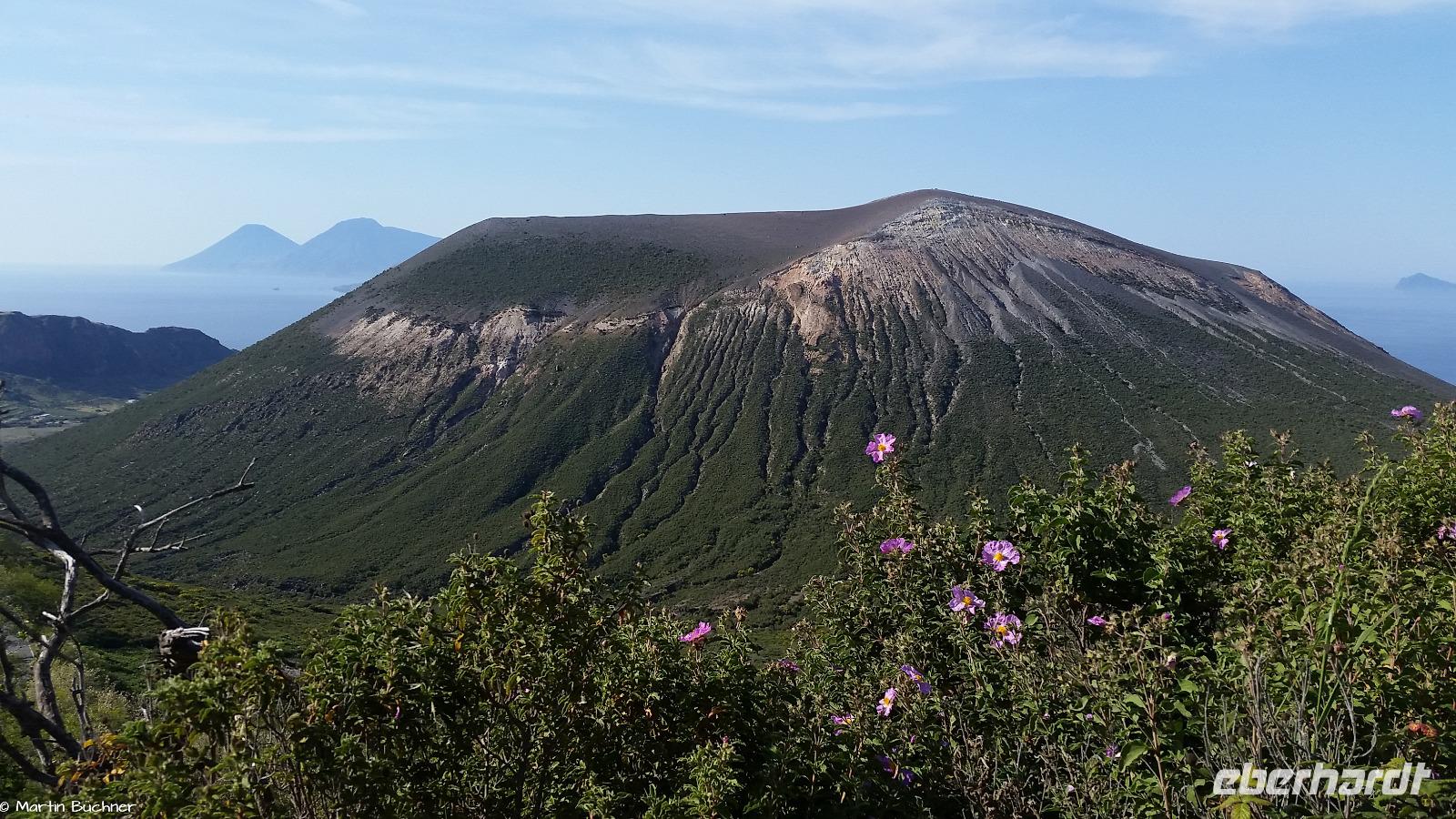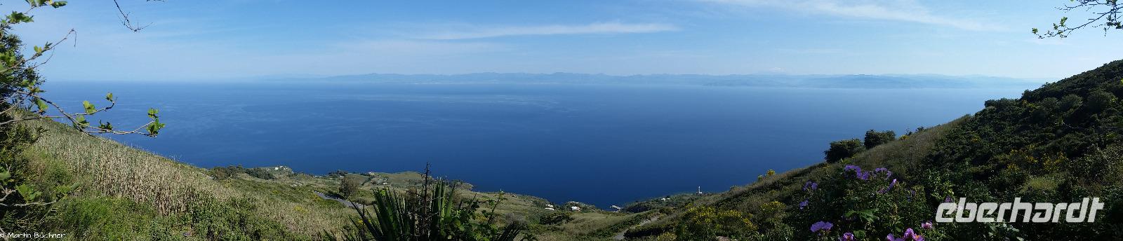 Wir besuchen den Aussichtspunkt Quattropani, von hier erkennt man die Inseln Salina, Panarea und den Stromboli.
