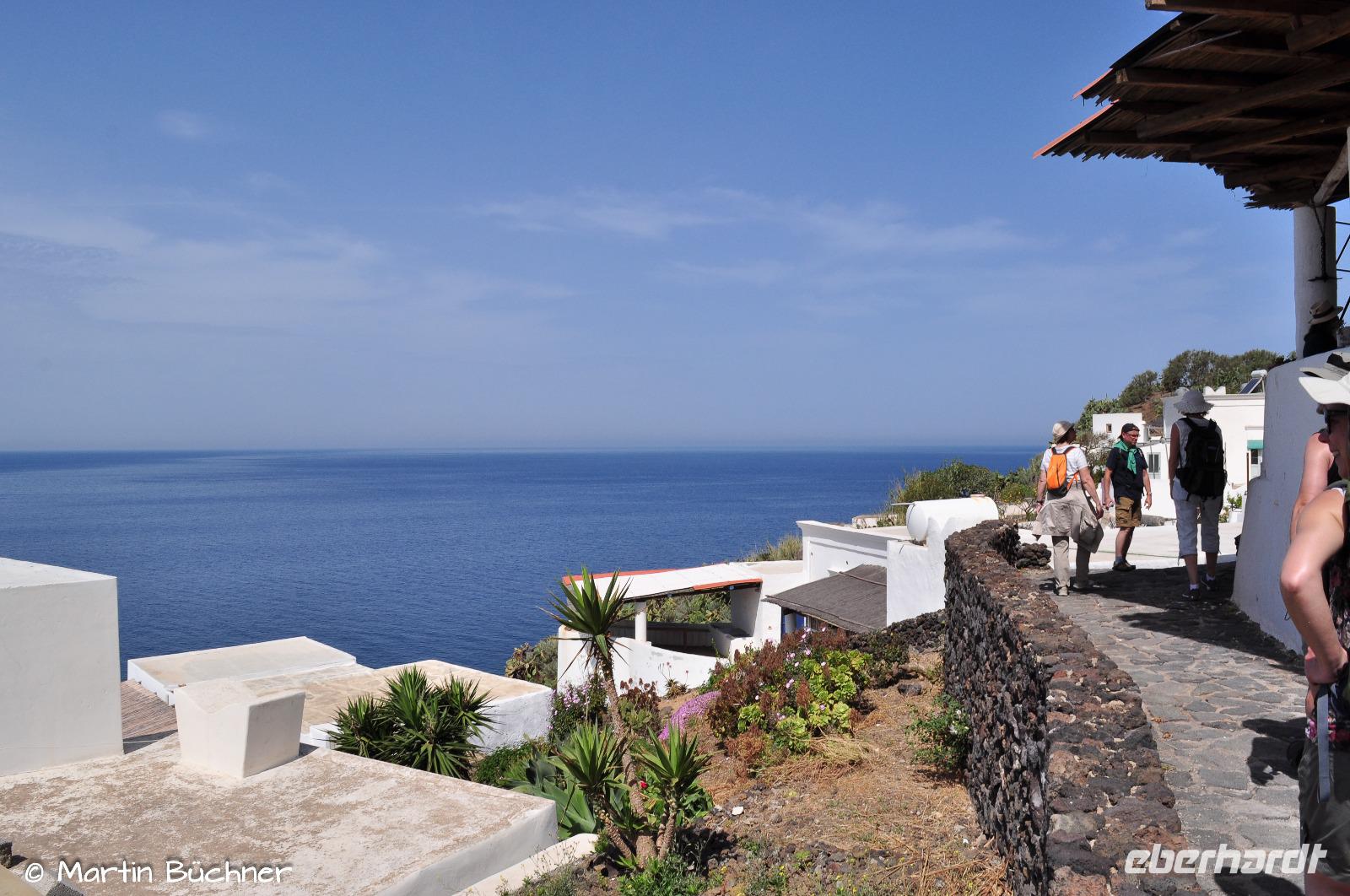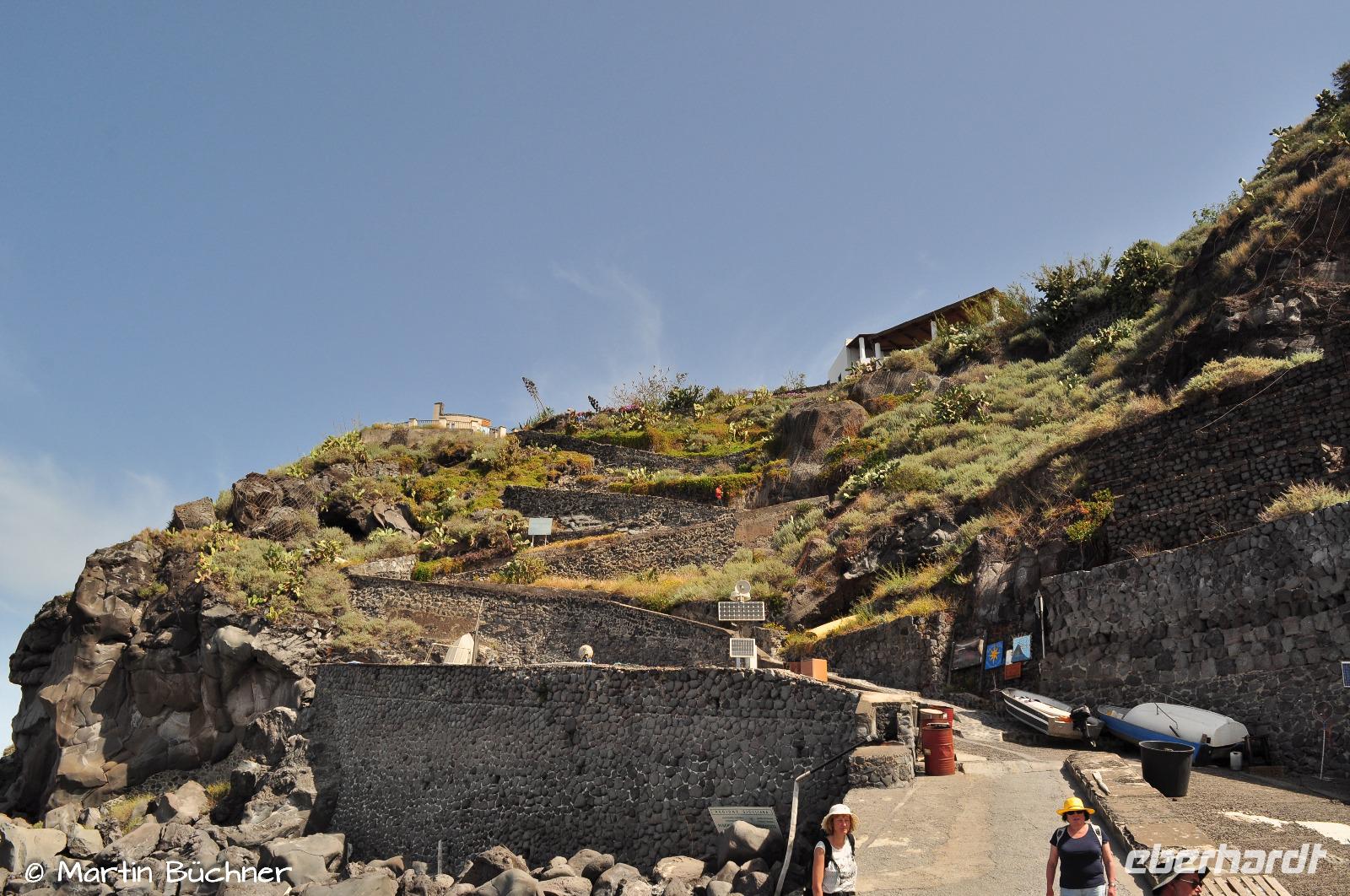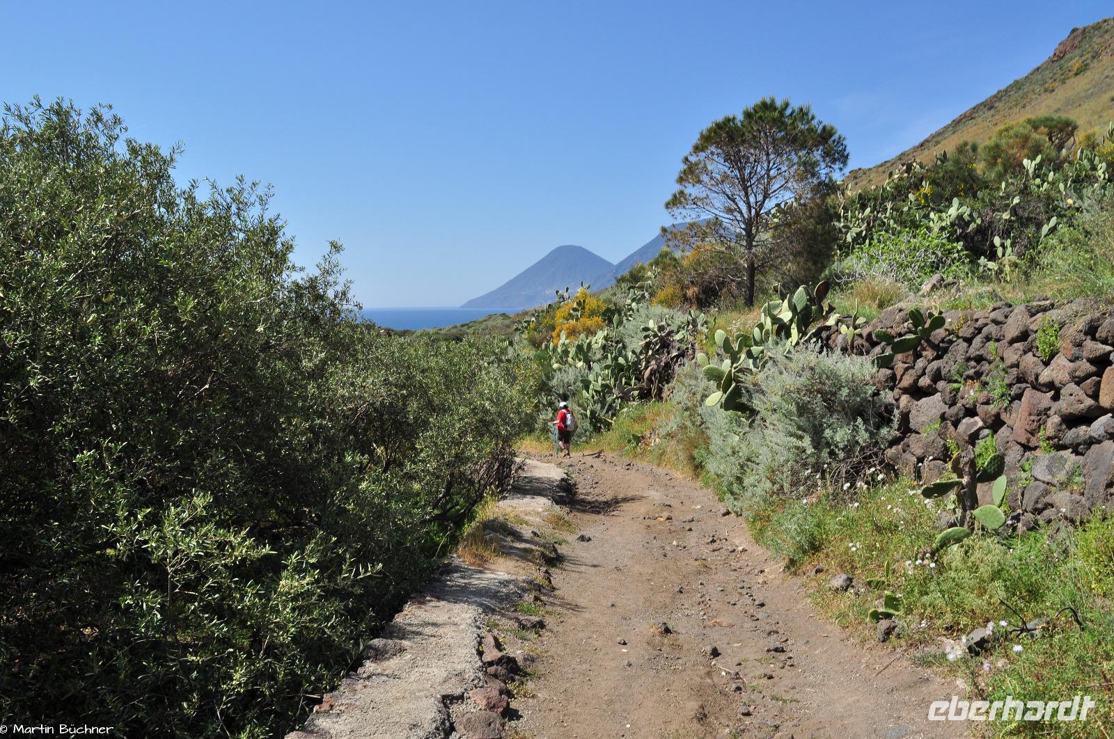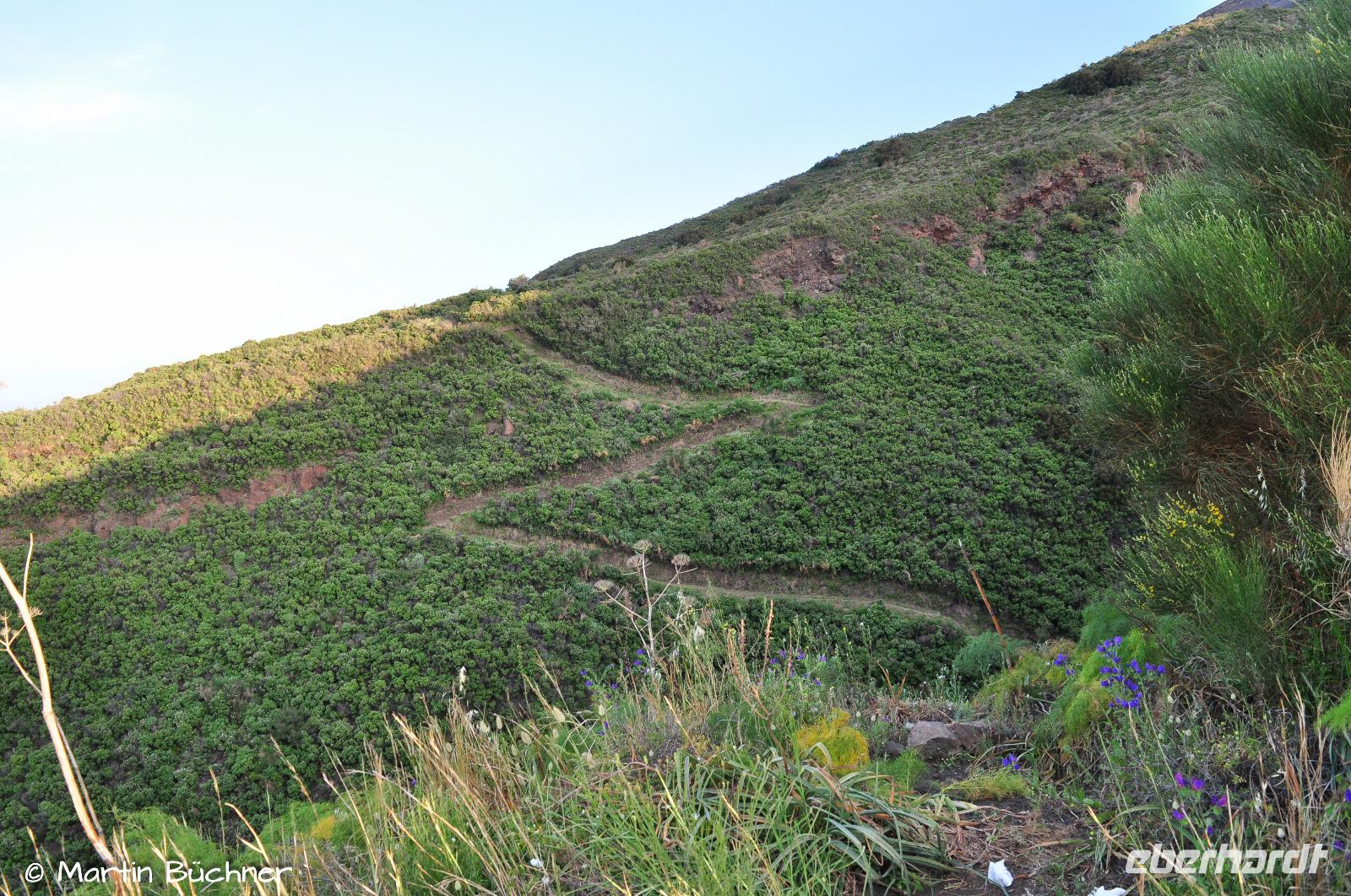 Wir starten im Ort und folgen dem Beginn unseres morgigen Aufstiegs. Auf etwa 300m Höhe biegen wir ab in Richtung Sciara del Fuoco. Wir bleiben nahezu auf gleicher Höhe und folgen dem Panoramaweg.