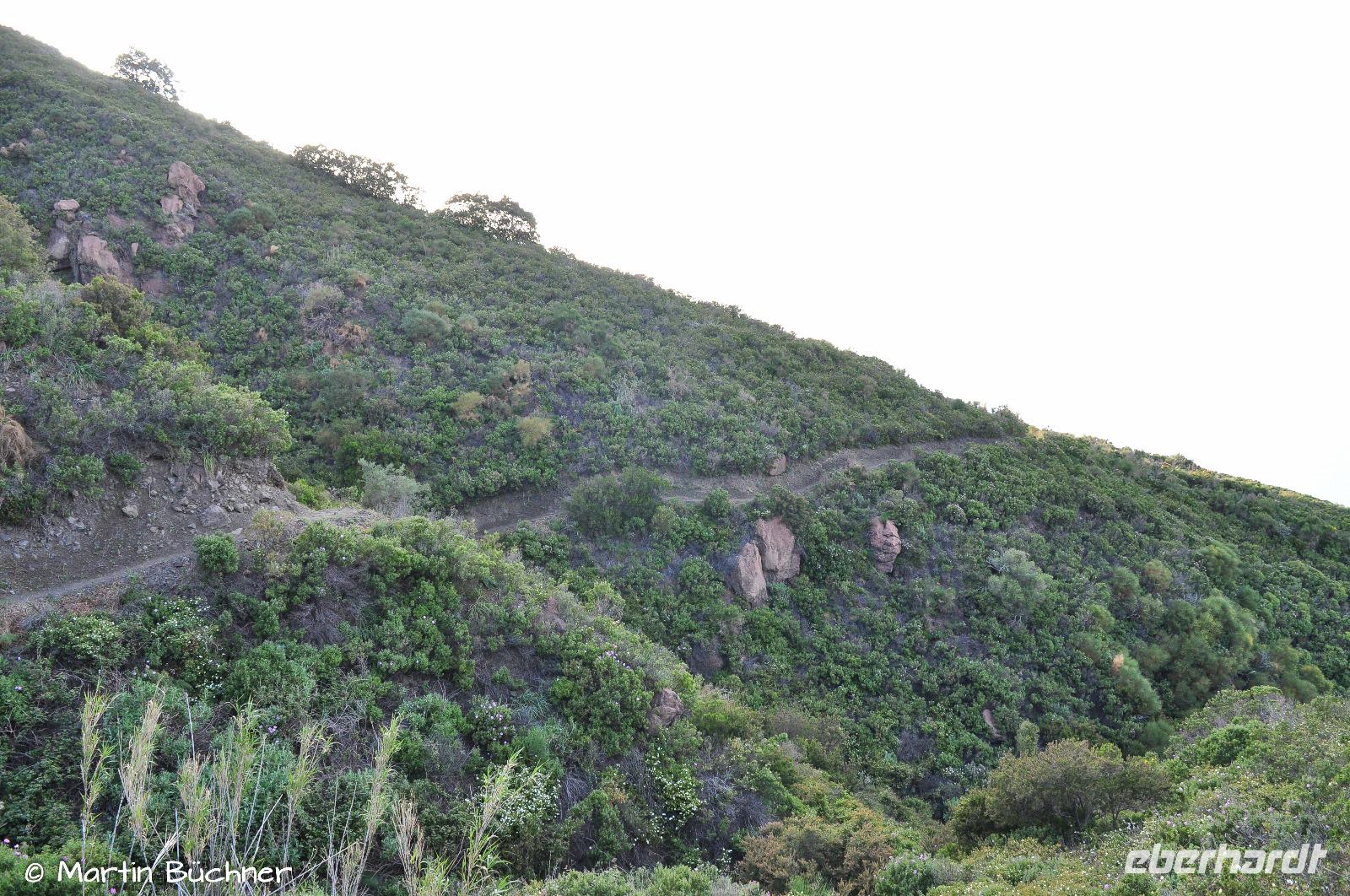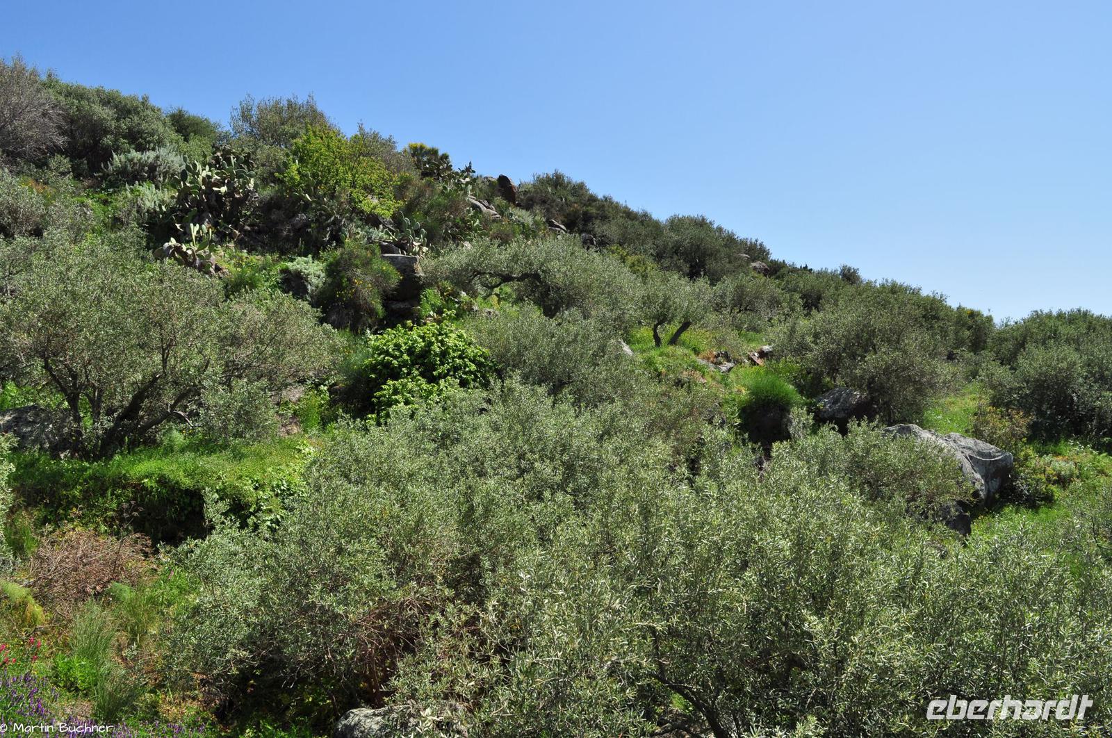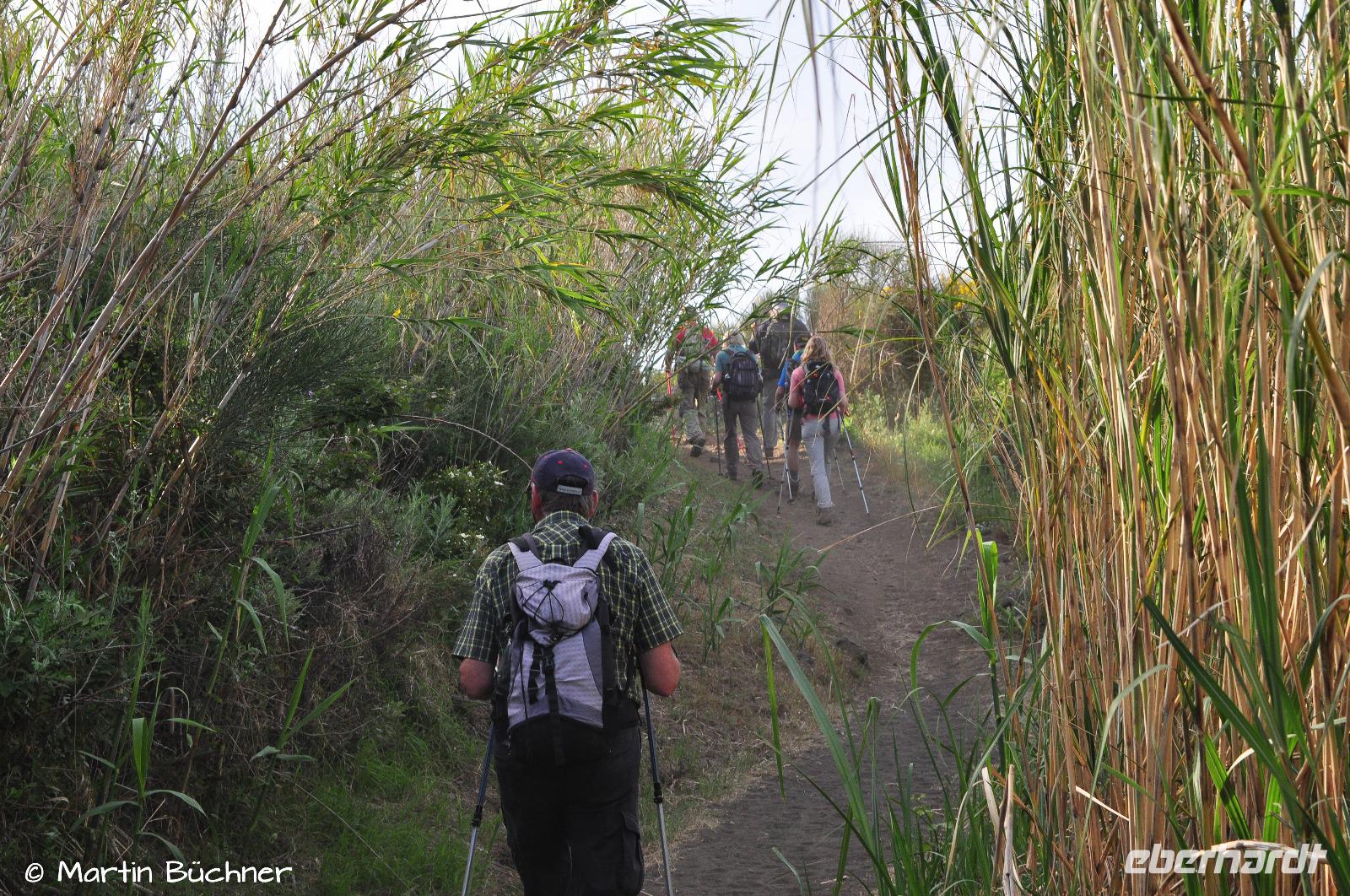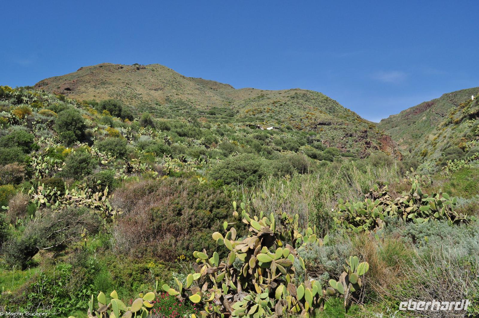 Wir starten im Ort und folgen dem Beginn unseres morgigen Aufstiegs. Auf etwa 300m Höhe biegen wir ab in Richtung Sciara del Fuoco. Wir bleiben nahezu auf gleicher Höhe und folgen dem Panoramaweg.