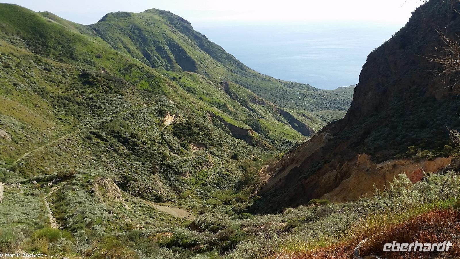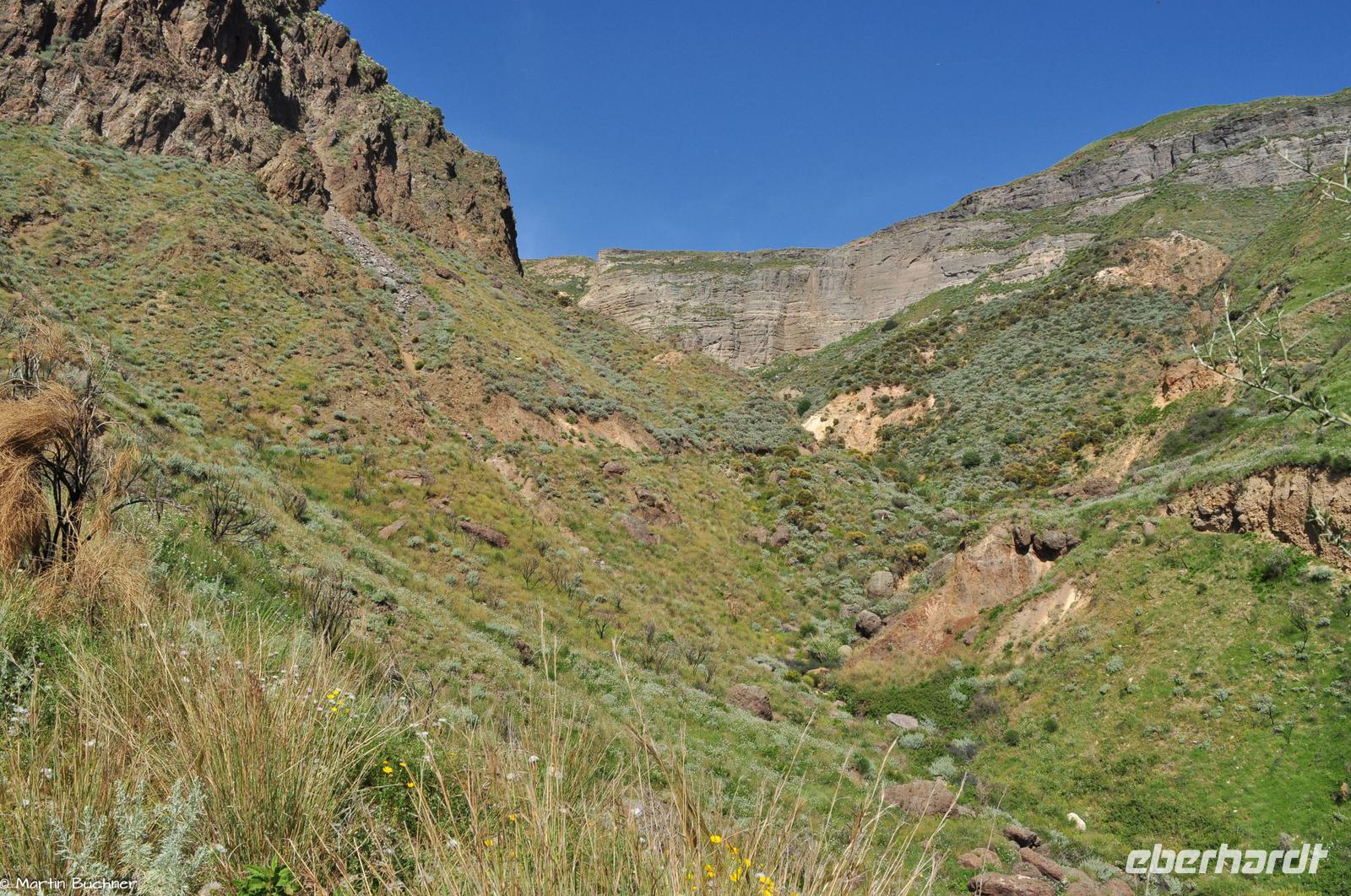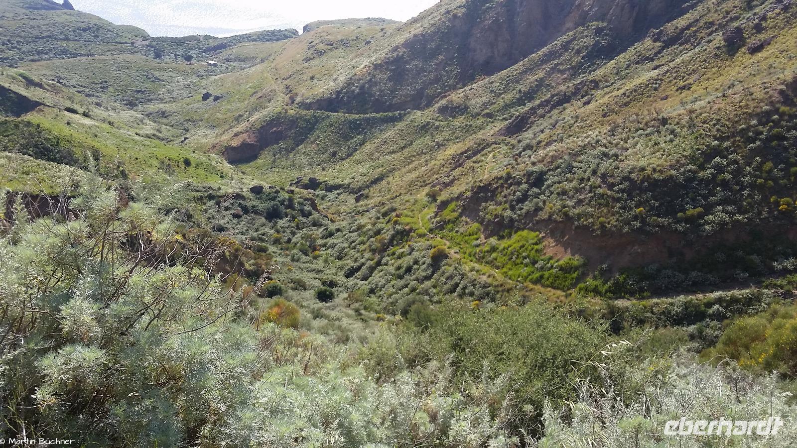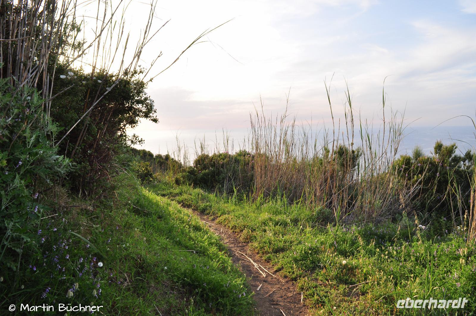 Wir starten im Ort und folgen dem Beginn unseres morgigen Aufstiegs. Auf etwa 300m Höhe biegen wir ab in Richtung Sciara del Fuoco. Wir bleiben nahezu auf gleicher Höhe und folgen dem Panoramaweg.