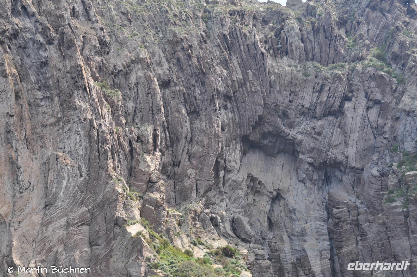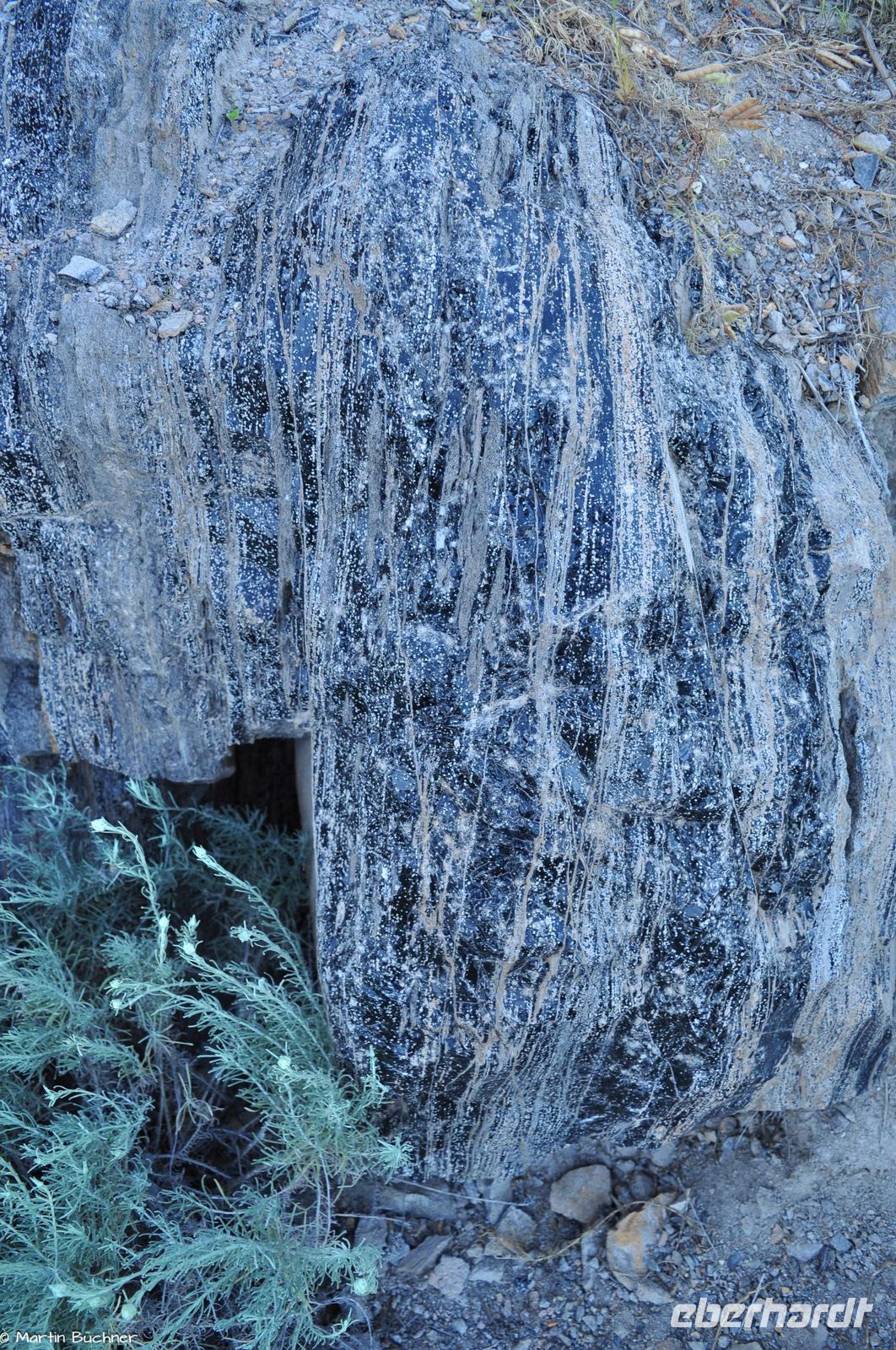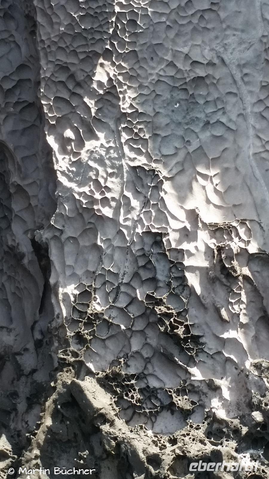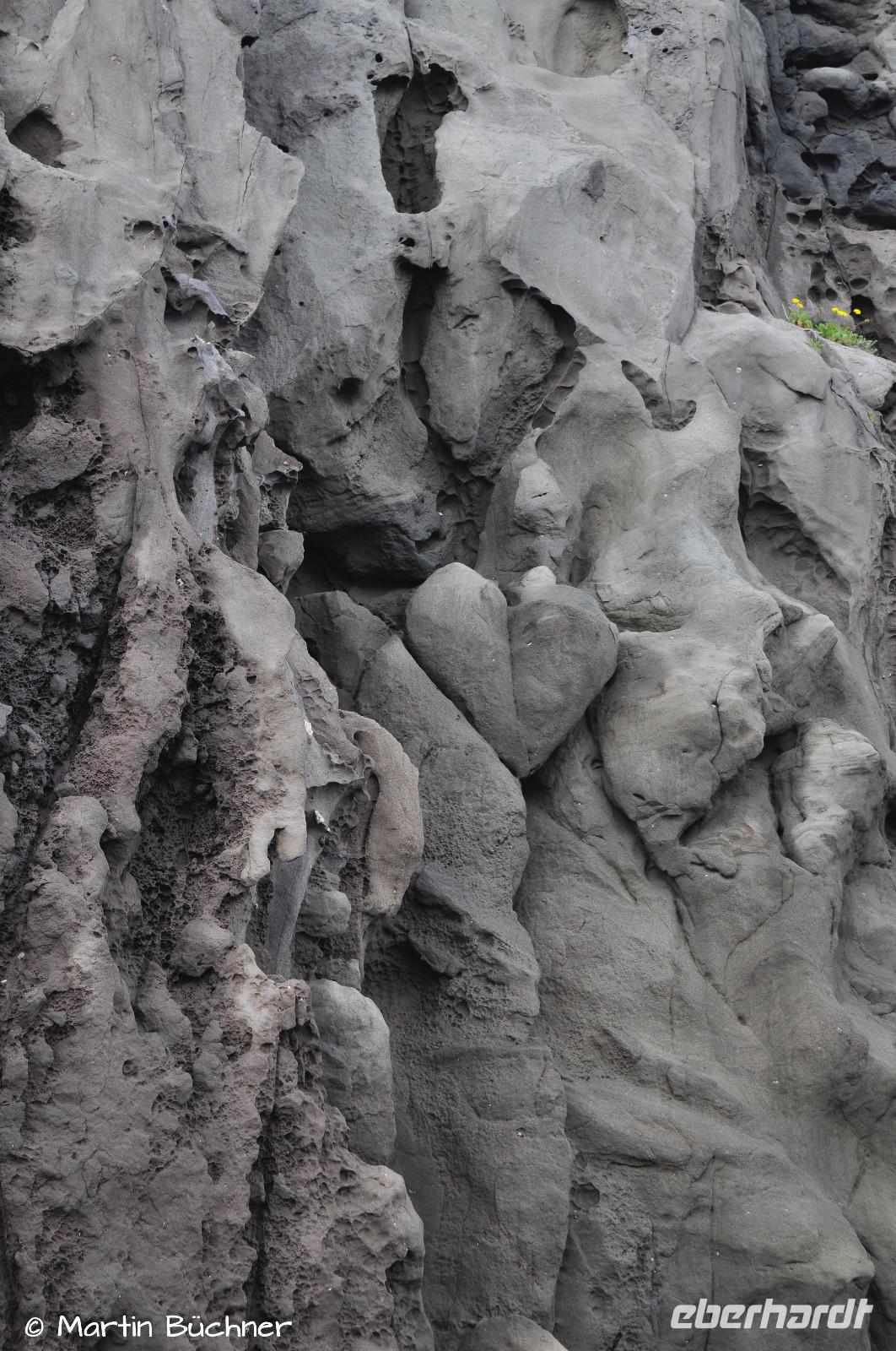Unsere Rundfahrt führt uns vorbei an den riesigen Bimsvorkommen, die noch bis vor wenigen Jahren kommerziell abgebaut wurden und an Obsidian Aufschlüssen. Es ist ein Kuriosum der leichte Bimsstein, hell und so leicht (geringe Dichte), porös, dass er als einziges Gestein auf dem Wasser schwimmen kann und andererseits Obsidian, schwarz wie die Nacht, hohe Dichte, hohes Gewicht, scharf kantig sind chemisch exakt das Gleiche und doch grundverschieden. Wo Bims vorkommt, ist Obsidian nie weit.