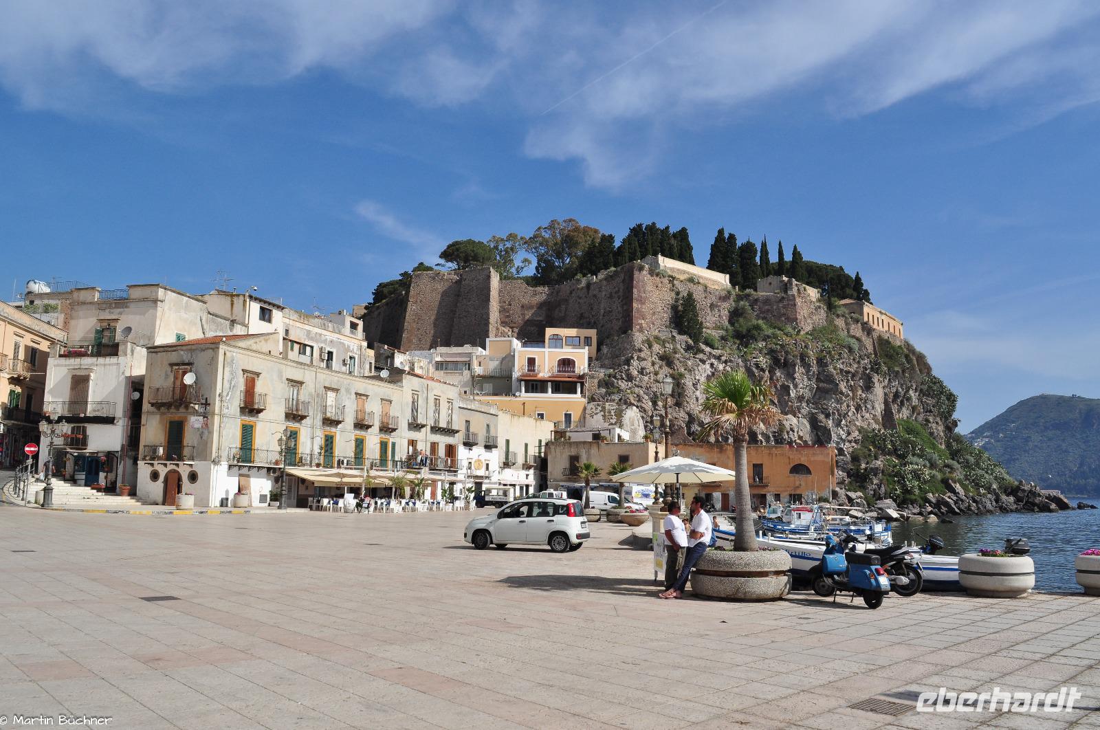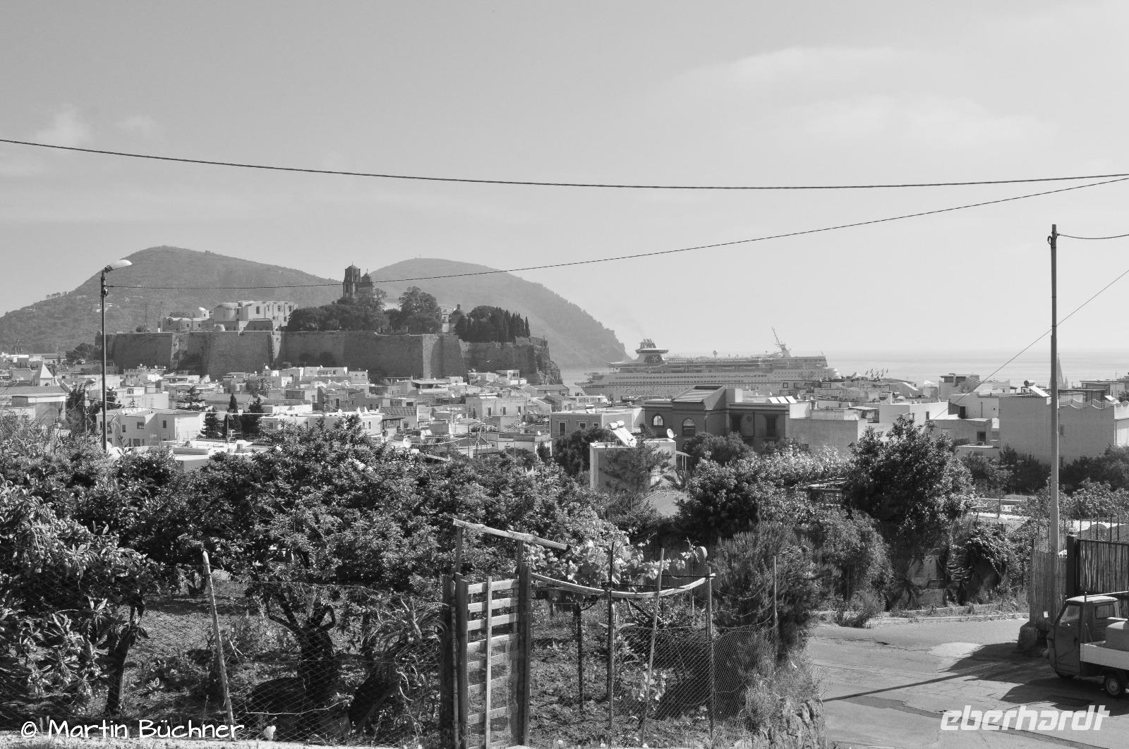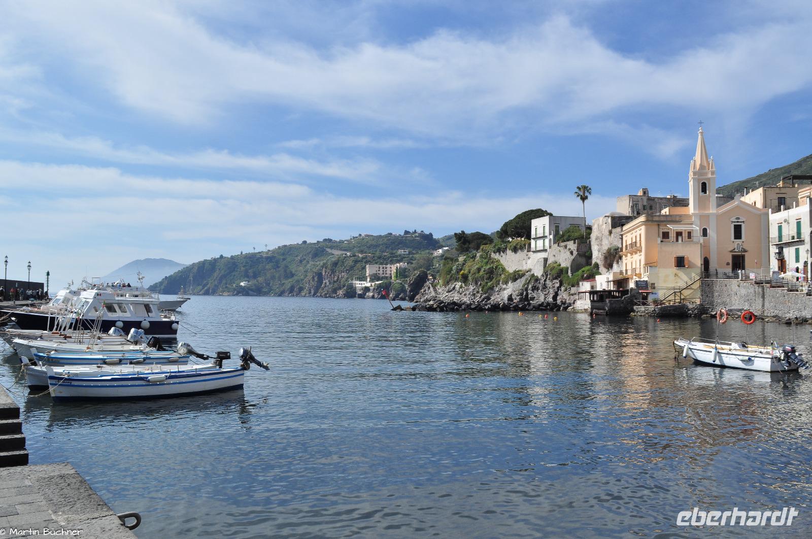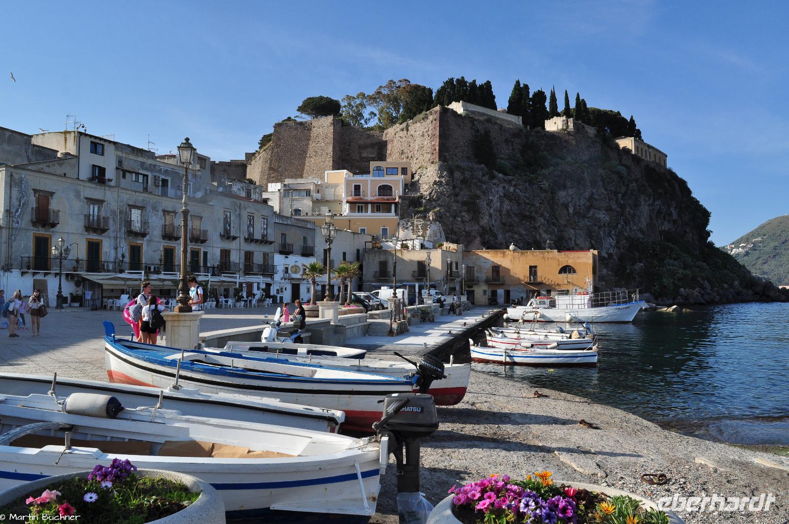Wir erreichen die Marina Corta auf Lipari. Auf dem Weg schlendern wir noch ein wenig durch die Stadt, natürlich weiß bald jeder, der uns begegnet, dass wir heute auf Vulcano waren (Schwefelduft).