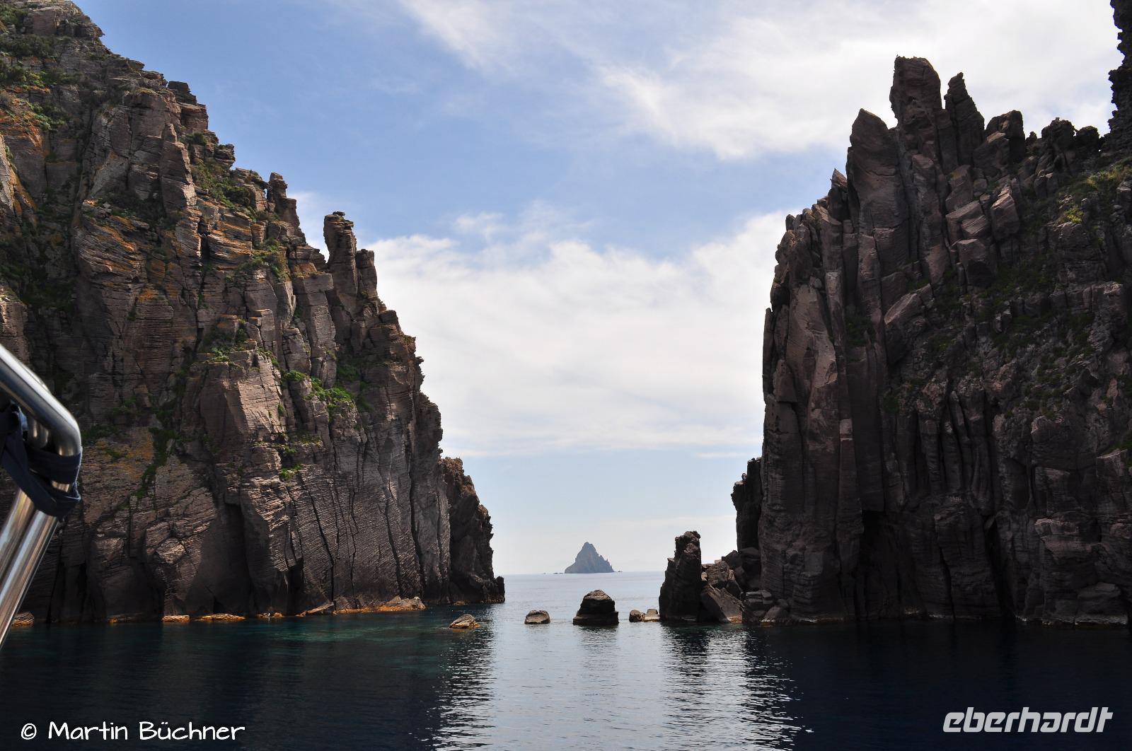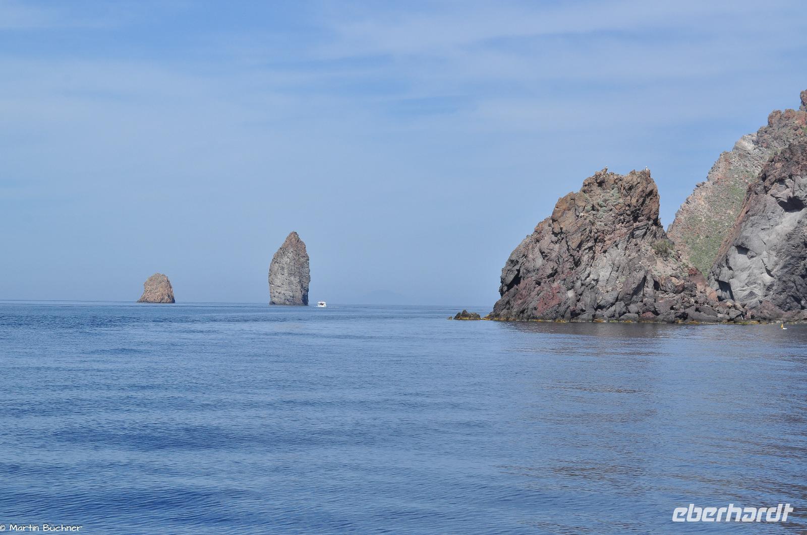 Ein weiterer Höhepunkt ist Strombolicchio, ein Vulkanstumpf, gebildet im alten Schlot des Strombolis.