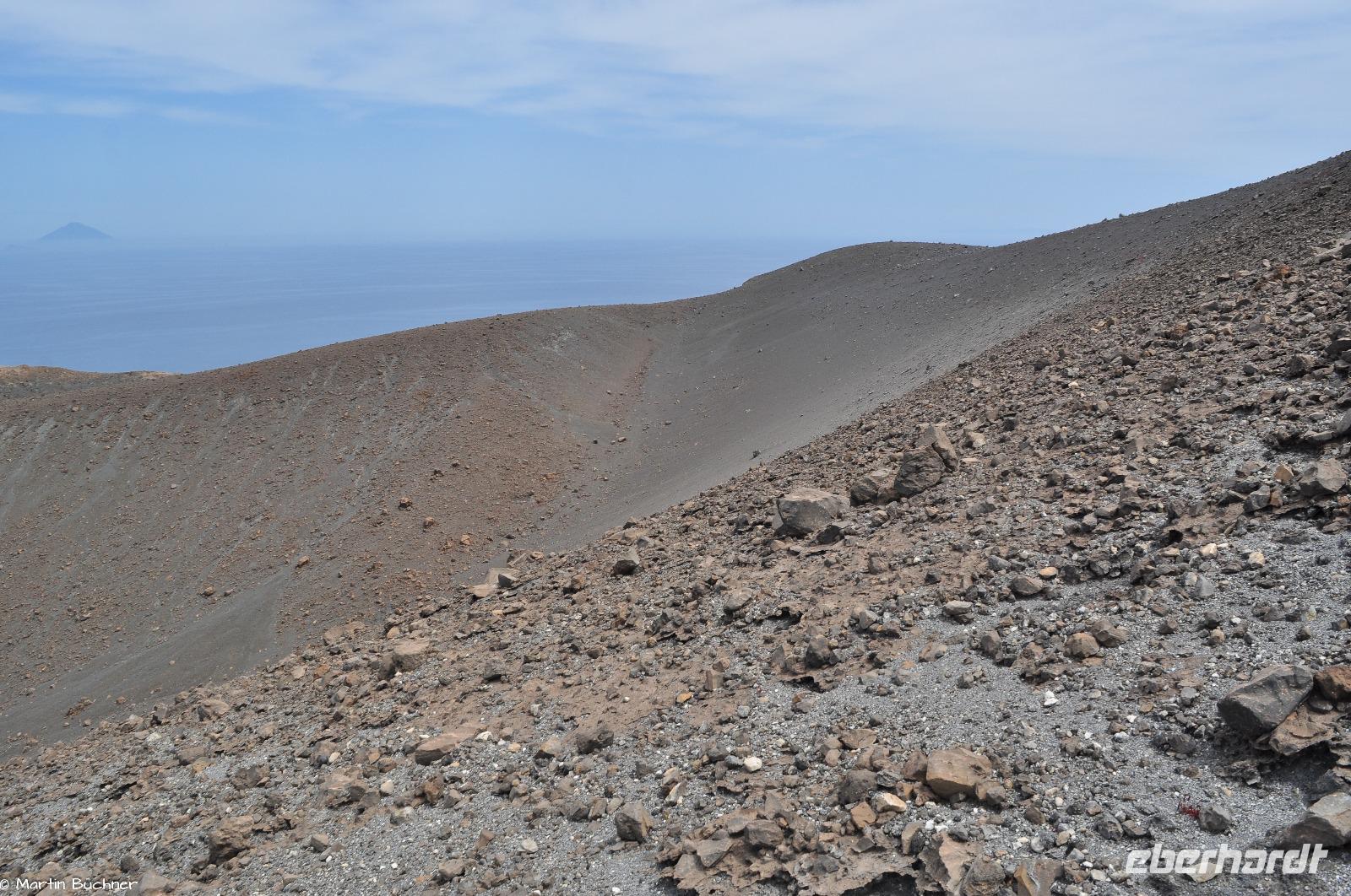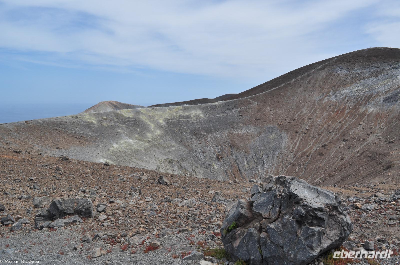 Der größte und auffälligste Krater liegt in der weitaus größeren Caldera di Vulcano, was den meisten Besuchern jedoch nicht auffällt.