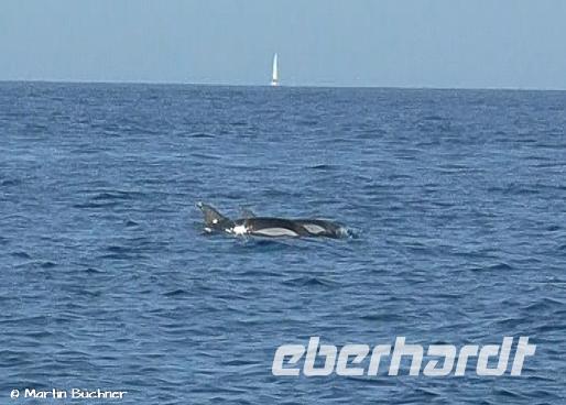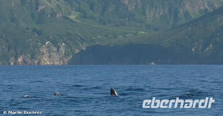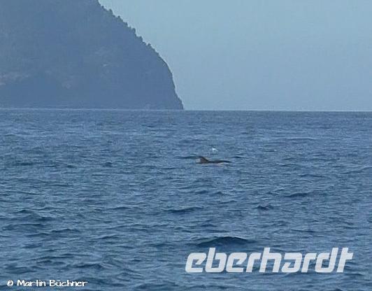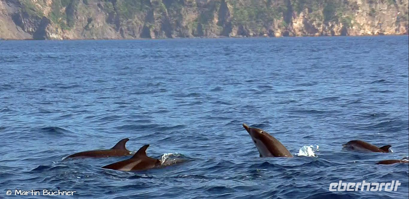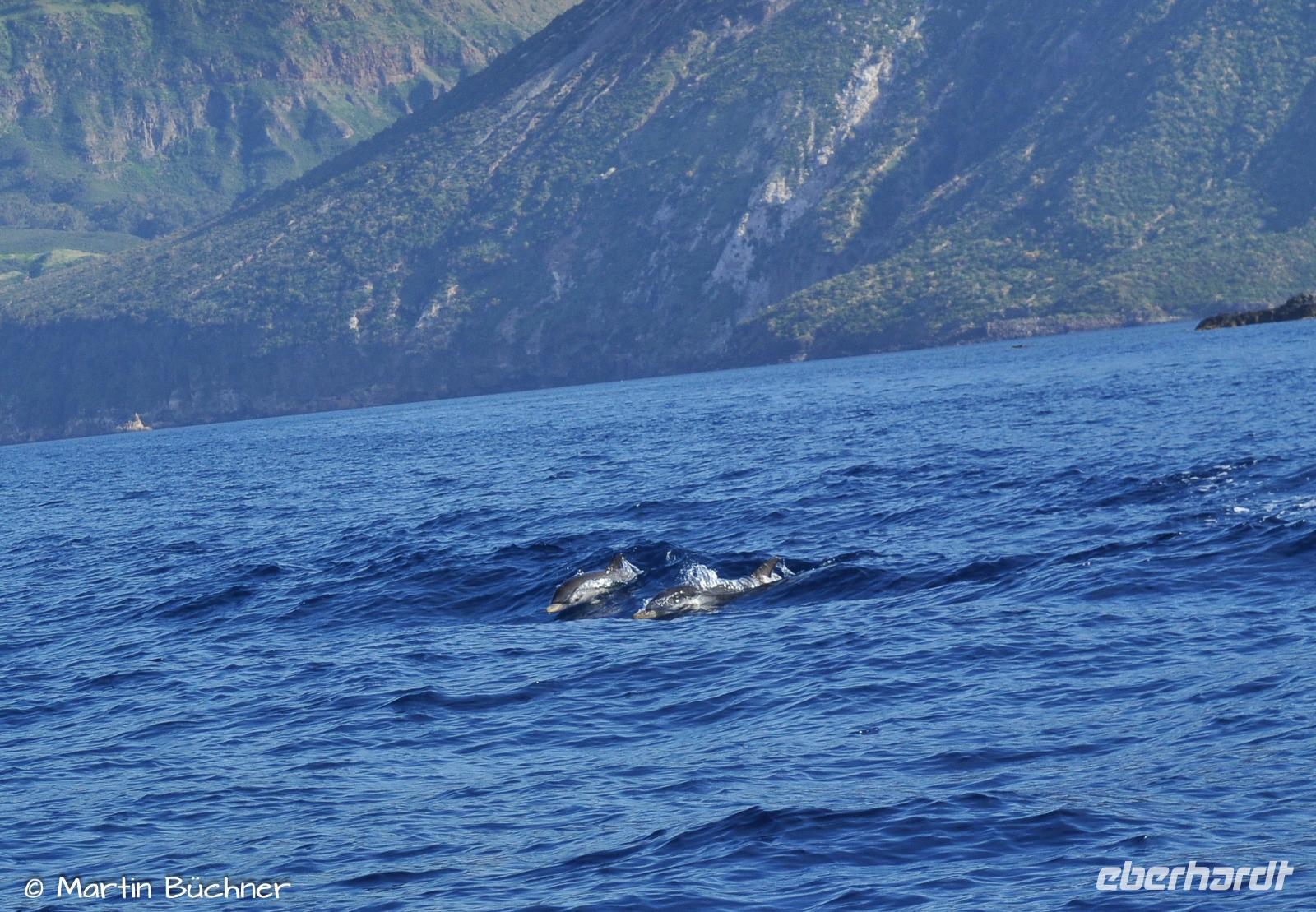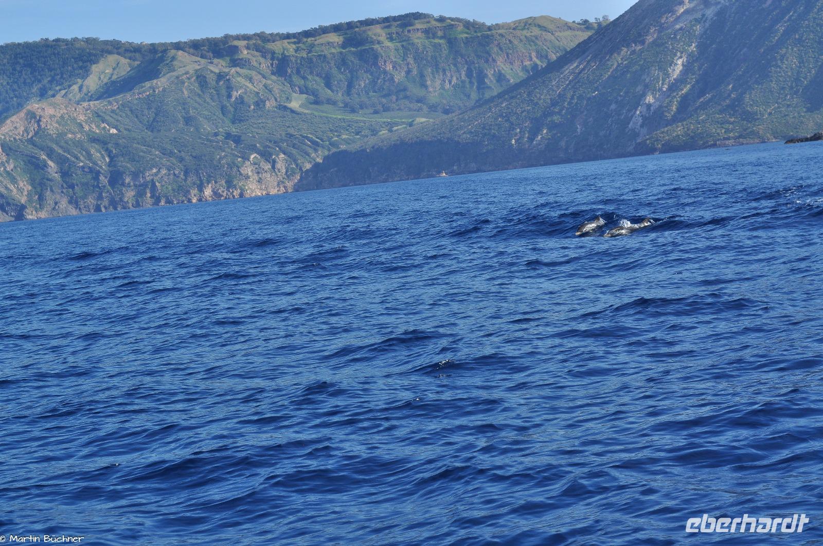 Mit dem Boot geht es zurück nach Lipari. Auf dem Weg überrascht uns eine Gruppe Streifendelfine, wir stoppen und schauen ihnen einen Moment zu.