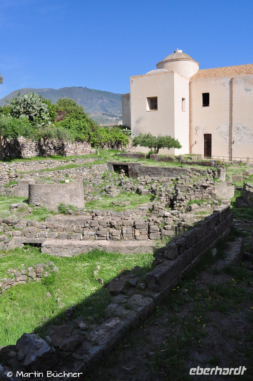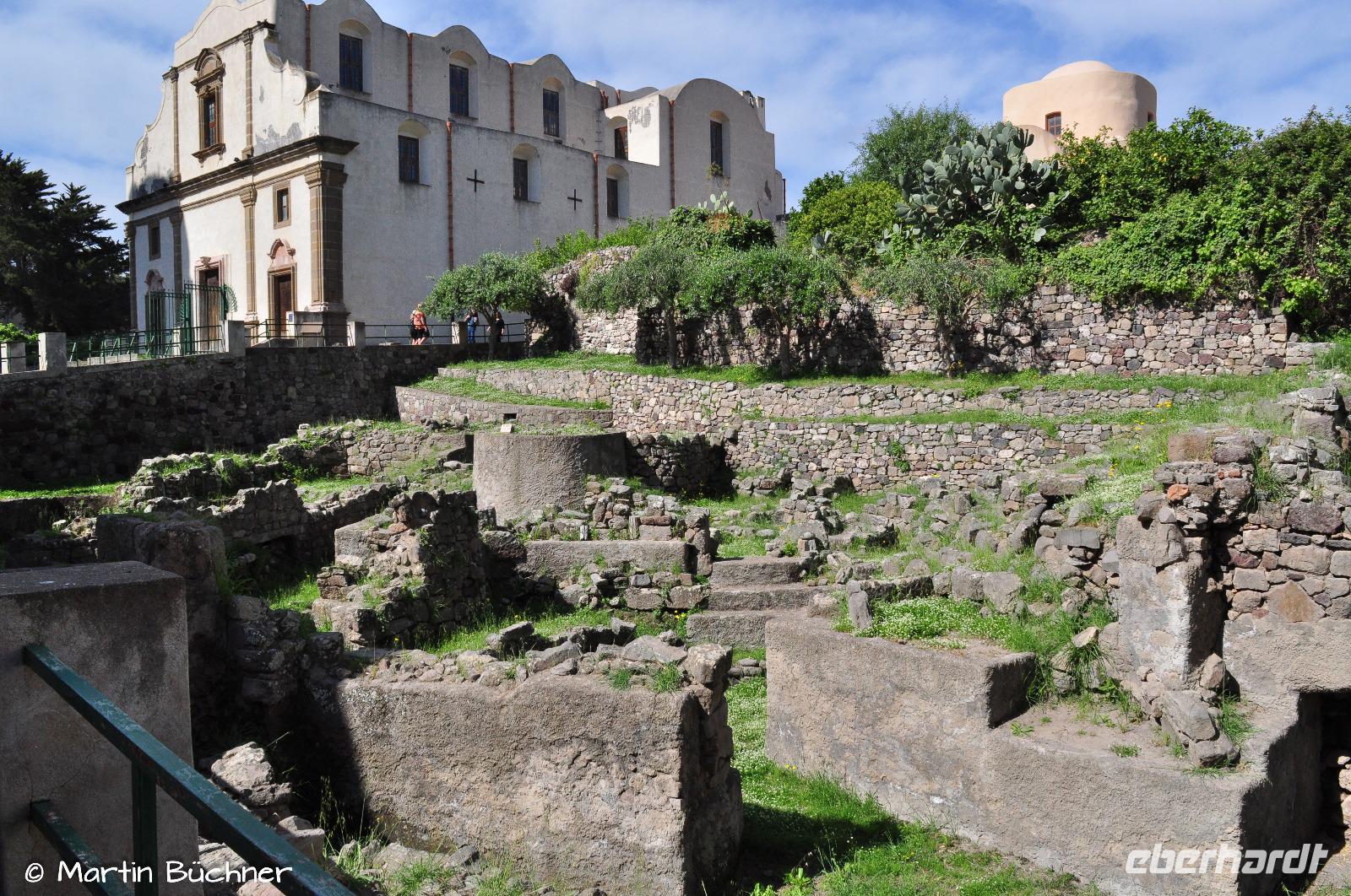 Am Vormittag besuchen wir die Zitadelle Lipari. 6.000 Jahre Besiedlung auf wenigen Quadratmetern! Hier wurden die Archäologen schon sehr früh vor ein riesiges Dilemma gestellt: Darf man antike Bauwerke zerstören um an noch frühere Bauwerke zu gelangen. In Lipari ist das notwendig. Behutsam und mit viel Bedacht ist man hier vor gegangen. Tausende Fundstücke aus prähistorischer und antiker Zeit bis zum heutigen wurden hier sichergestellt. Der bedeutendste Teil ist im zugehörigen Museum ausgestellt. Es gibt jedoch so viele Funde, dass tatsächlich nur ein kleiner Teil ausgestellt werden kann.