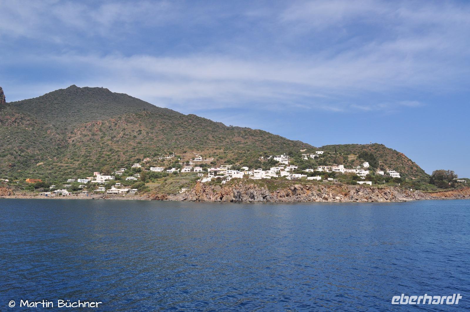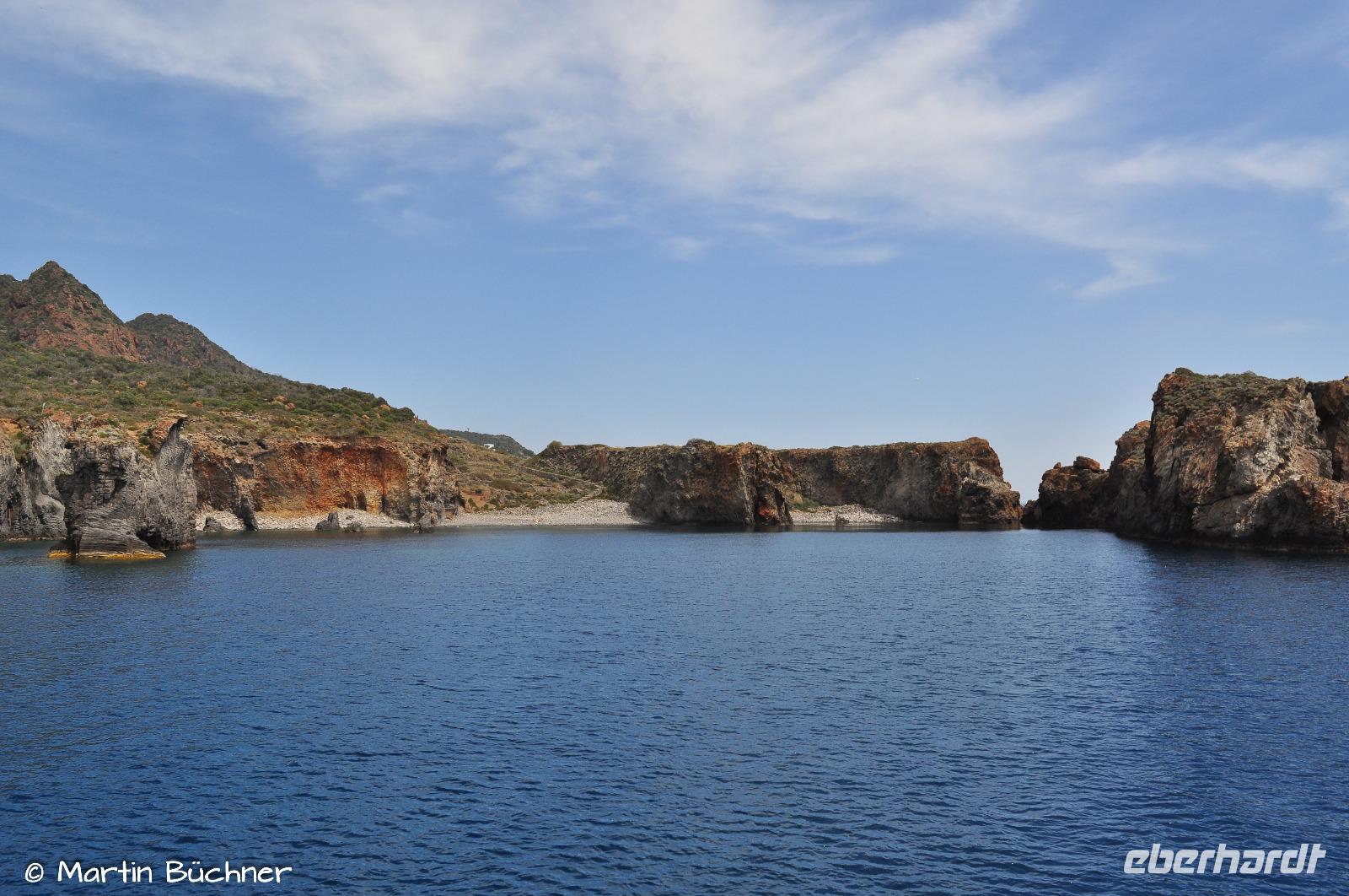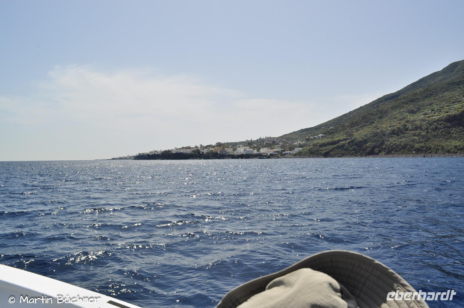 In der Mittagszeit bringt uns ein Boot samt Gepäck in Richtung Stromboli. Wir haben einen kurzen Zwischenstopp auf Panarea. Es reicht für ein kleines Picknick und einen kurzen Rundgang. Die Insel ist in den Sommermonaten besonders bei den Reichen und Schönen beliebt, dann tummeln sich Millionäre und Milliardäre in Panareas Buchten.