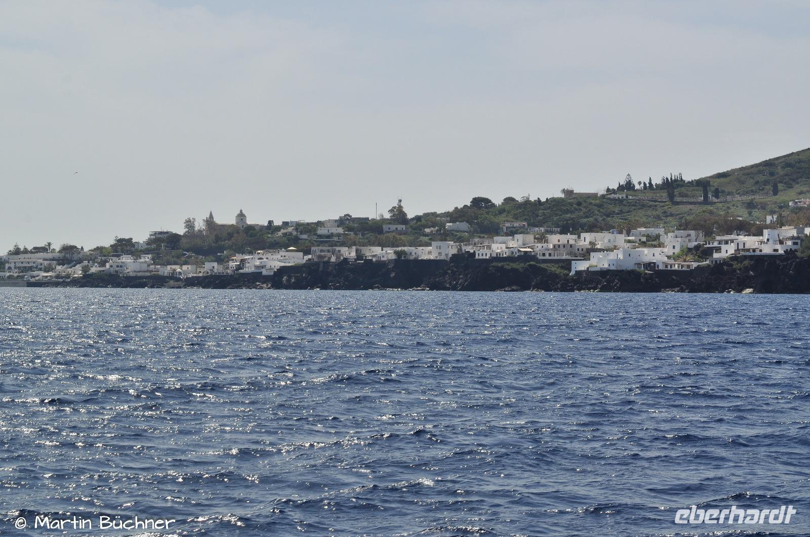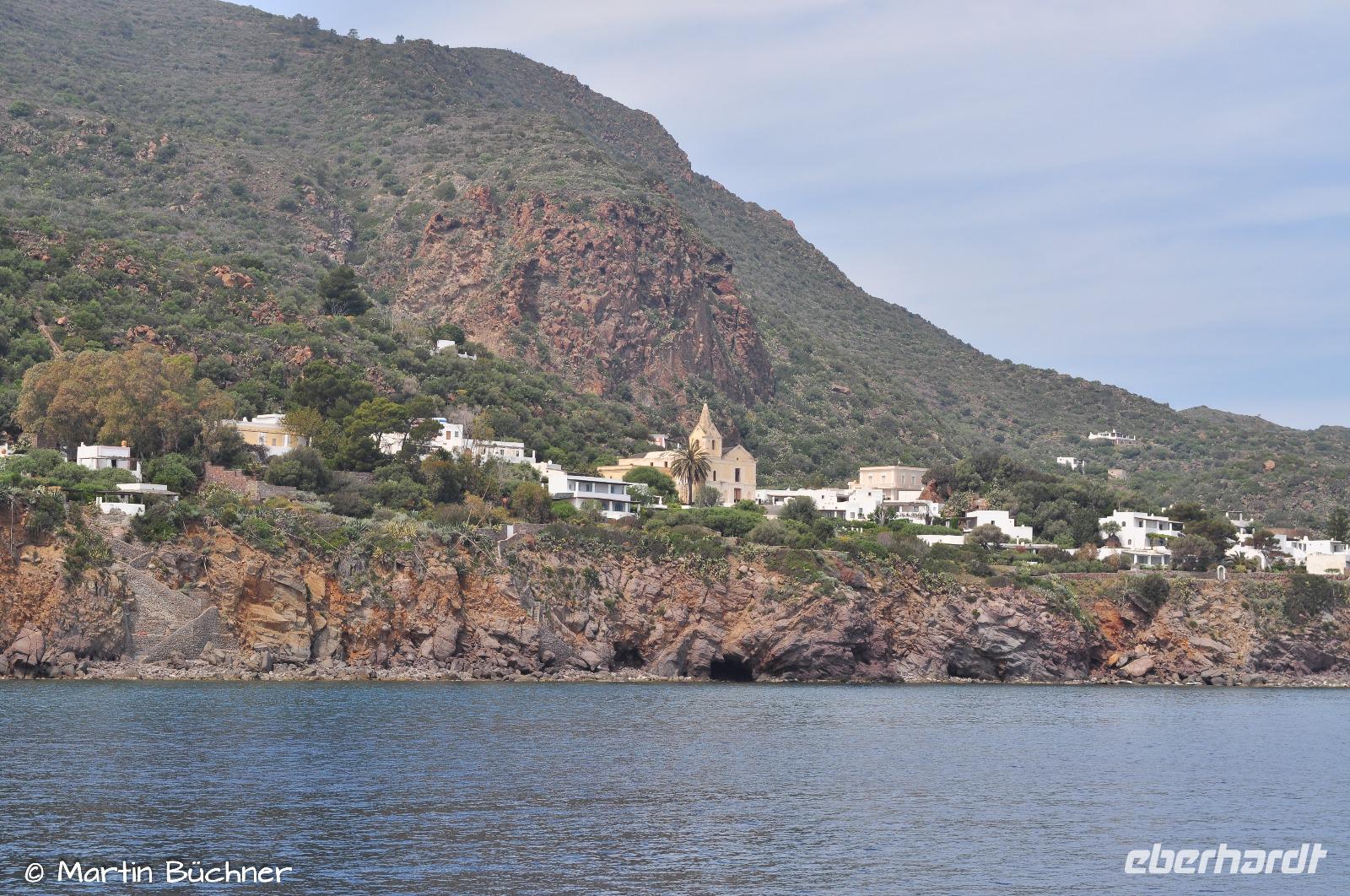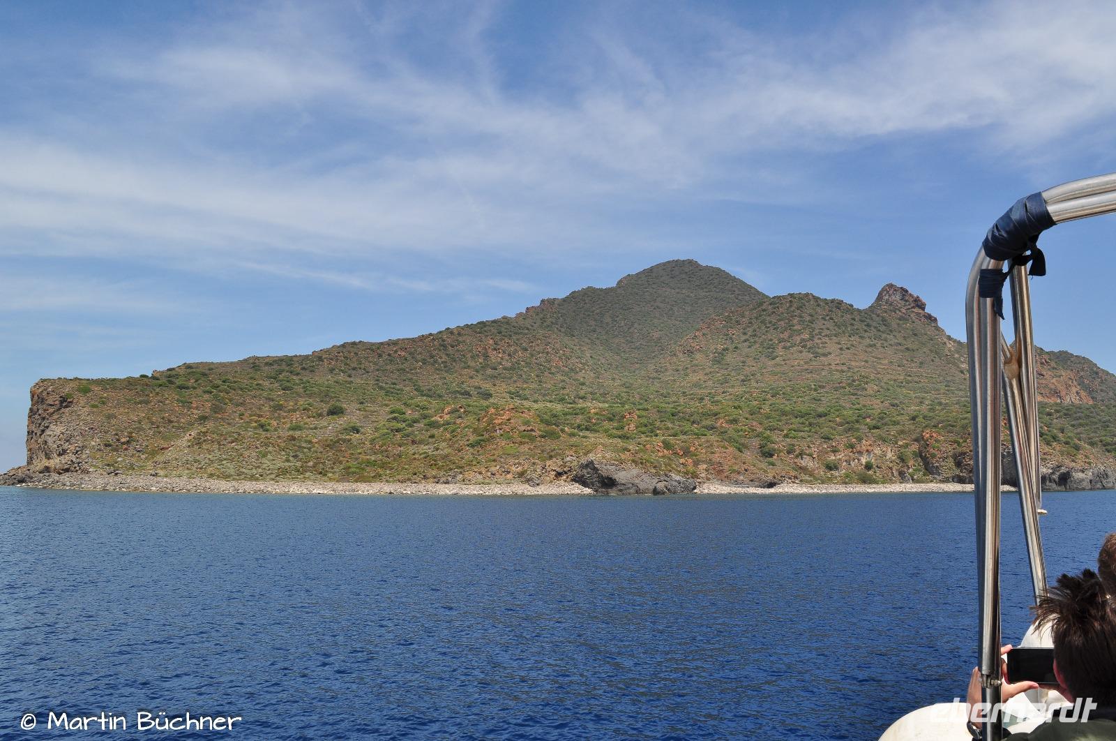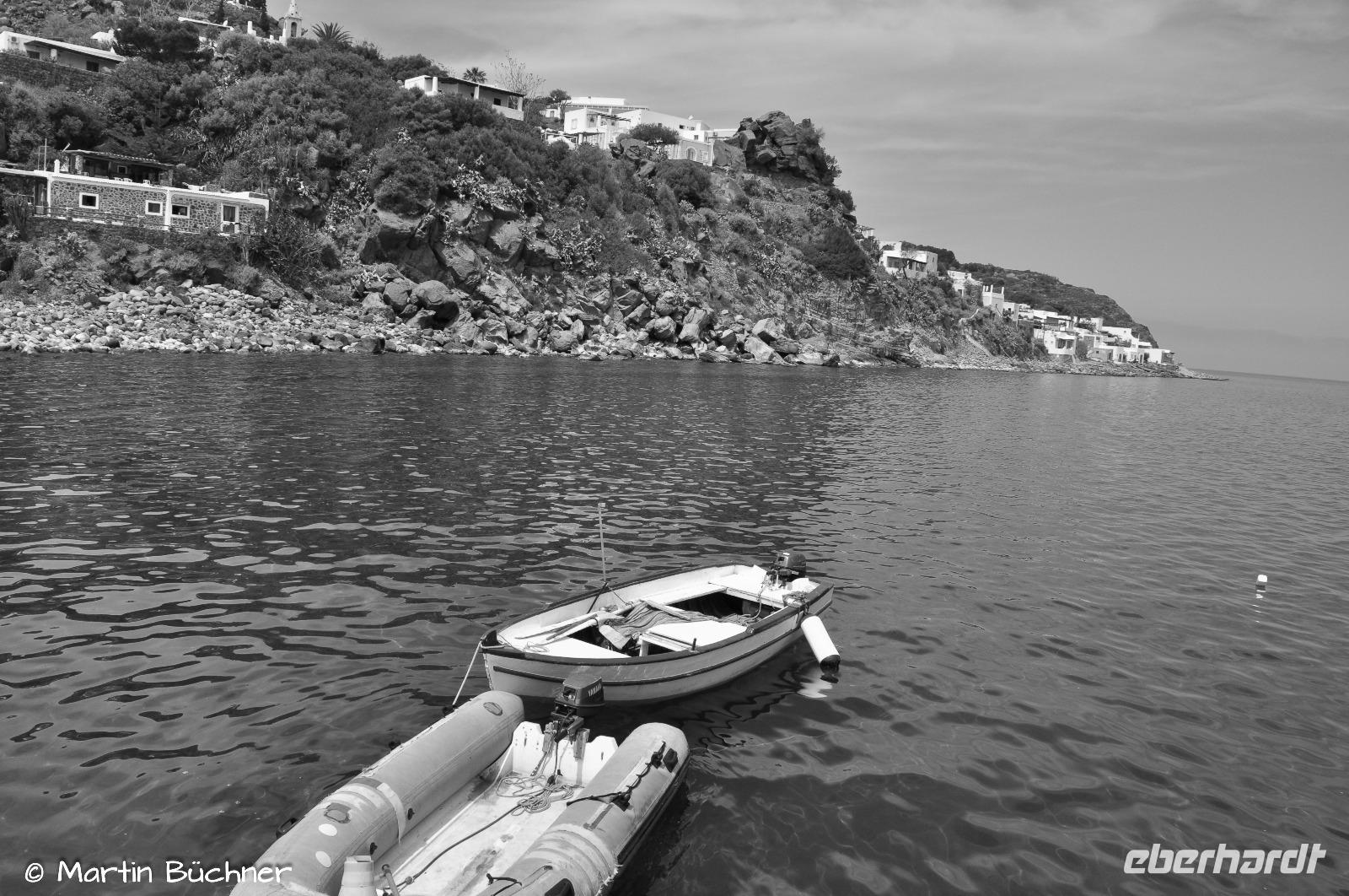 In der Mittagszeit bringt uns ein Boot samt Gepäck in Richtung Stromboli. Wir haben einen kurzen Zwischenstopp auf Panarea. Es reicht für ein kleines Picknick und einen kurzen Rundgang. Die Insel ist in den Sommermonaten besonders bei den Reichen und Schönen beliebt, dann tummeln sich Millionäre und Milliardäre in Panareas Buchten.