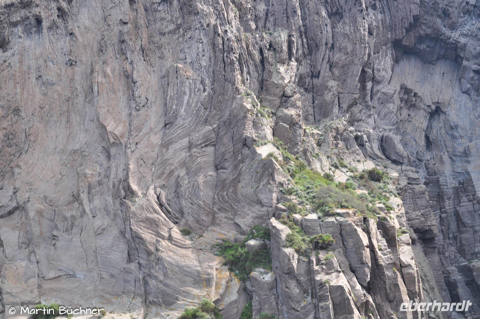 Hugo meint, heute ist es eh merkwürdig, schau mal die Spitze von meinem Holzstock (Wanderstock) an. Im Schein der Stirnlampe, es war bereits dunkel geworden und mit den windigen Böen sah es aus wie vereinzelte Holzfasern, die wie kleine Plättchen im Wind flatterten und ein schnarrendes Geräusch erzeugten. Aufatmen, dass besorgniserregende Geräusch scheint mechanischer Natur zu sein.
