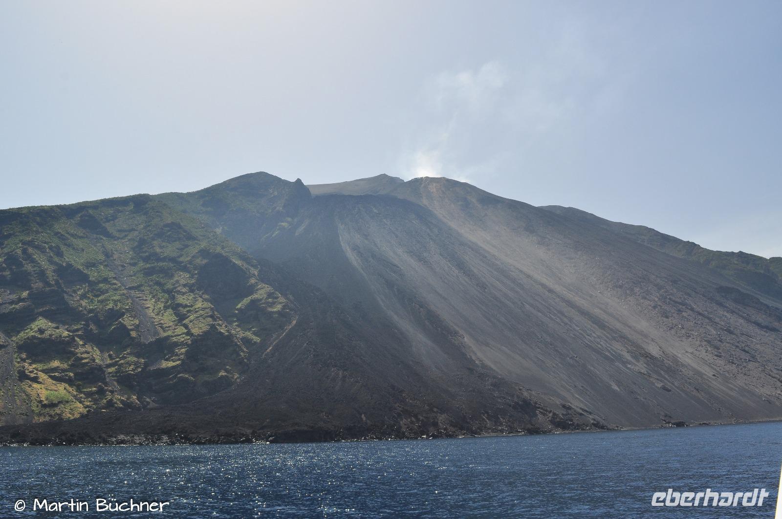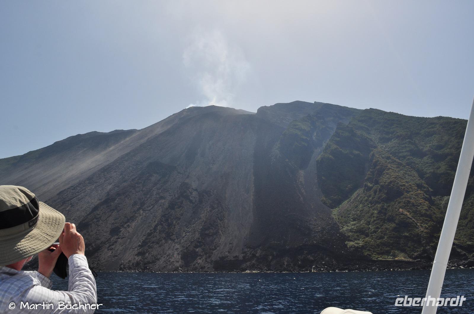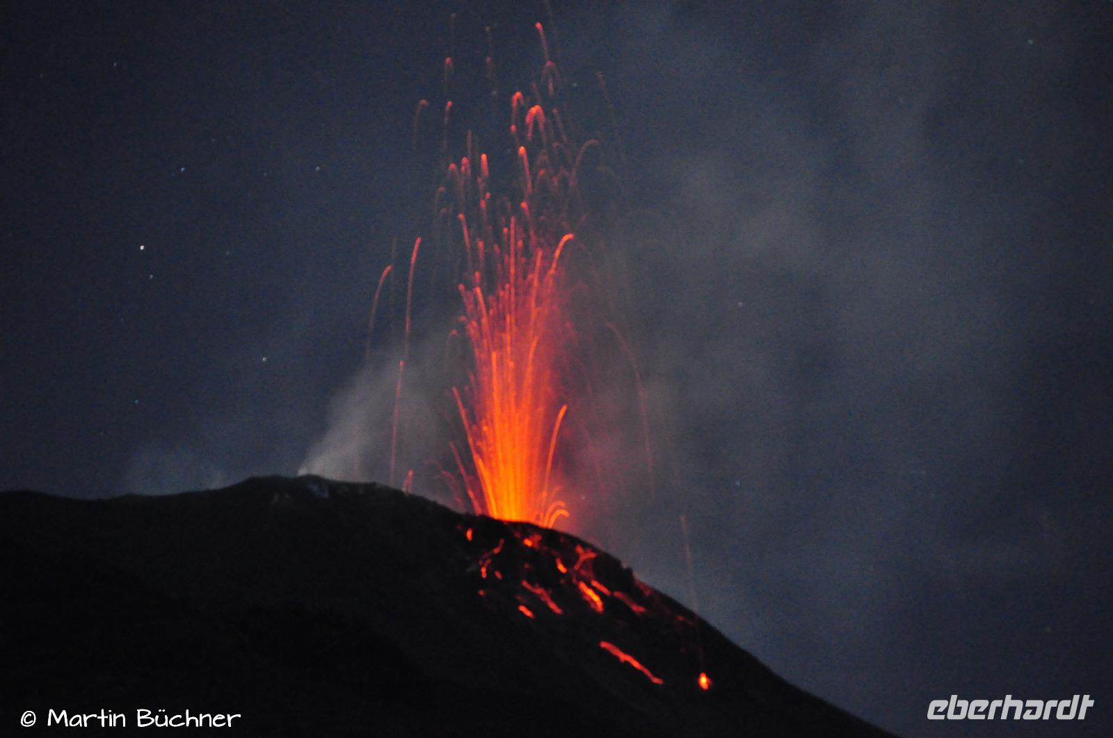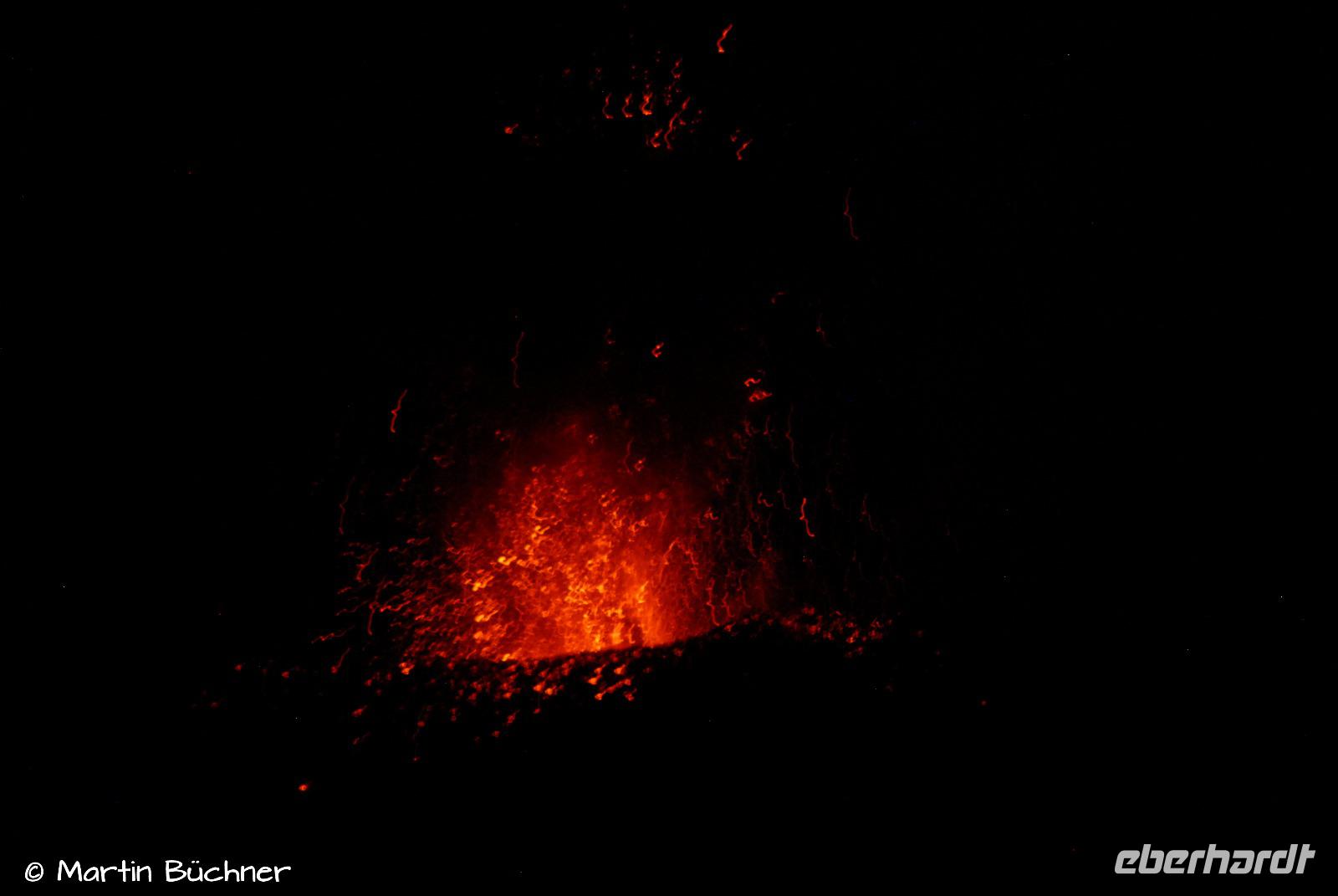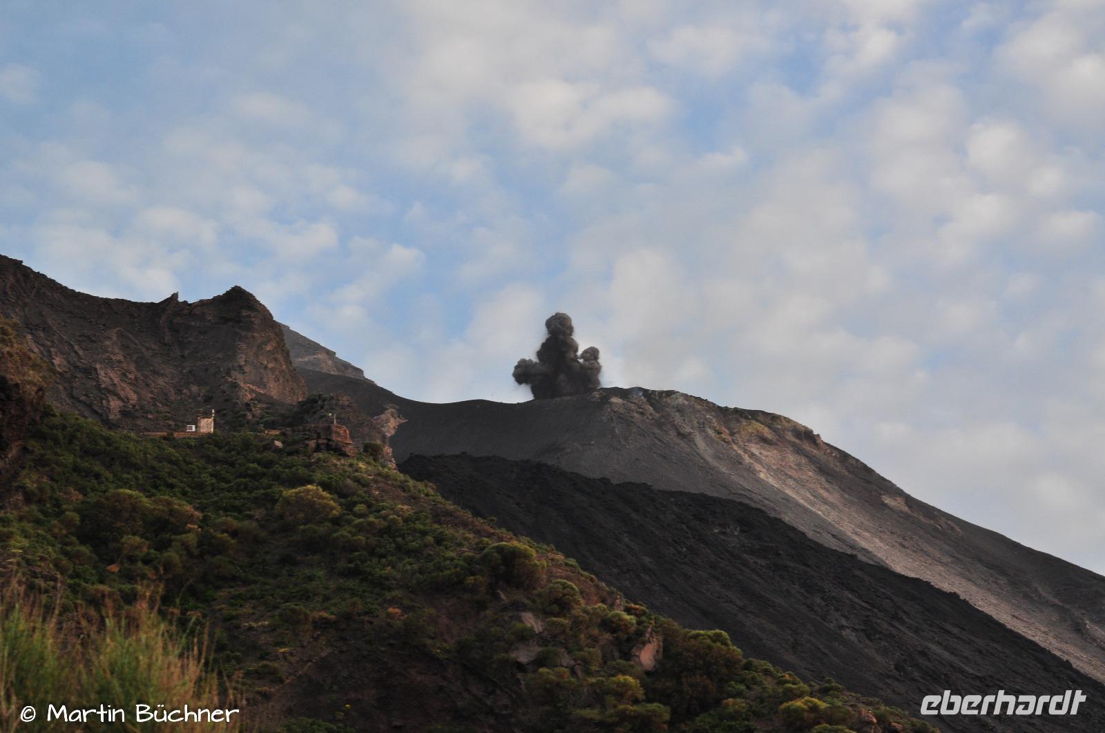 Der Stromboli ist wesentlich aktiver. Er bricht im Schnitt alle 7 Minuten in einer für den Stromboli durchaus untypischen explosiven Eruption aus. Zwischen einzelnen Eruptionen können auch einmal 20 Minuten liegen, dem folgen jedoch zwei bis drei Eruptionen in sehr kurzen Abständen.