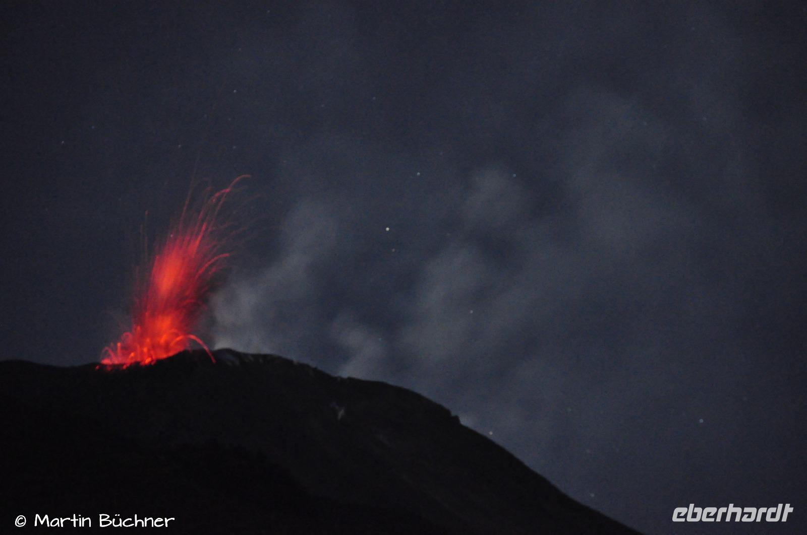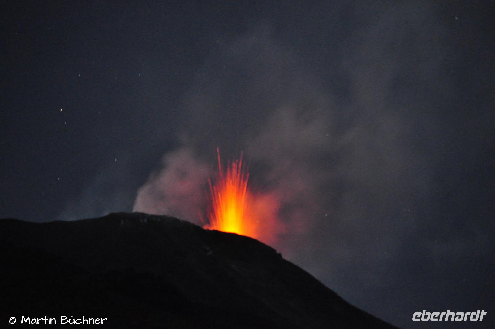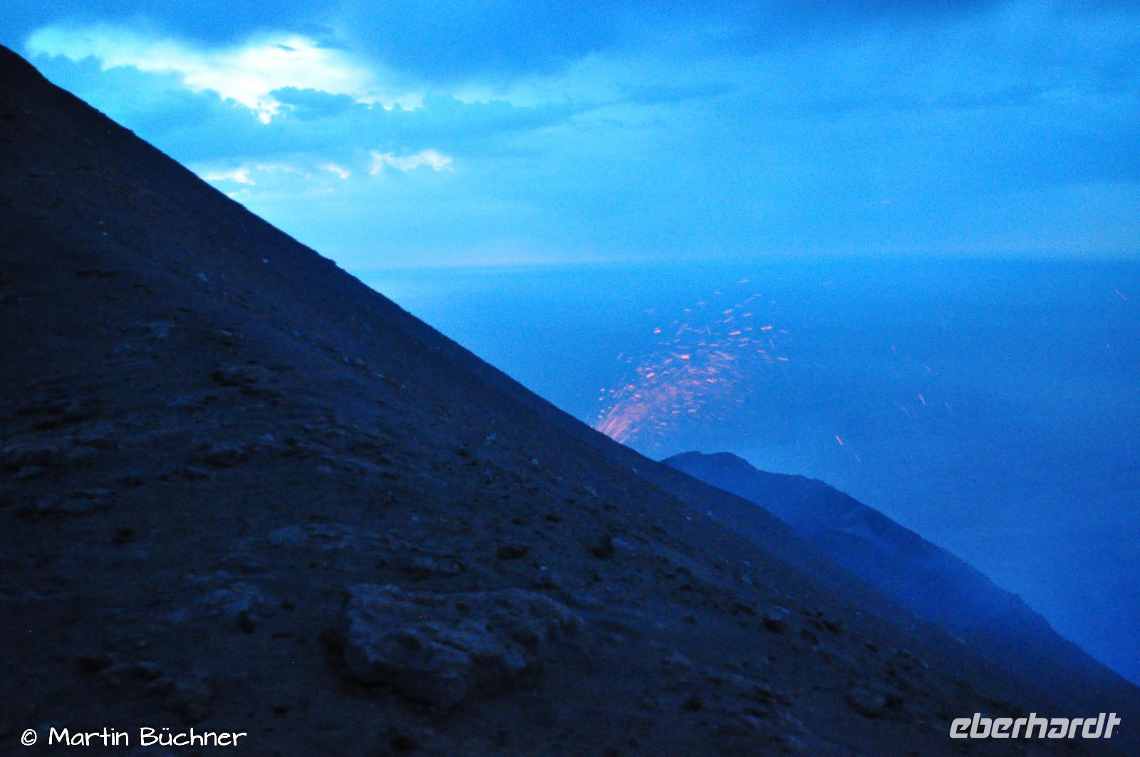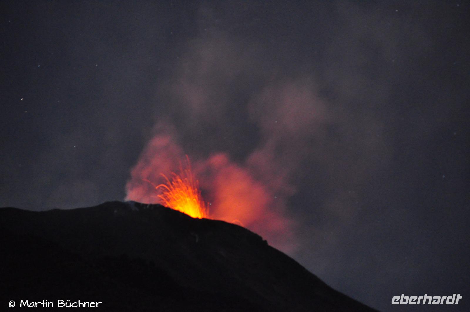 Oben angekommen, belohnt uns der Stromboli mit ein paar heftigen Eruptionen.