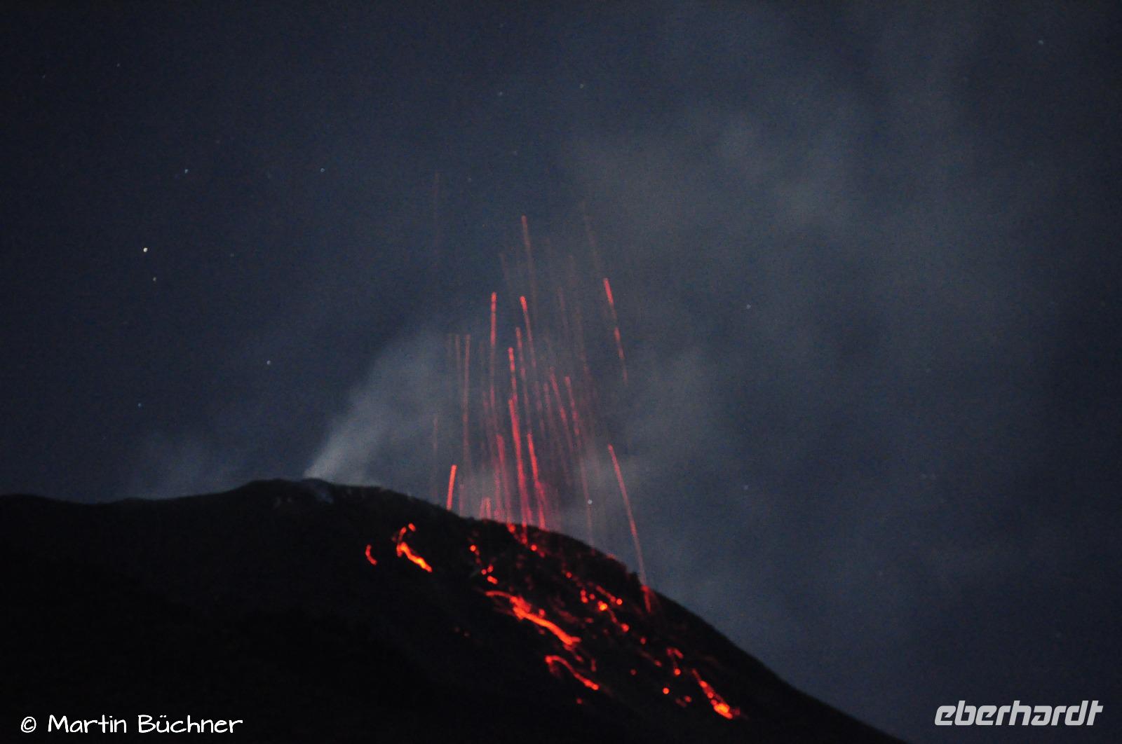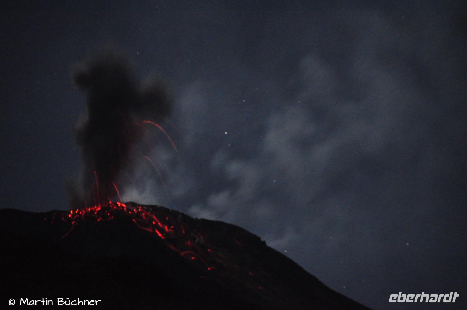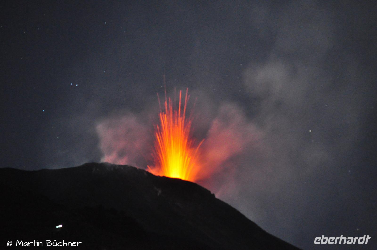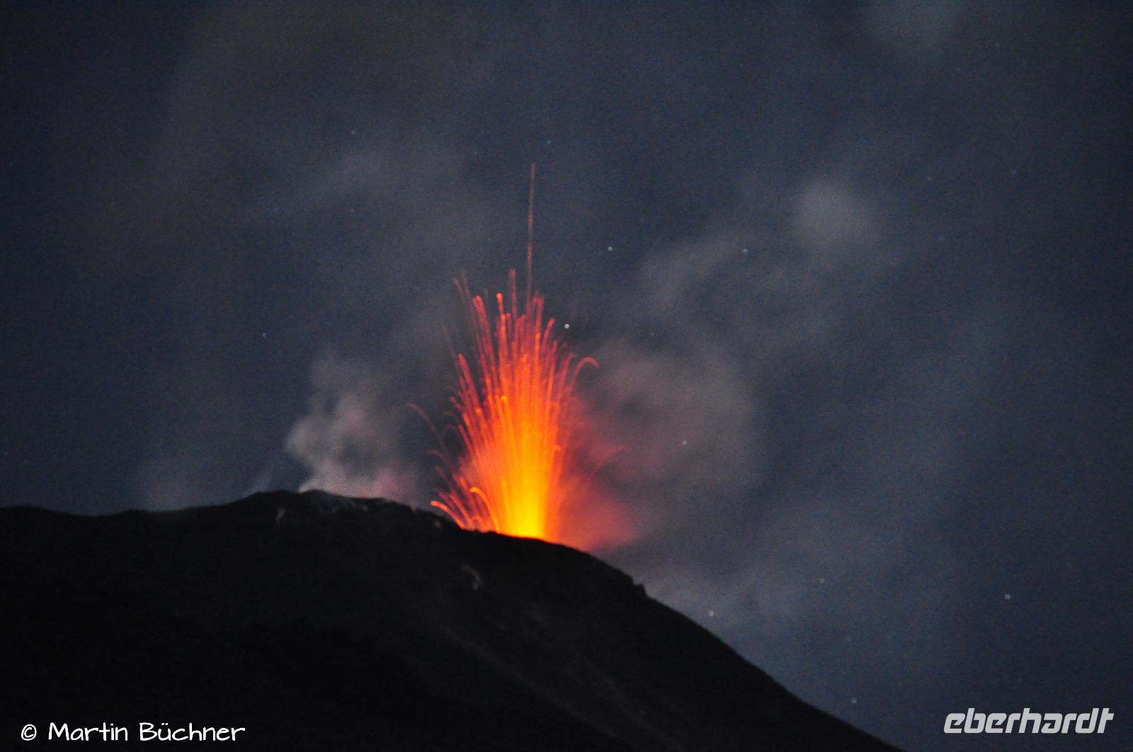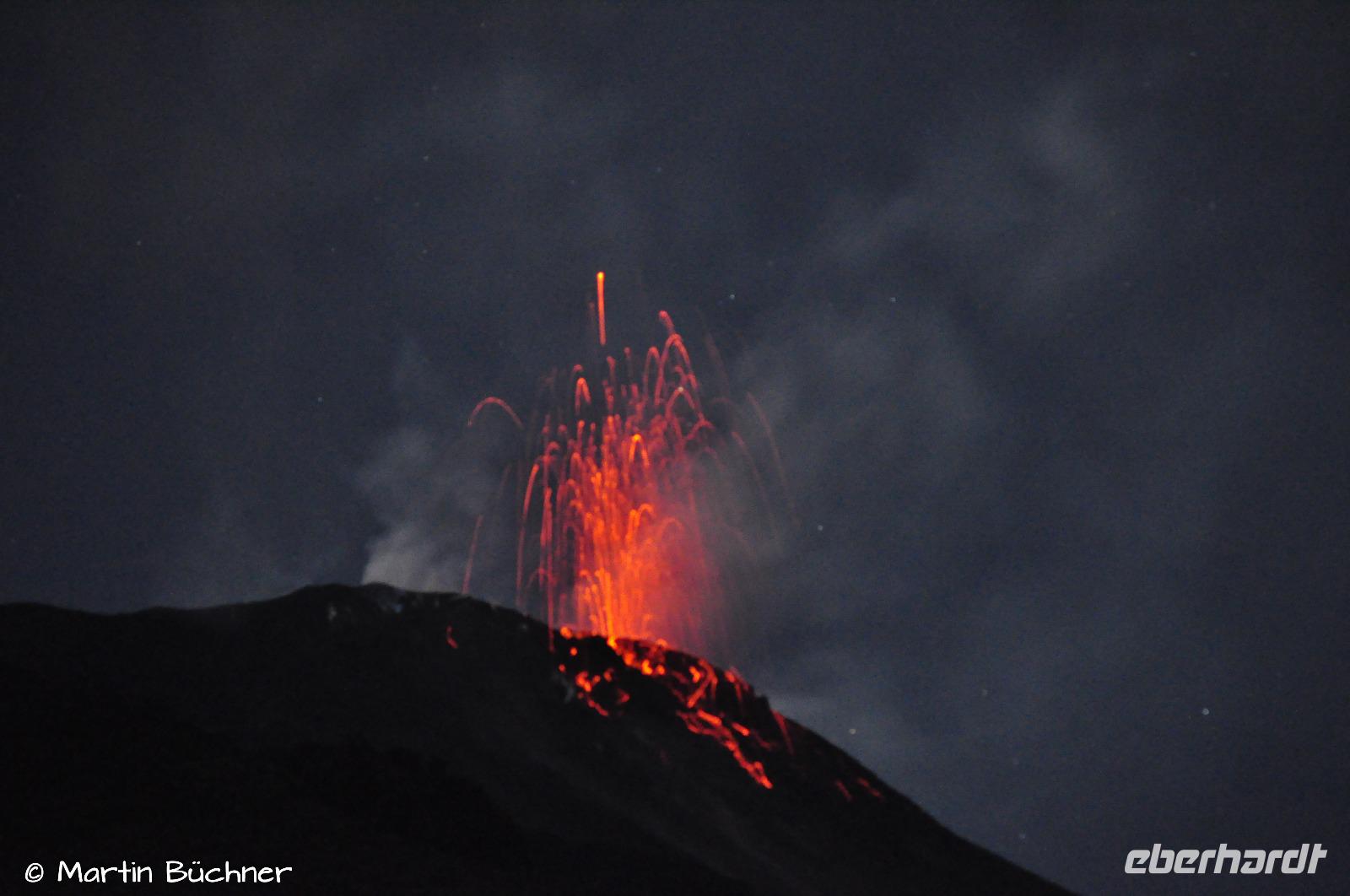 Oben angekommen, belohnt uns der Stromboli mit ein paar heftigen Eruptionen.