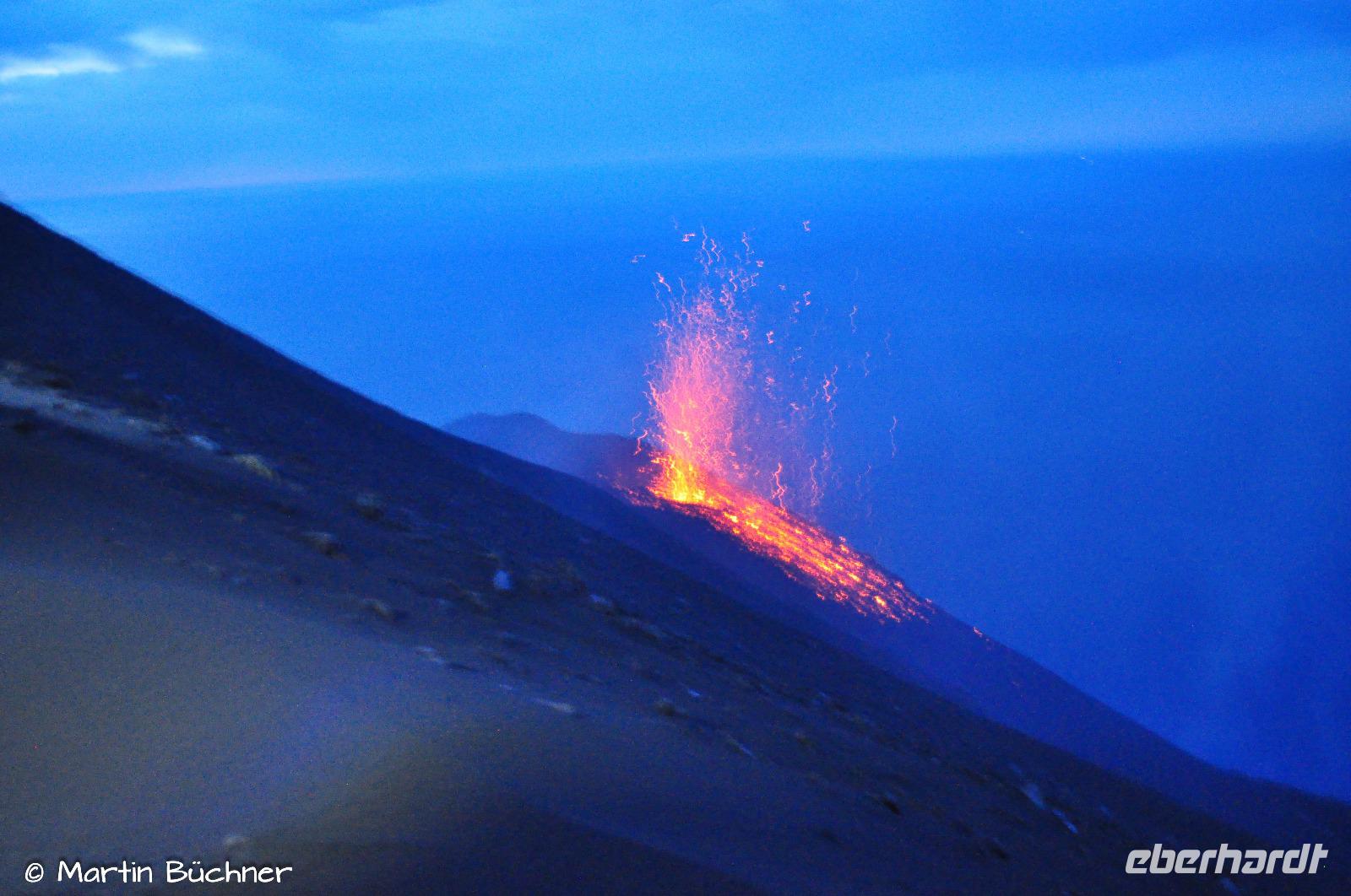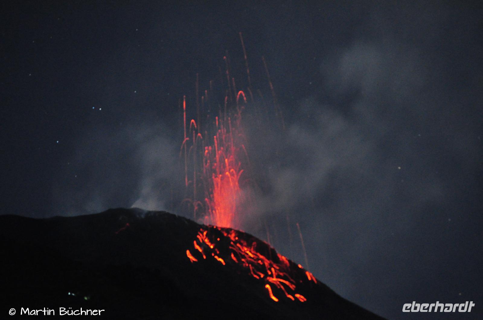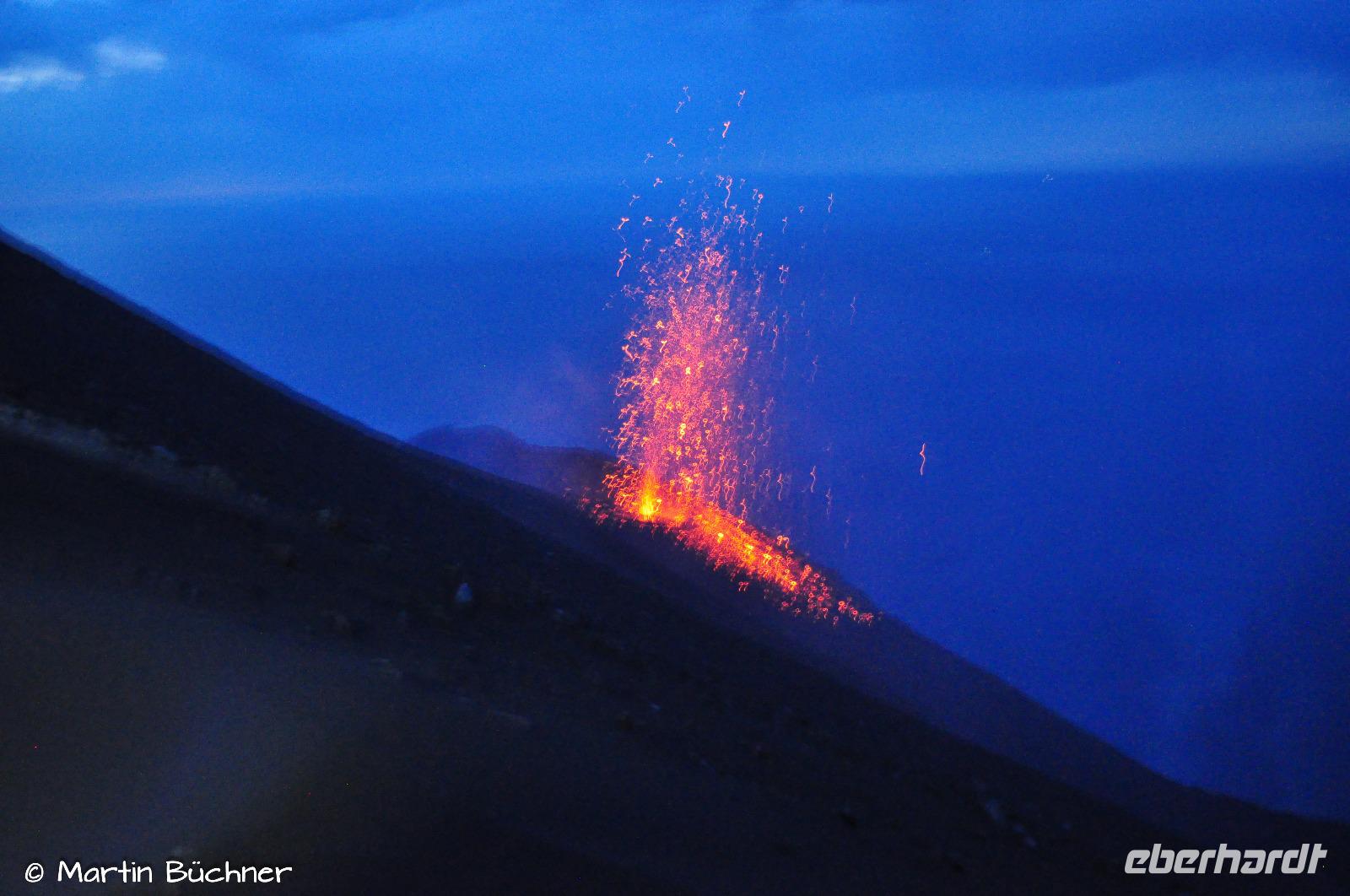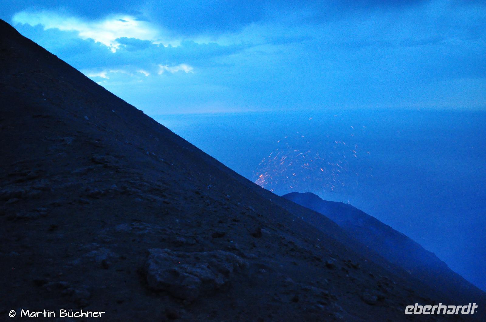 Oben angekommen, belohnt uns der Stromboli mit ein paar heftigen Eruptionen.