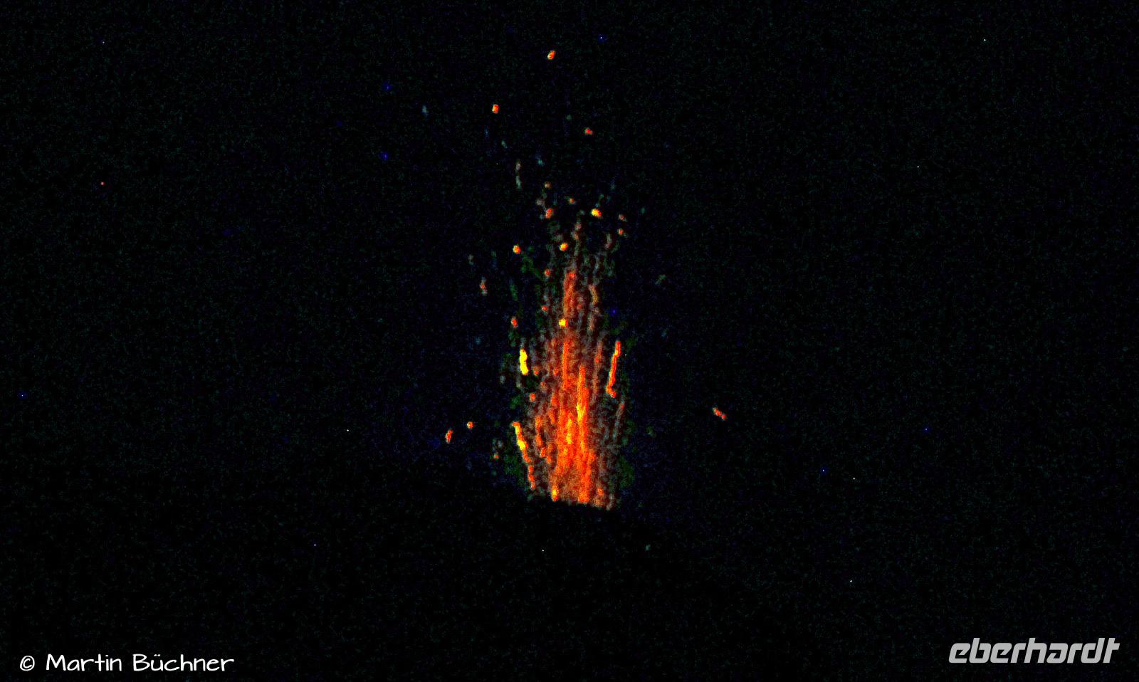 Plötzlich nehme ich merklich ansteigendes „Summen oder Brummen" an der Antenne wahr. Etwas verunsichert möchte ich trotz der imposanten Eruptionen mit Hugo über dieses Brummen sprechen, auch die Blitze in der Ferne wollen mir nicht so recht aus dem Kopf.