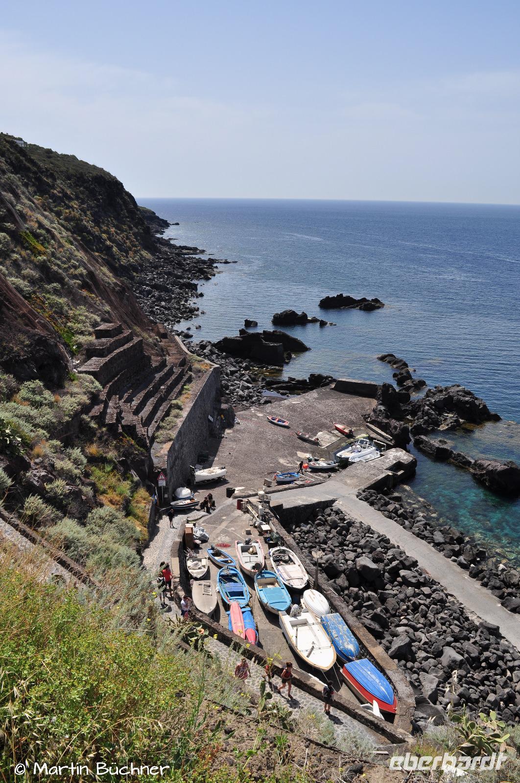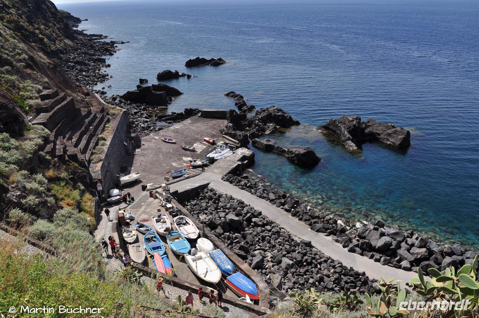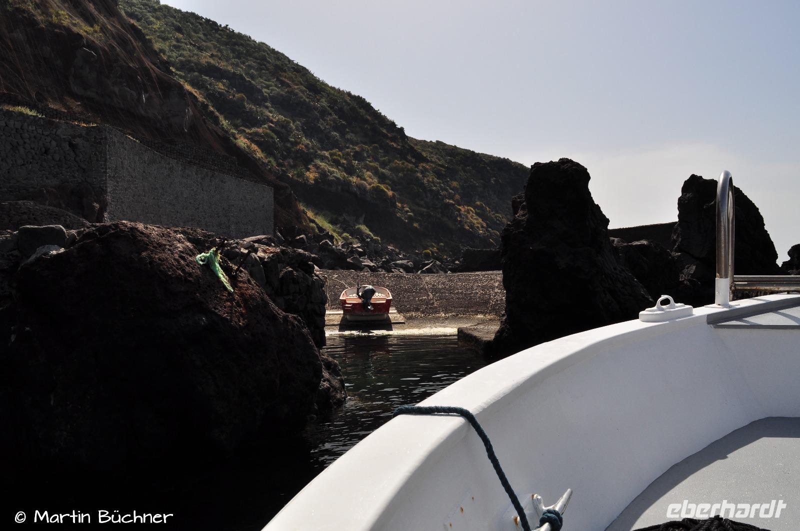 Ein Teil unserer Gruppe unternimmt heute einen Ausflug per Boot zum kleinen Ort Ginostra. Er liegt auf der anderen Seite von Stromboli und ist heute nur noch per Boot, einem Hubschrauber oder in einem Bergpfad über den Gipfelgrat des Strombolis zu erreichen.