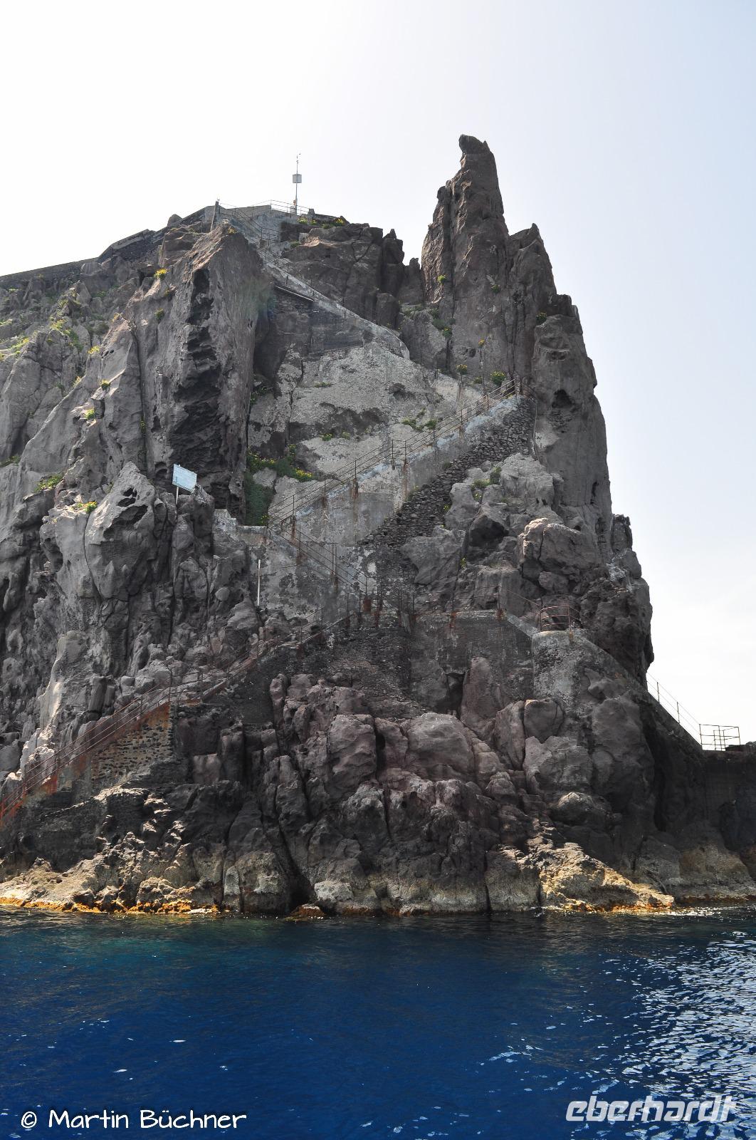 Nähert man sich diesem Felsen bemerkt man, dass dieser weit höher ist als man von Stromboli aus annimmt. Auf ihm befinden sich ein Leuchtturm, heute elektrisch und automatisiert. Bernardo berichtet, dass man früher dort oben sogar etwas Fußball spielen konnte.