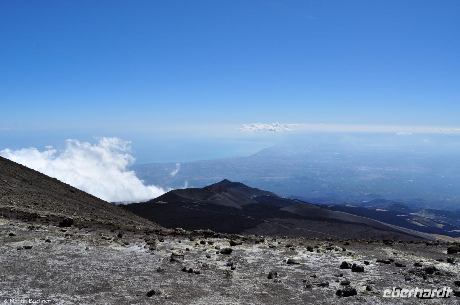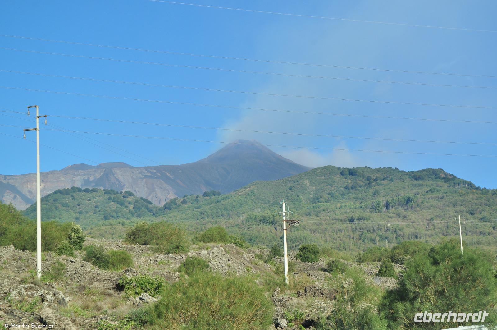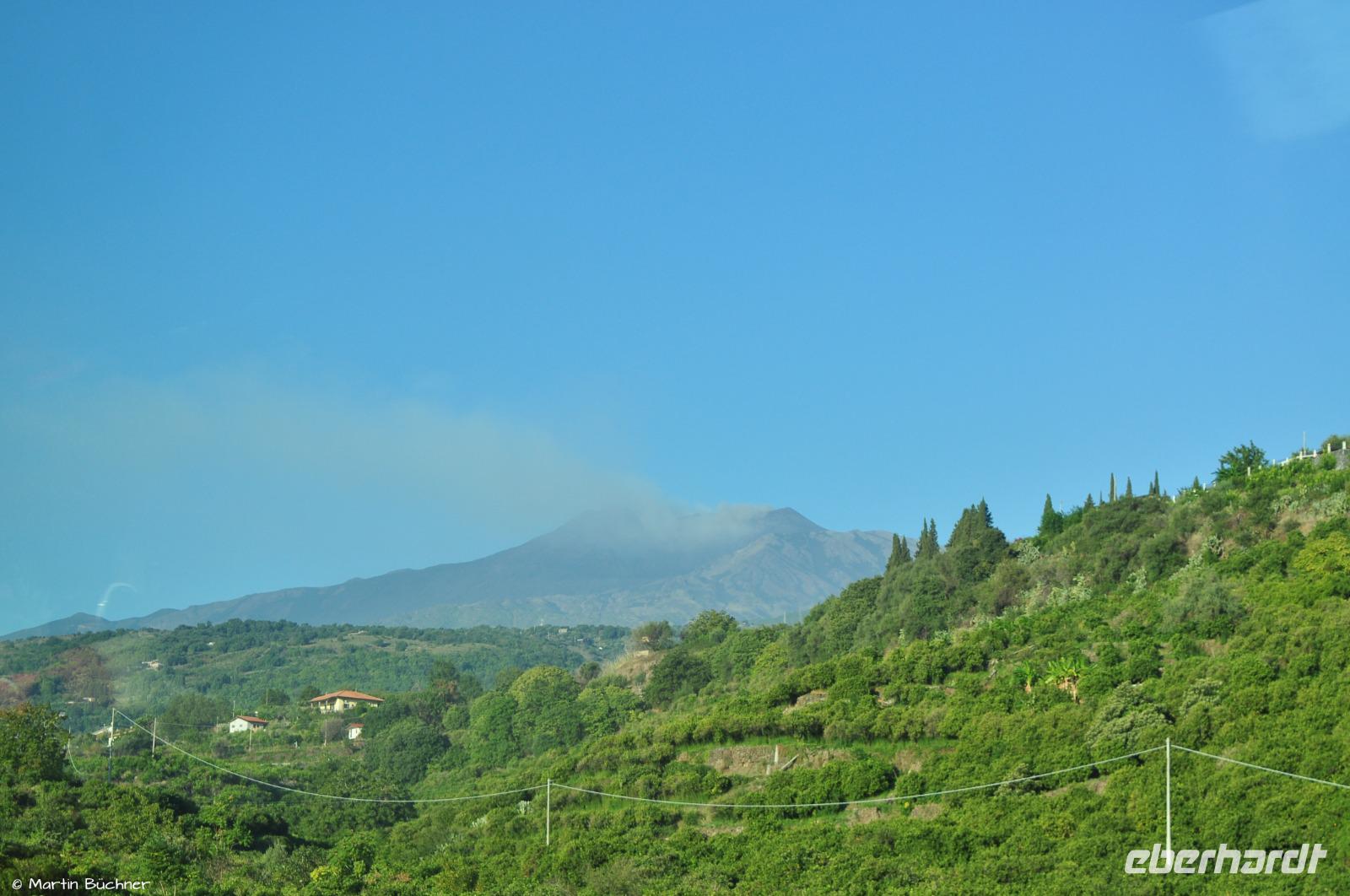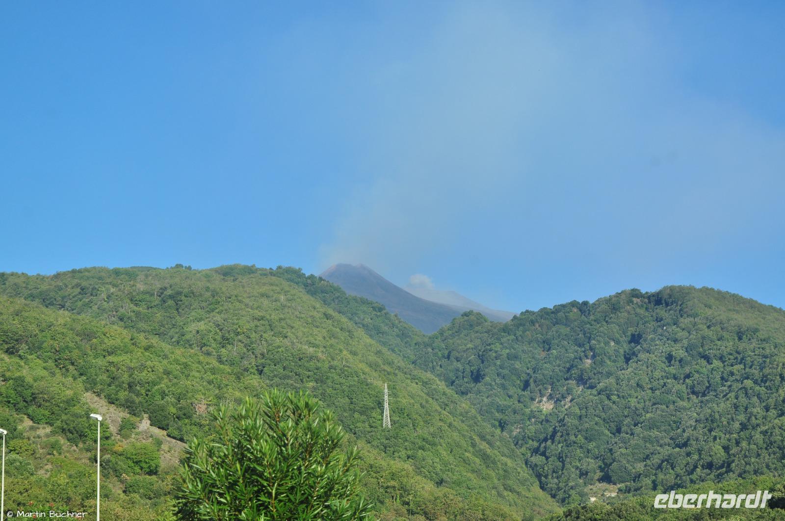 Am Morgen richten sich die ersten Blicke zum Ätna. Das Wetter ist gut, die Hauptkrater sind zu sehen. Der Ätna befindet sich gegenwertig in einer Phase erhöhter Aktivität, dass sich optisch an starkem Ausgasen mehrerer Hauptkrater zeigt und messtechnisch an deutlicher seismischer Aktivität (kleine Minibeben).