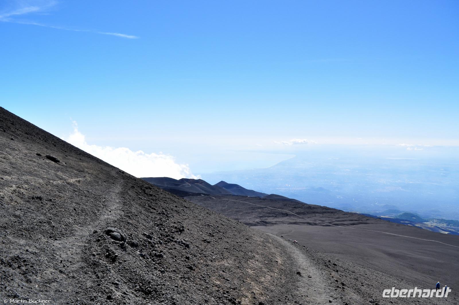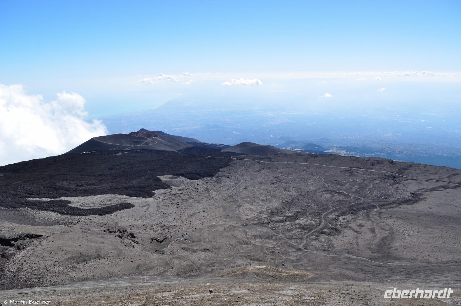 Unser Abstieg führt über ein großes Aschefeld hinab zu den Kratern des Torre del Filosofo.