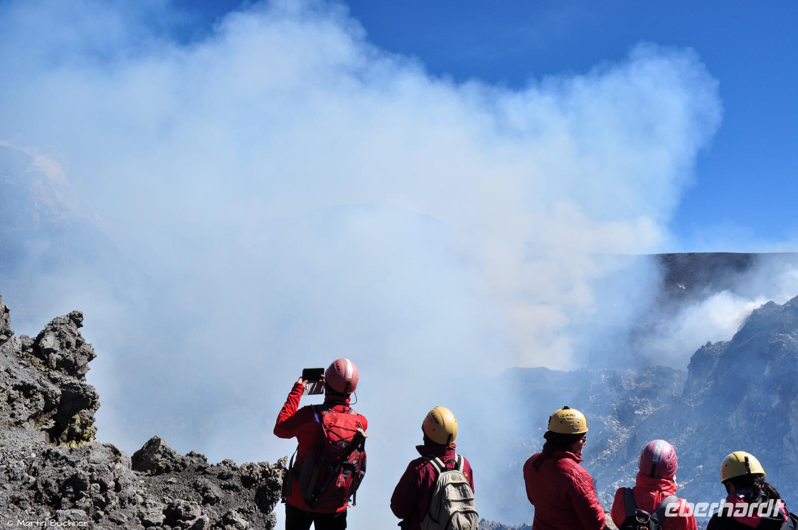 Die vulkanische Aktivität nimmt auch ein Laie wahr, daher ist es wie immer völlig unverständlich, dass trotz Warnungen und Verbote Individualtouristen in unzureichender Kleidung, ohne Helm, in Turnschuhen und ohne Guide den Weg hier herauffinden.