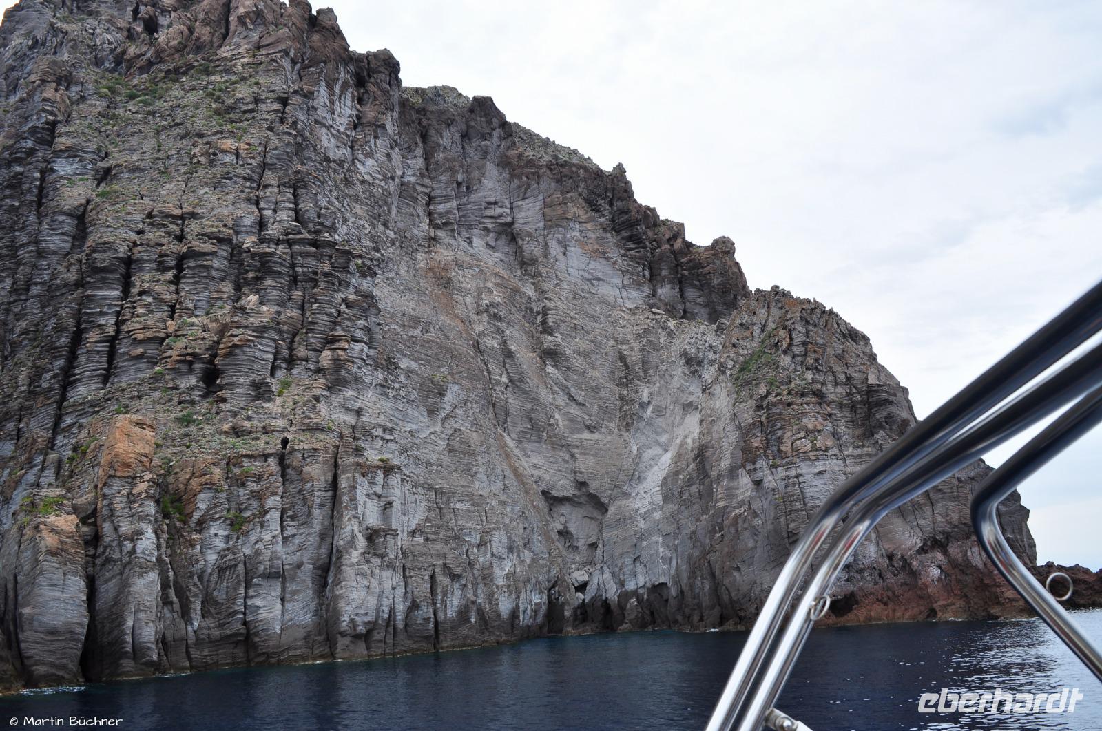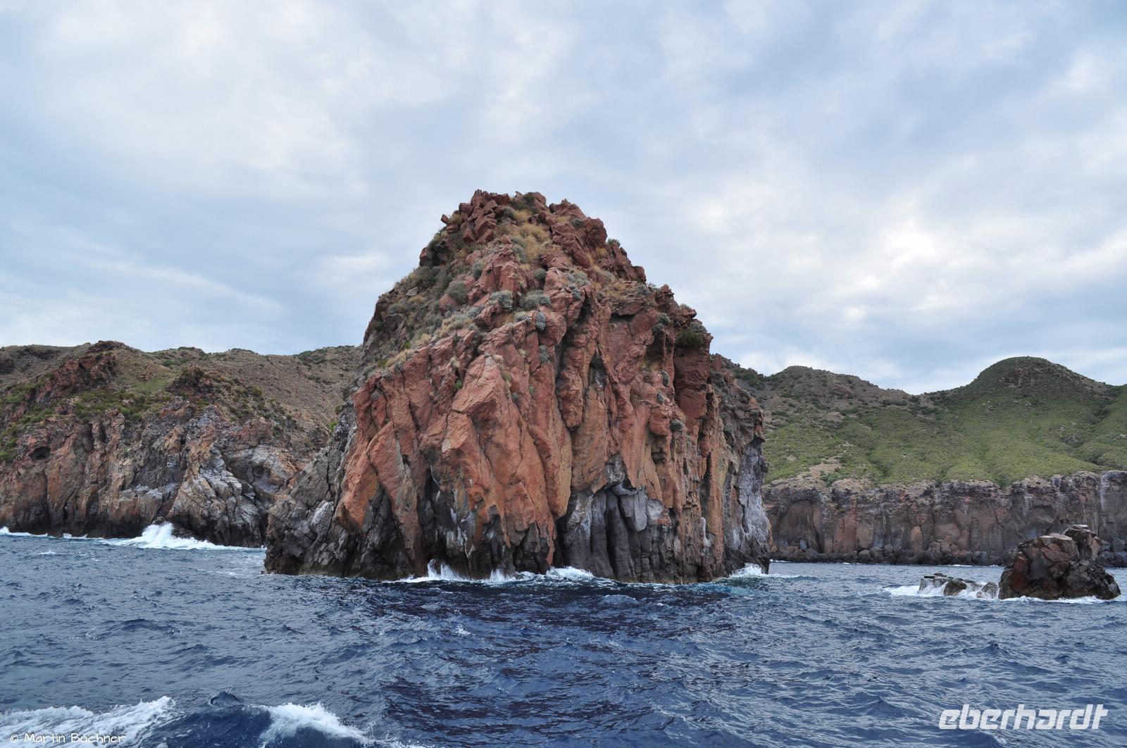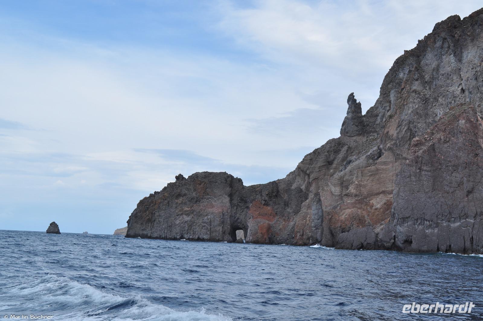 Es fährt dann entlang der schroffen Westküste Vulcanos zur Grotta del Cavallo und zu den Felsnadeln vor der Südspitze Liparis, bevor wir dann in der schönen Marina Corta in Lipari-Stadt ankommen.