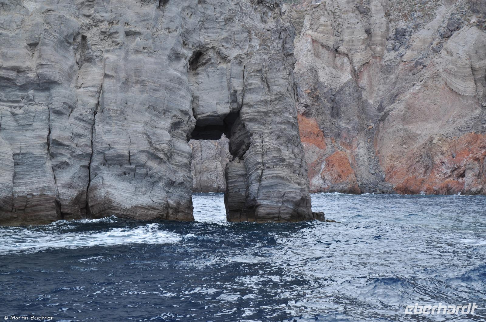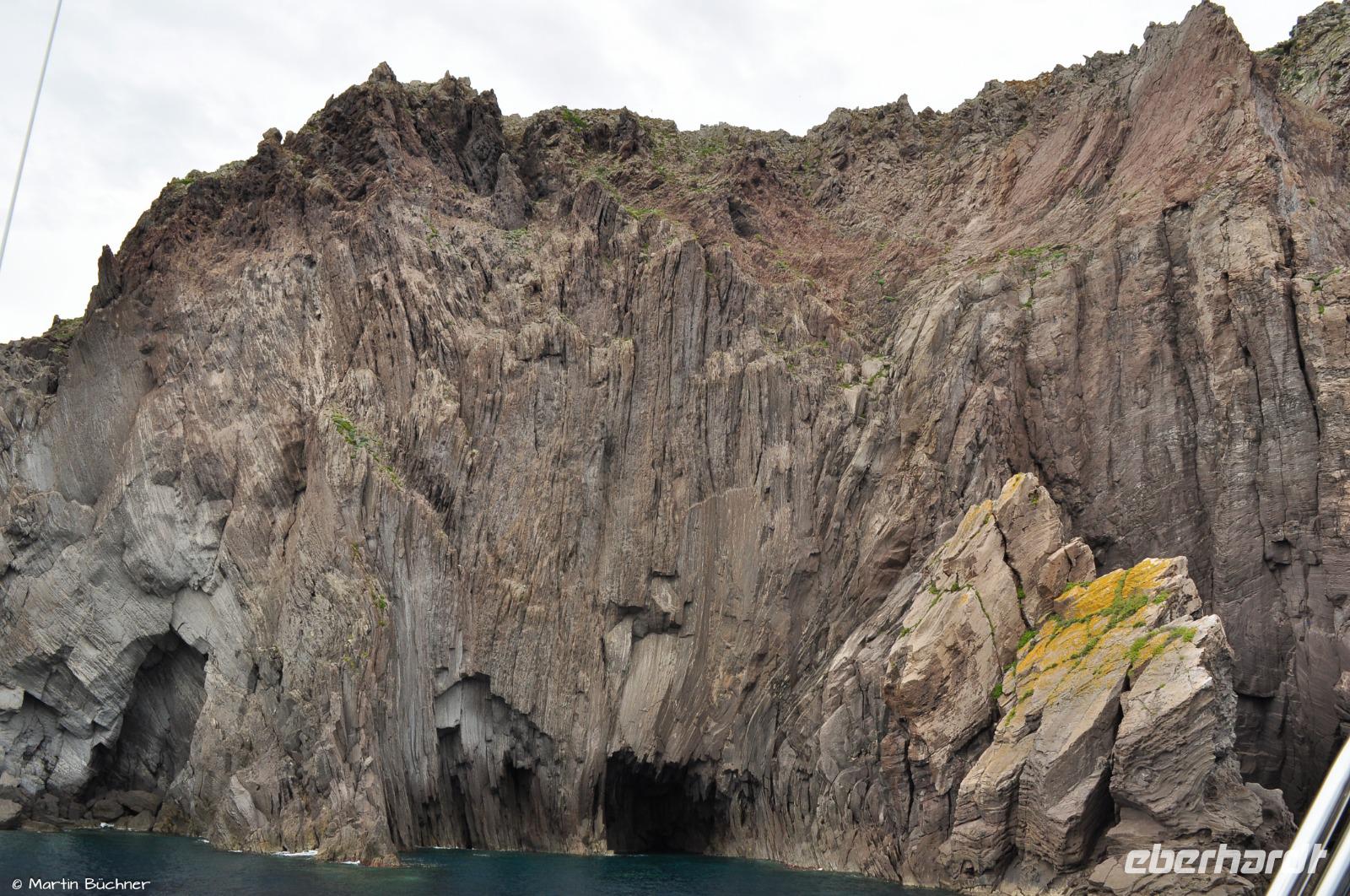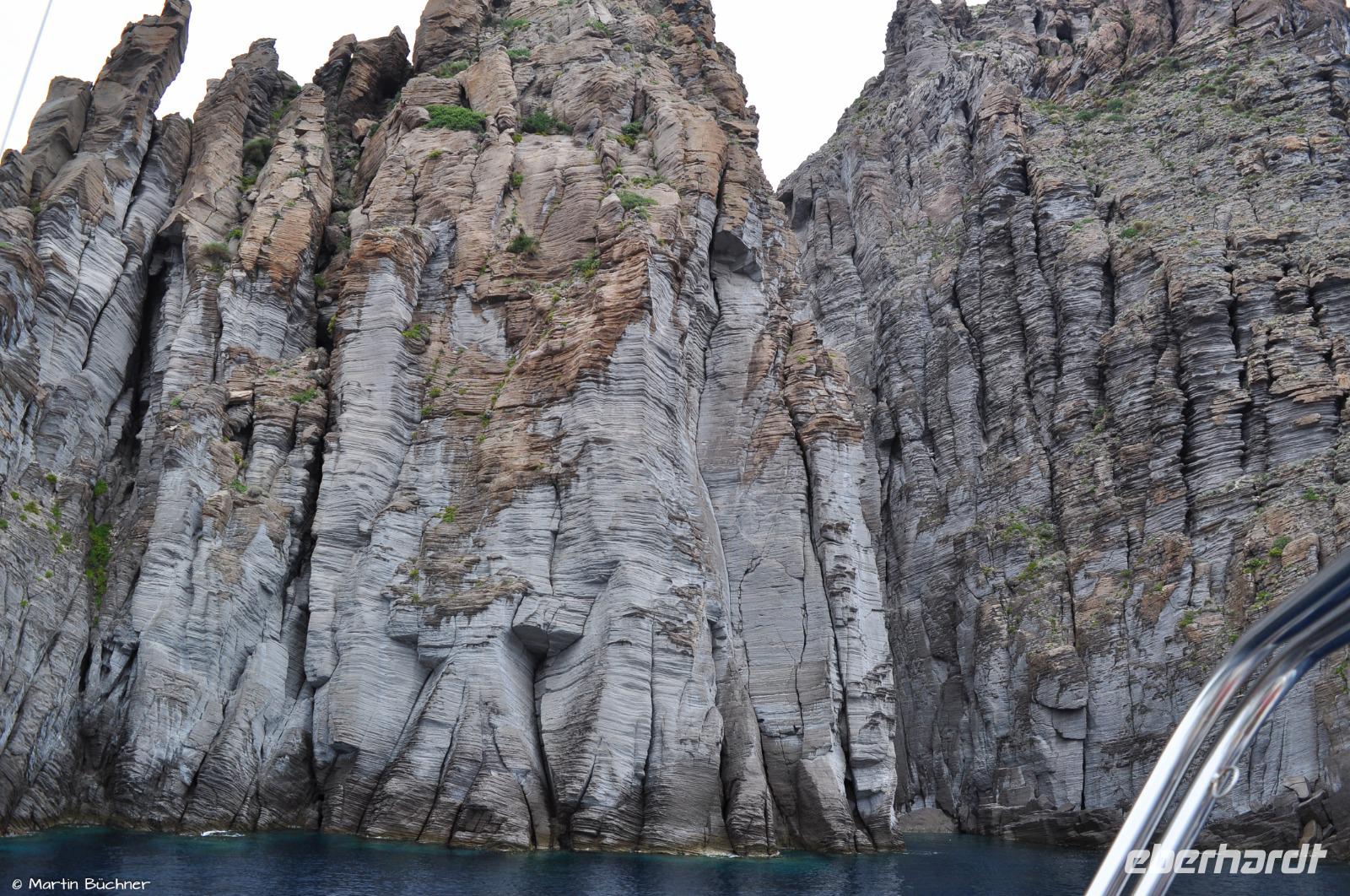 Es fährt dann entlang der schroffen Westküste Vulcanos zur Grotta del Cavallo und zu den Felsnadeln vor der Südspitze Liparis, bevor wir dann in der schönen Marina Corta in Lipari-Stadt ankommen.